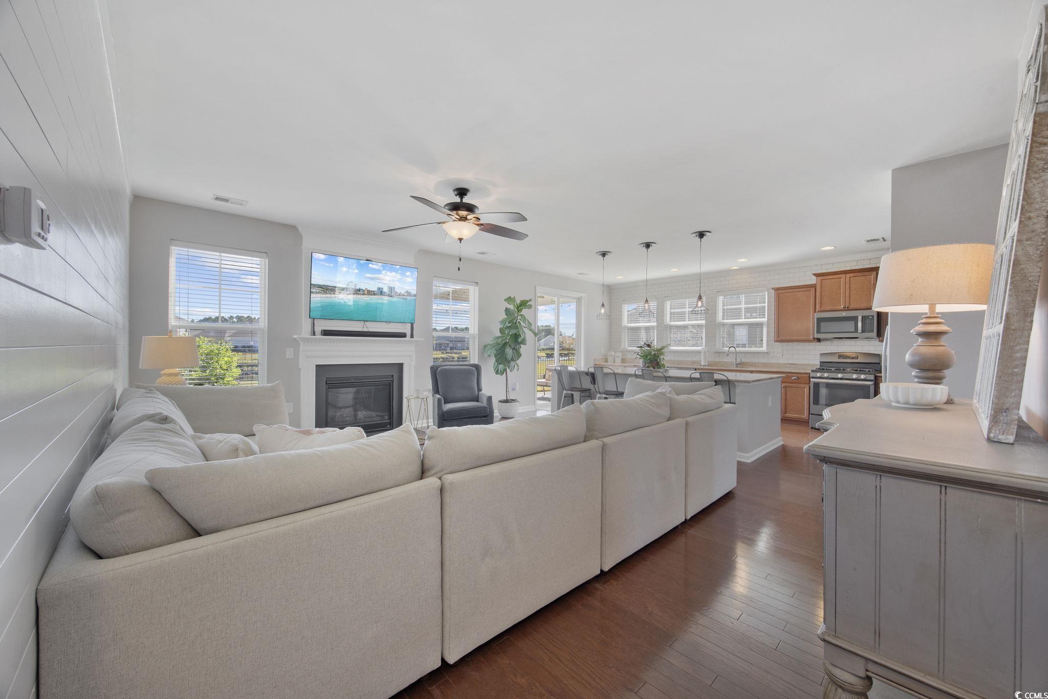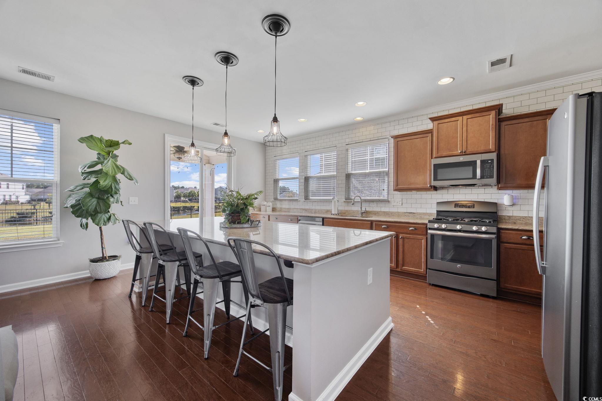 Welcome to this stunning 5-bedroom, 3-bath home perfectly situated in the highly sought-after community of The Farm. This spacious, open-concept layout offers an abundance of natural light and thoughtful design throughout. Step inside to find a freshly painted interior and brand-new carpet in all bedrooms and throughout the upstairs, giving the home a clean, move-in-ready feel. The large kitchen boasts ample cabinet space and an impressive counter-height island measuring nearly 5' x 10' perfect for entertaining, meal prep, or casual dining. The kitchen flows seamlessly into a spacious family room with a cozy fireplace and a formal dining room, ideal for gatherings and celebrations. The main level also features a guest bedroom and full bath, providing convenience and flexibility for visitors or a home office setup. Upstairs, retreat to your expansive master suite complete with a garden tub, separate shower, and a HUGE walk-in closet. You’ll also find two additional bedrooms, a full bath, and a versatile bonus room that can serve as a second family room or a fifth bedroom, measuring an impressive 18' x 19'! Outside, enjoy serene pond views from your fully fenced backyard, perfectly positioned on an oversized pie-shaped lot offering both beauty and privacy. Residents of The Farm enjoy resort-style amenities, including an 8,000 sq. ft. pool, clubhouse, fitness center, playground, and basketball courts. Located in the award-winning Carolina Forest School District, this home offers easy access to Hwy 31, Hwy 90, and International Drive, while being just 10 minutes from the Atlantic Ocean and area beaches. This home truly has it all; space, comfort, views, and an unbeatable location. Don’t miss your chance to make this incredible property yours!