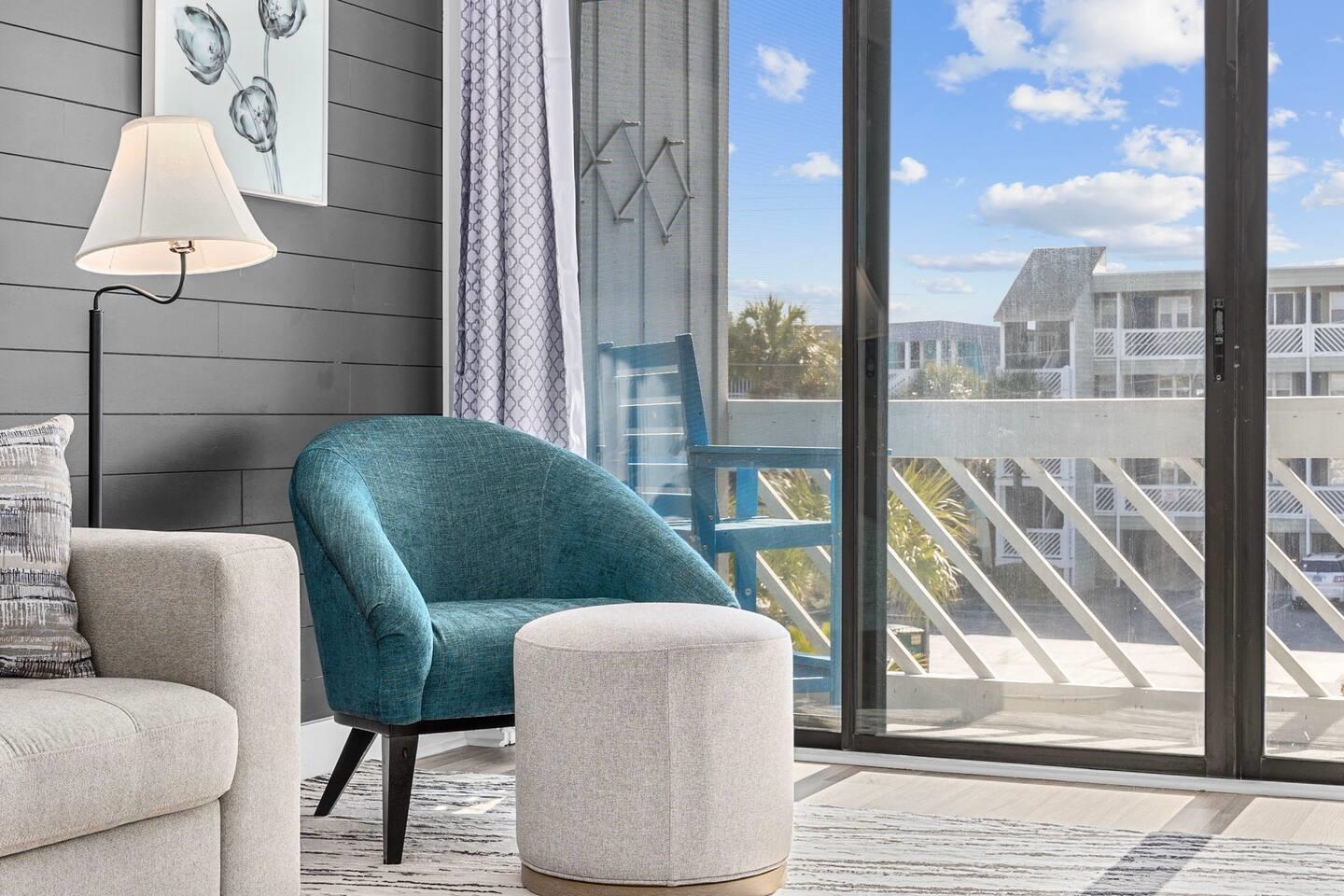 Turnkey and fully renovated 1 bedroom, 1 bath condo located in Whispering Sands in North Myrtle Beach! This beautifully updated unit features luxury vinyl plank flooring throughout and comes fully furnished for immediate enjoyment or rental use. The renovated bathroom showcases a modern tiled shower with elegant gold fixtures. The kitchenette is thoughtfully designed with a full-size refrigerator, dual-burner stovetop, butcher block countertops, and a striking black ceramic tile backsplash. The living area offers a cozy fireplace and opens to a private balcony, perfect for enjoying the coastal breeze. The bedroom is equipped with two queen size beds, maximizing comfort and flexibility. Whispering Sands community amenities include a private pool and convenient golf cart parking. Just one block from the ocean and close to dining, shopping, and local attractions, this condo is an ideal beach getaway, second home, or investment opportunity in the heart of North Myrtle Beach.
