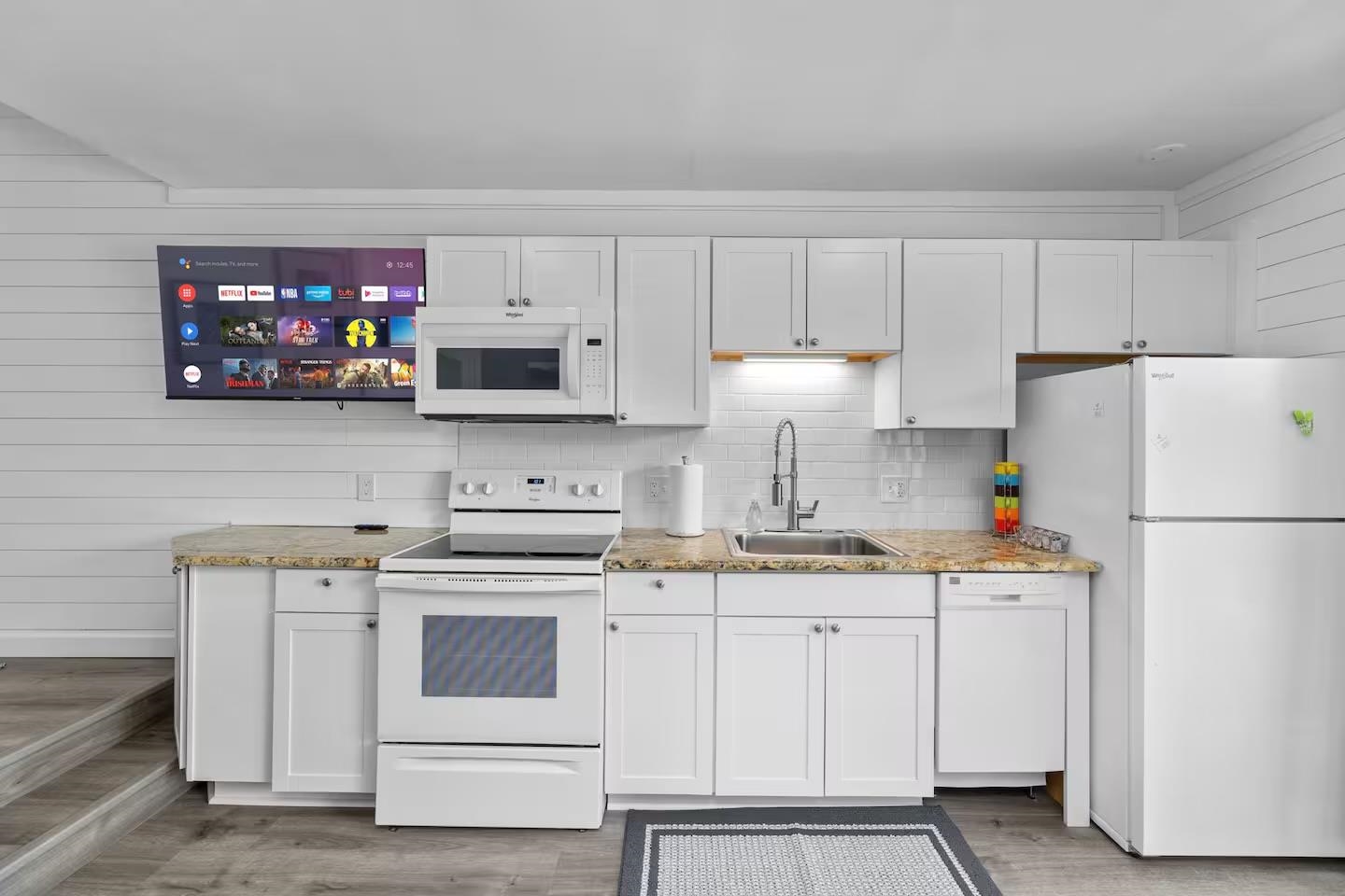 Turnkey and fully renovated 1-bedroom, 1-bath condo located in Whispering Sands in North Myrtle Beach, offering a bright coastal aesthetic throughout. This unit features luxury vinyl plank flooring and white coastal-style wall paneling that enhances the airy beachside feel. The fully updated kitchen includes white paneled backsplash, granite countertops, a full-size refrigerator, full-size stove, microwave, and dishwasher, providing functionality The bathroom has been completely renovated with tile flooring and a tiled shower, along with a double vanity for added space and convenience. The living area opens to a private balcony, perfect for enjoying the crisp ocean breeze. The bedroom is furnished with two queen size beds, and the condo is being sold fully furnished and move in ready! Whispering Sands community amenities include a private pool and convenient golf cart parking. Located just one block from the ocean and close to restaurants, shopping, and local attractions, this condo is ideal as a beach getaway, second home, or investment opportunity in North Myrtle Beach. Schedule your showing today!!