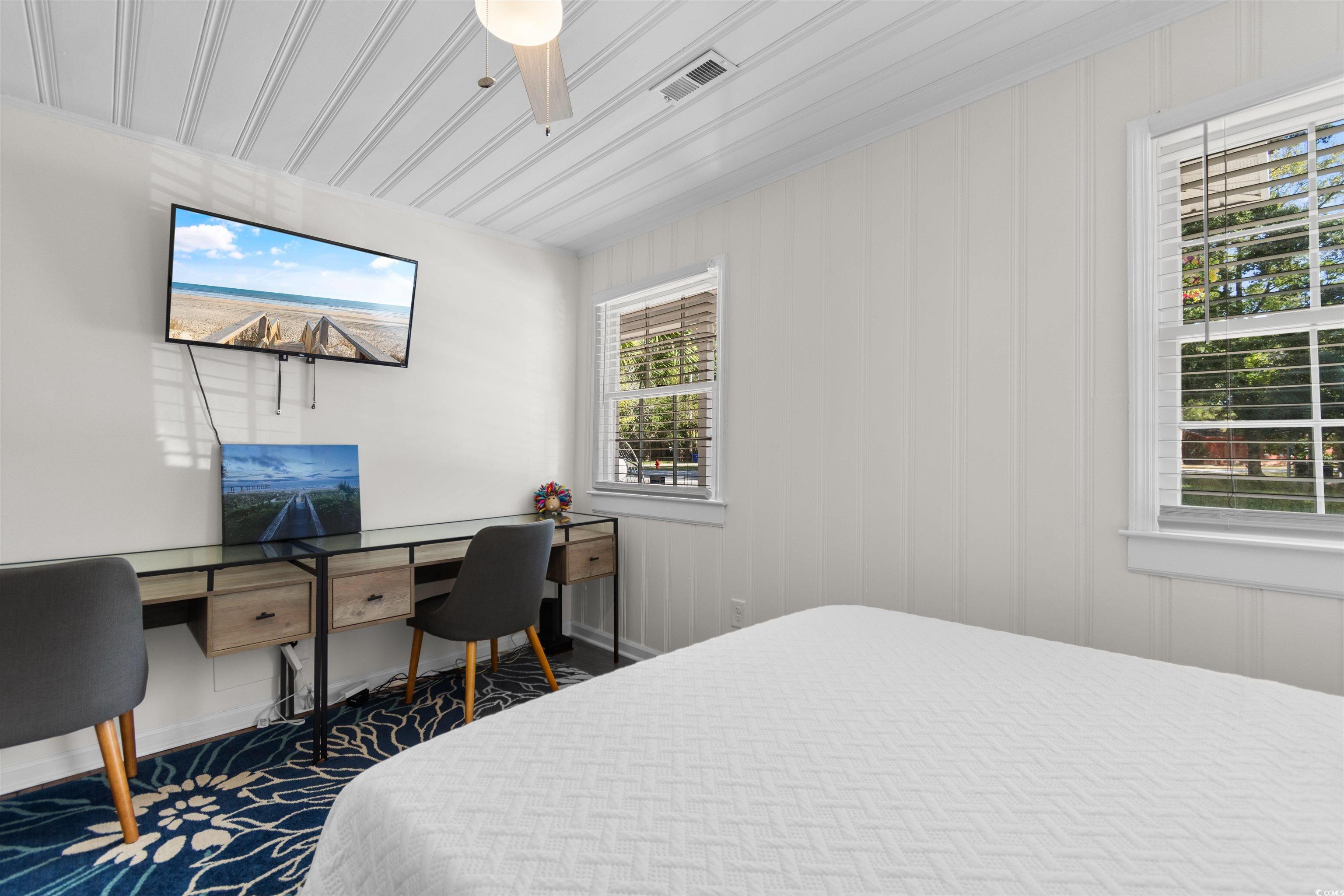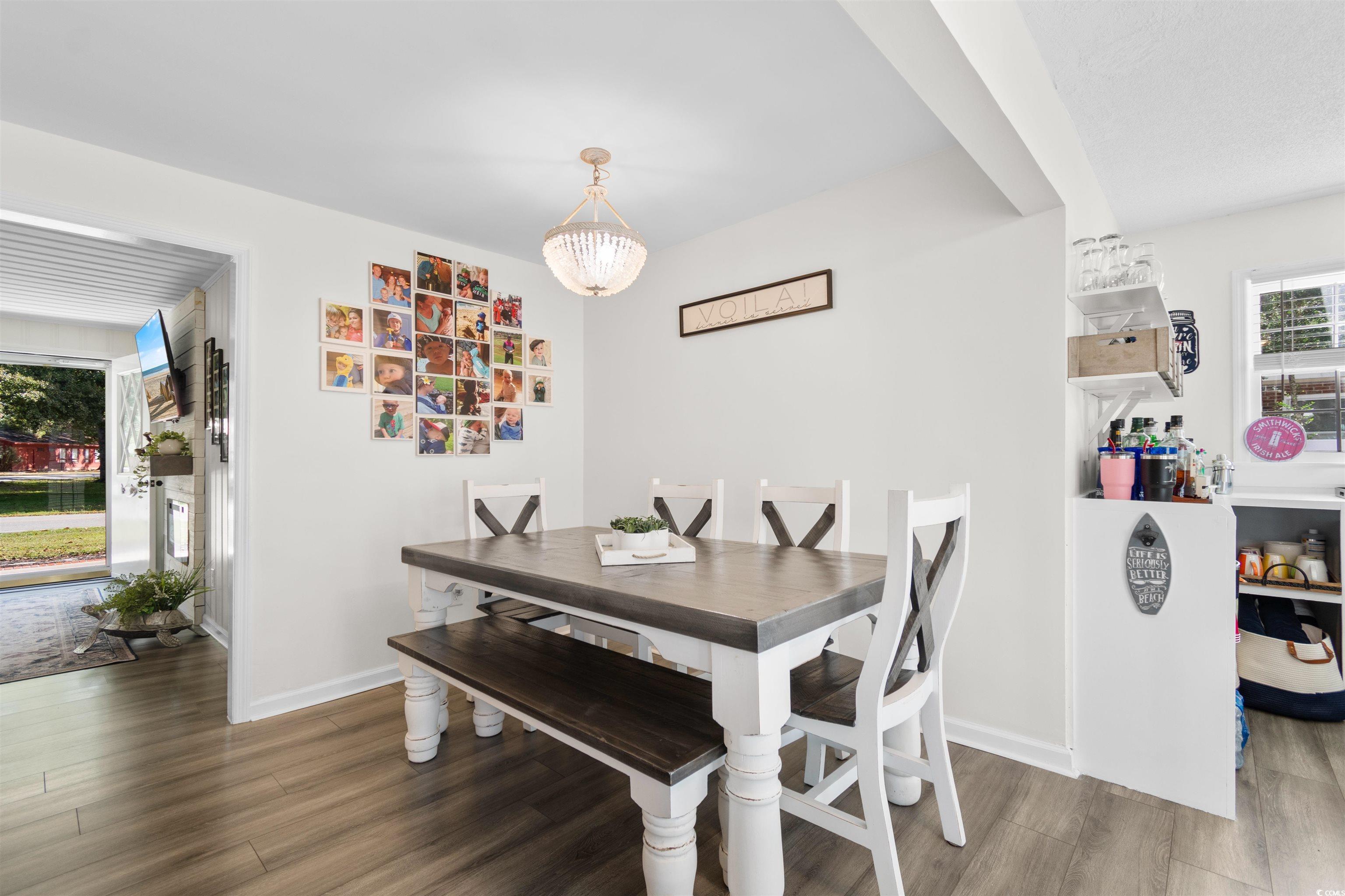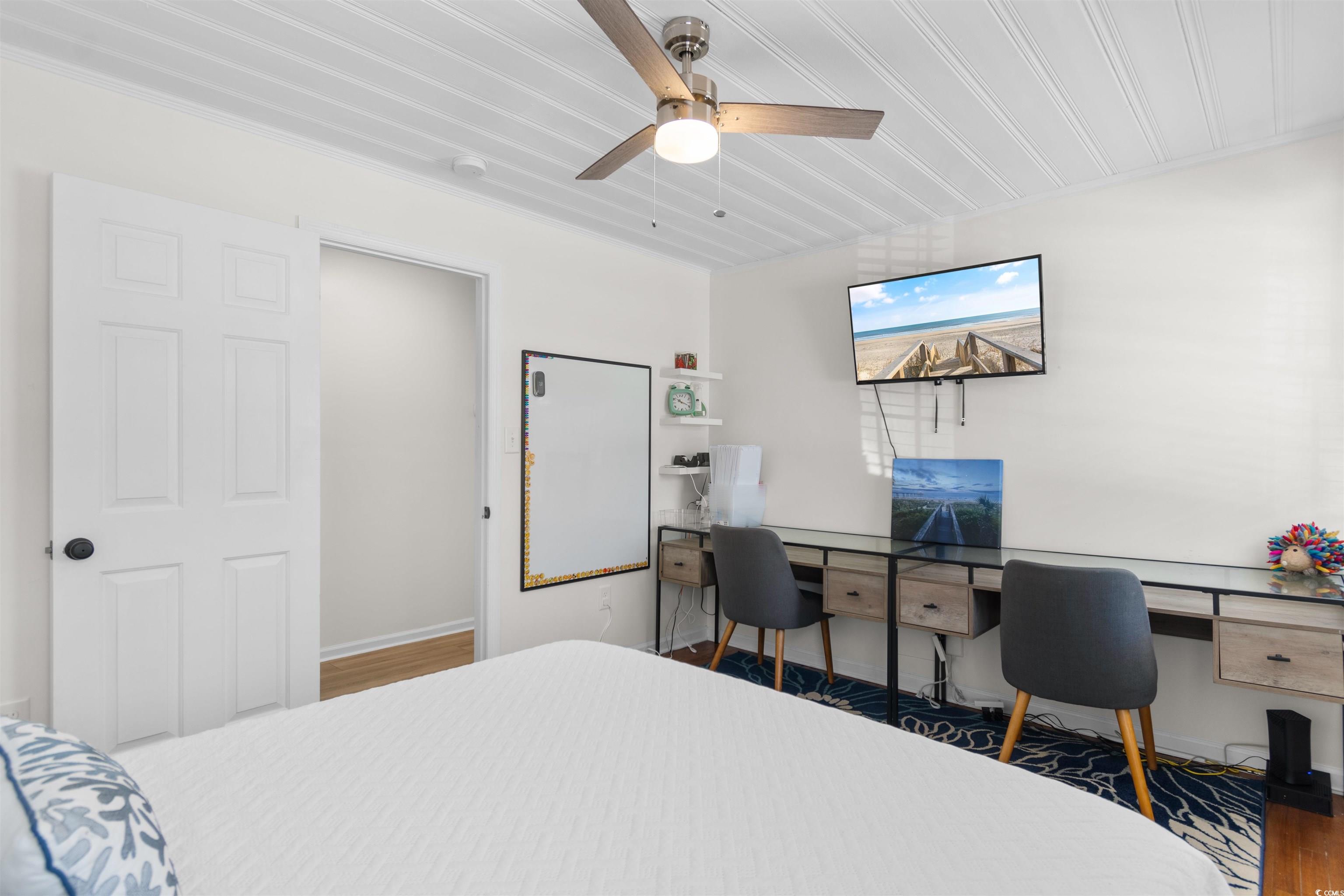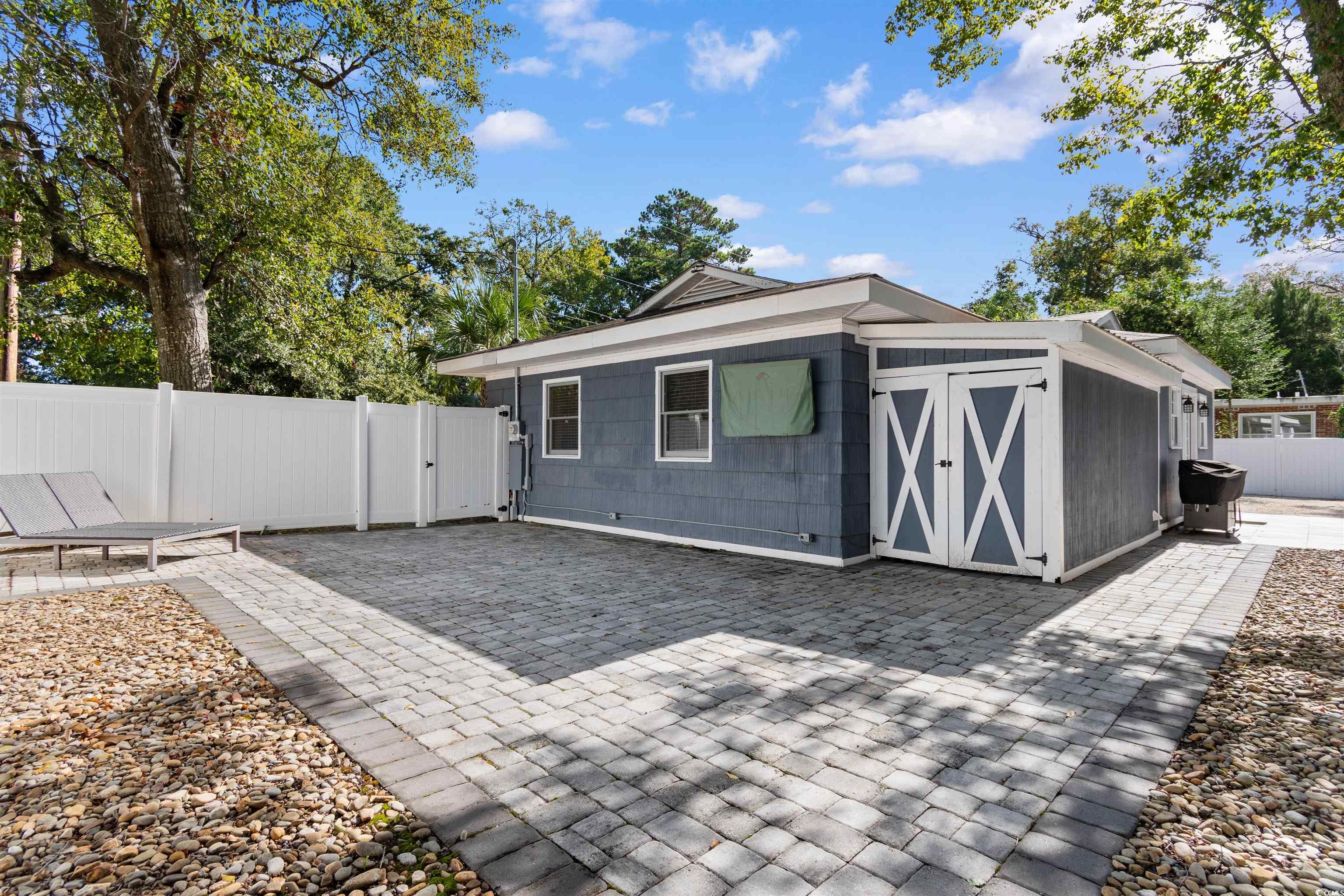 Classic Surfside Beach Cottage with Coastal Charm! This beautifully maintained 4-bedroom, 2-bath home captures the essence of coastal living with its open-concept design and welcoming spaces. The living, dining, and kitchen areas flow seamlessly together, creating an ideal layout for everyday comfort or entertaining. The kitchen features timeless white cabinetry, granite countertops, and a spacious workspace perfect for home cooks. A split bedroom plan provides privacy, with the primary suite—featuring an oversized walk-in closet—and an additional bedroom, ideal as a study or guest room—on one side, and two more bedrooms with a hall bath on the other. Attractive LVP or wood flooring extends throughout the home, adding warmth and easy maintenance. Relax on the classic rocking-chair front porch or retreat to the fully fenced side and back yard for private enjoyment. On one side of the property, generous parking easily accommodates a boat or RV, while the spacious fenced side yard is perfect for gatherings, play, or peaceful relaxation. This home is available either furnished or unfurnished, depending on the buyer’s preference—offering flexibility to move right in or bring your own coastal style. Located just a short golf cart ride to the beach, this classic Surfside cottage-style home combines laid-back charm, practicality, and the best of coastal convenience. * Siding is WOOD shingle *Measurements and square footage are approximate. The buyer/buyer's agent is responsible for verifying ALL information in the MLS including lot size, HOA Information, square footage, etc.