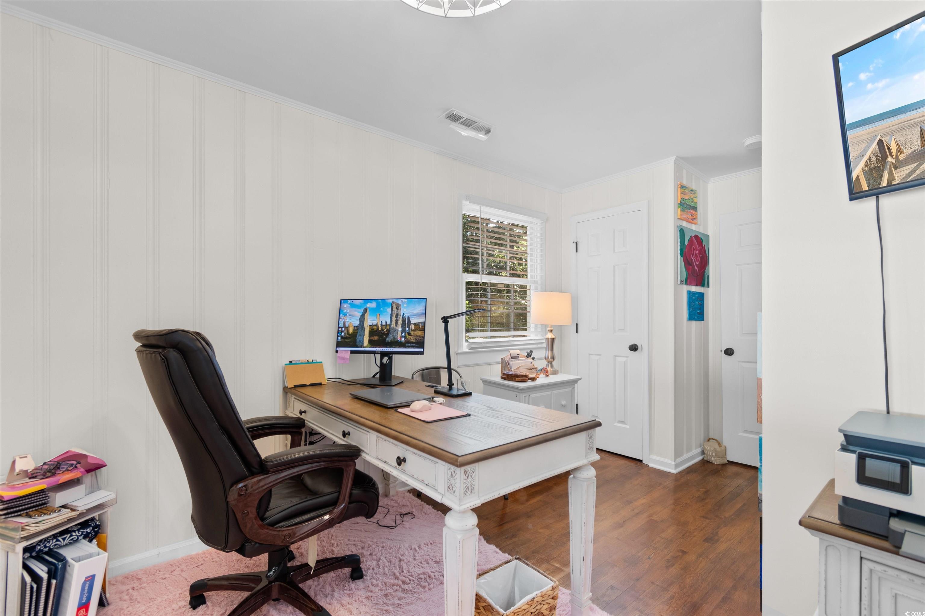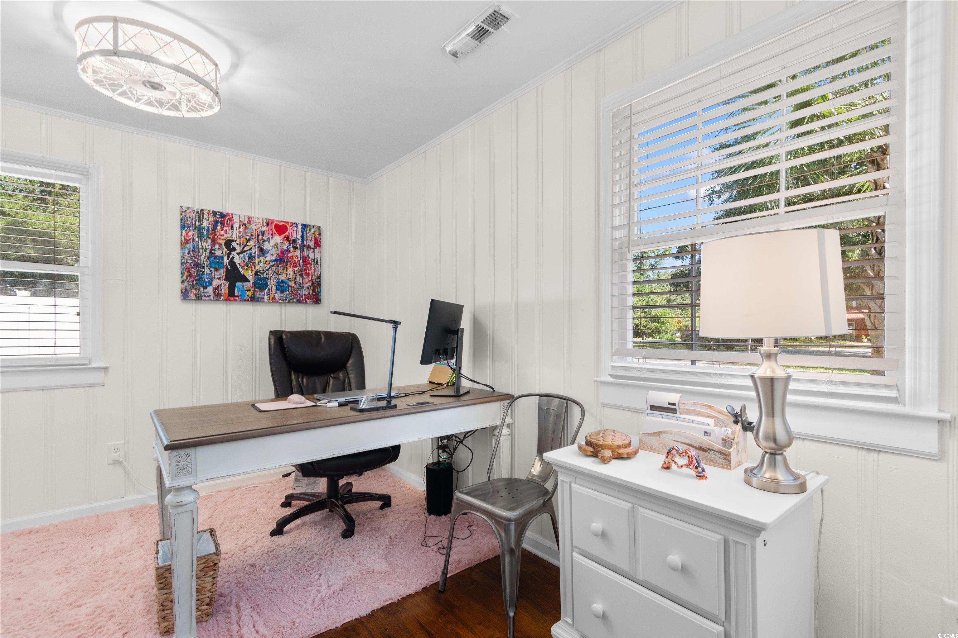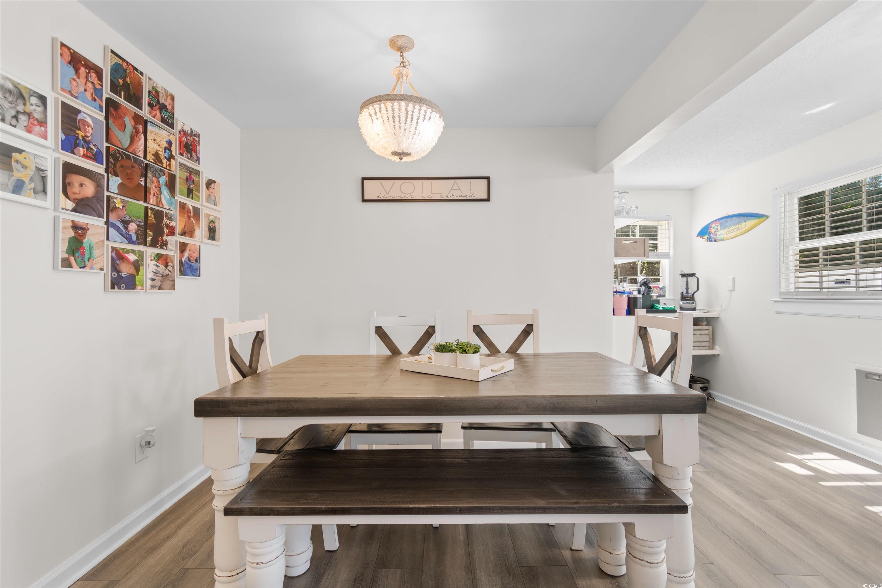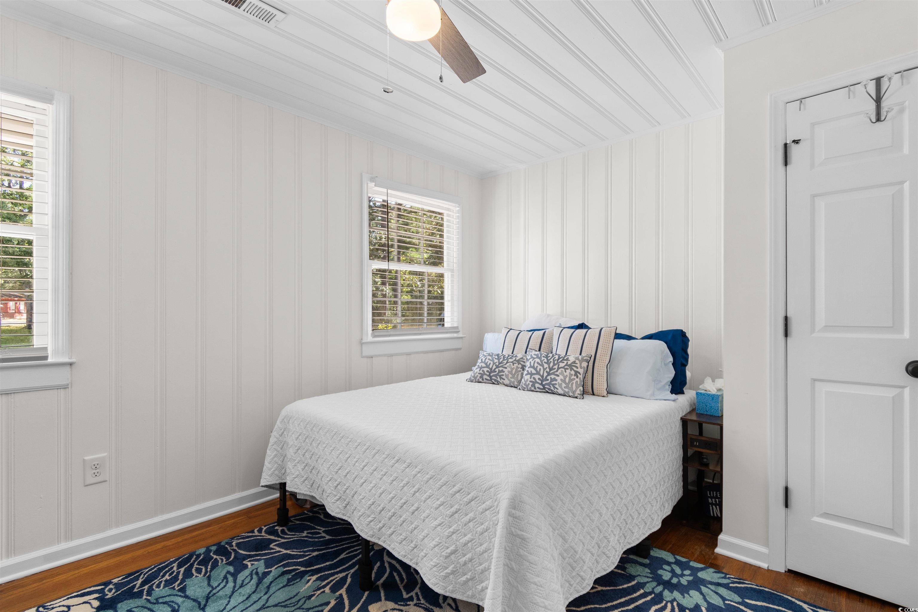 Classic Surfside Beach Cottage with Coastal Charm! This beautifully maintained 4-bedroom, 2-bath home captures the essence of coastal living with its open-concept design and welcoming spaces. The living, dining, and kitchen areas flow seamlessly together, creating an ideal layout for everyday comfort or entertaining. The kitchen features timeless white cabinetry, granite countertops, and a spacious workspace perfect for home cooks. A split bedroom plan provides privacy, with the primary suite—featuring an oversized walk-in closet—and an additional bedroom, ideal as a study or guest room—on one side, and two more bedrooms with a hall bath on the other. Attractive LVP or wood flooring extends throughout the home, adding warmth and easy maintenance. Relax on the classic rocking-chair front porch or retreat to the fully fenced side and back yard for private enjoyment. On one side of the property, generous parking easily accommodates a boat or RV, while the spacious fenced side yard is perfect for gatherings, play, or peaceful relaxation. This home is available either furnished or unfurnished, depending on the buyer’s preference—offering flexibility to move right in or bring your own coastal style. Located just a short golf cart ride to the beach, this classic Surfside cottage-style home combines laid-back charm, practicality, and the best of coastal convenience. * Siding is WOOD shingle *Measurements and square footage are approximate. The buyer/buyer's agent is responsible for verifying ALL information in the MLS including lot size, HOA Information, square footage, etc.