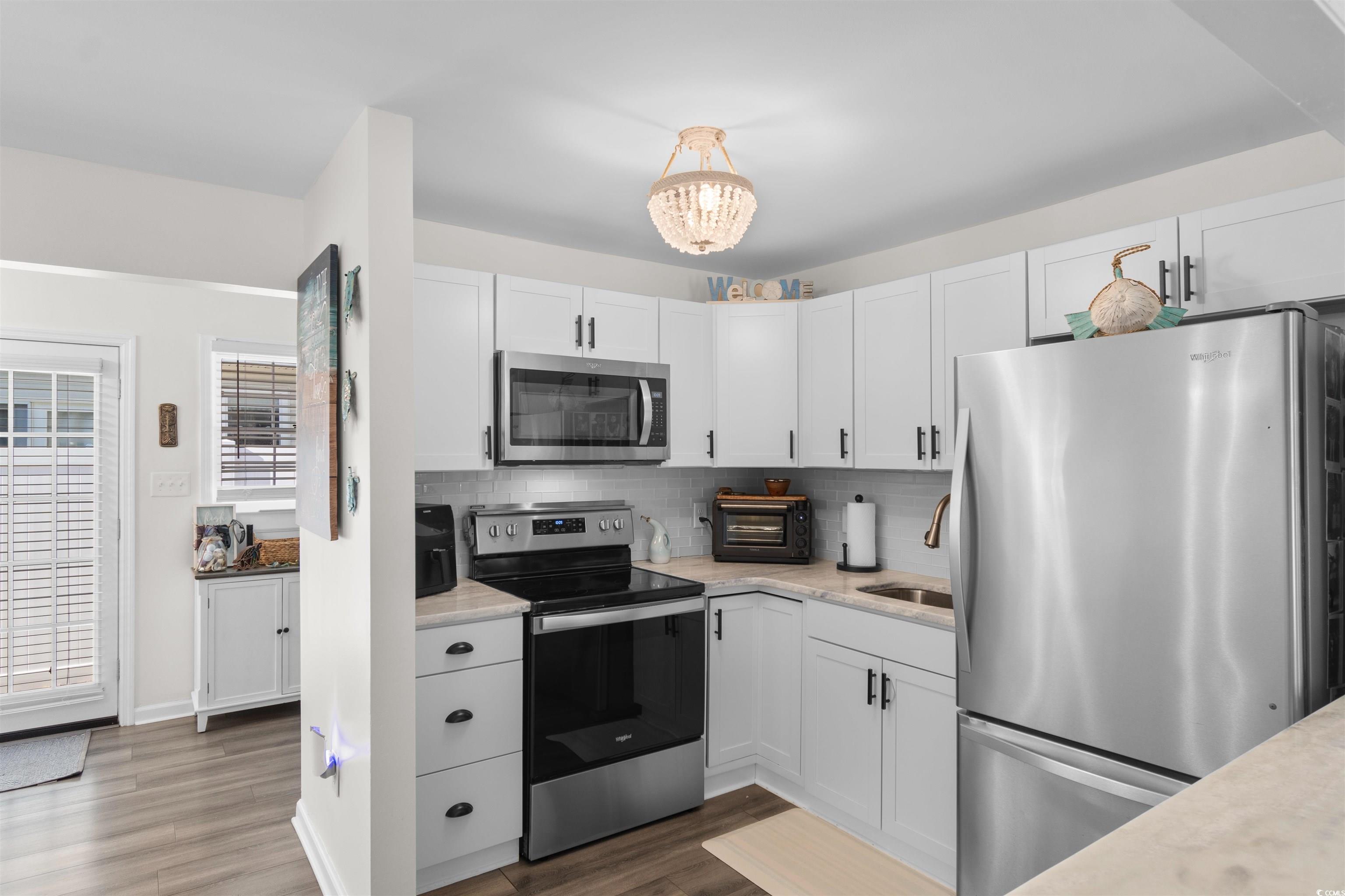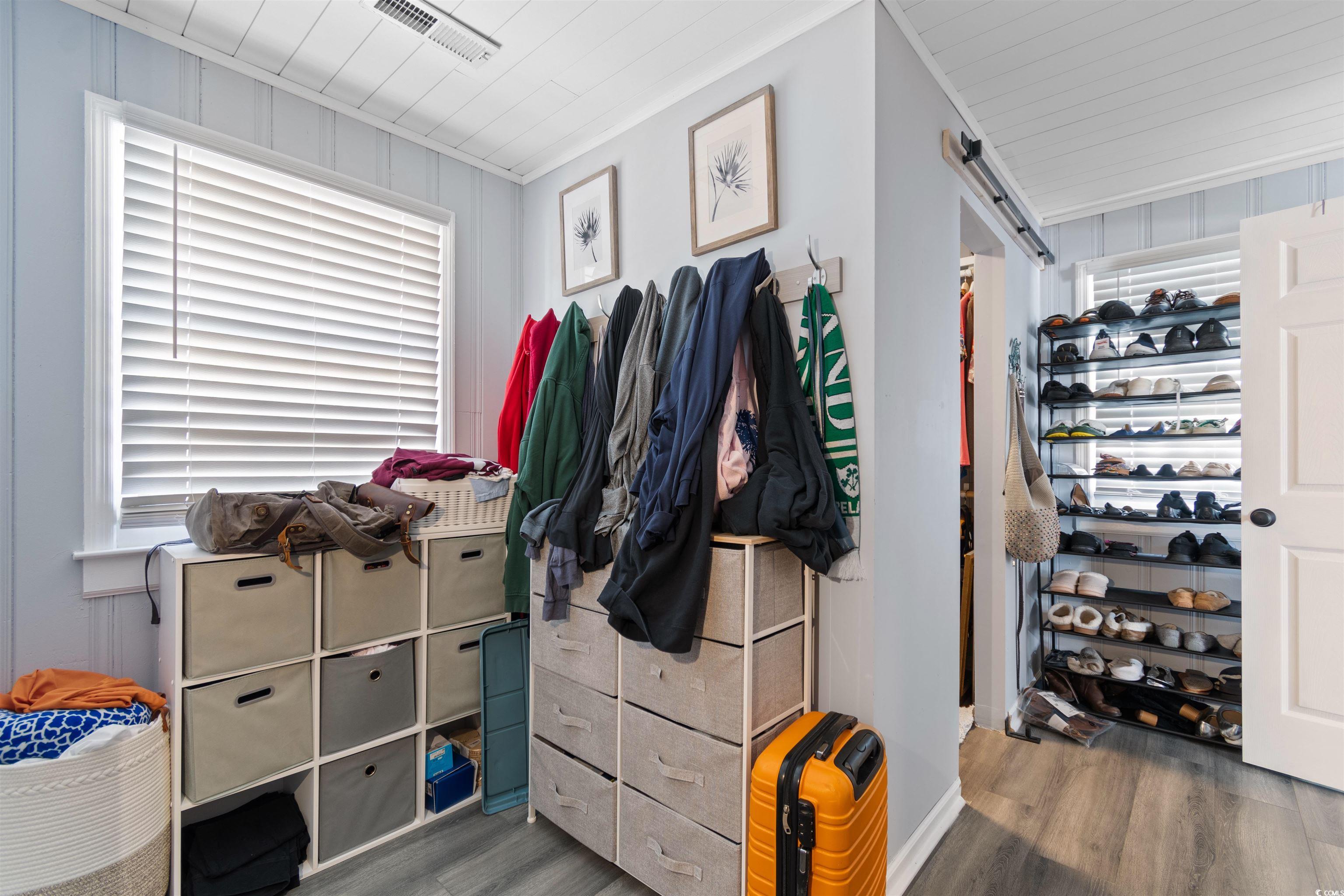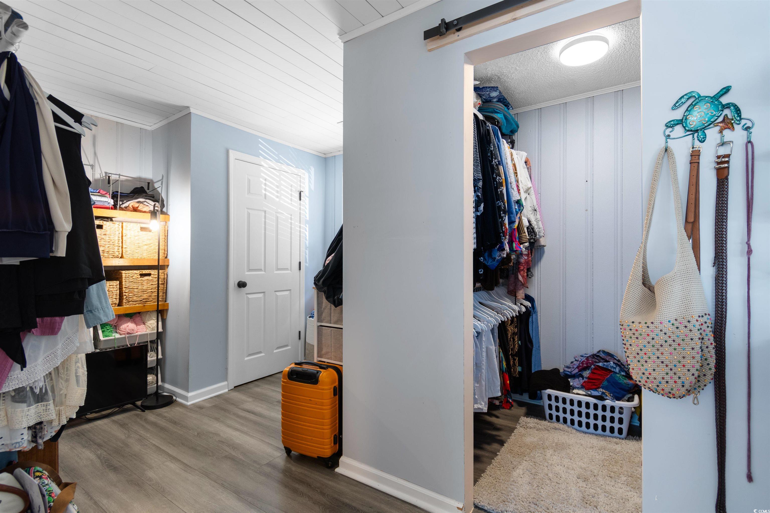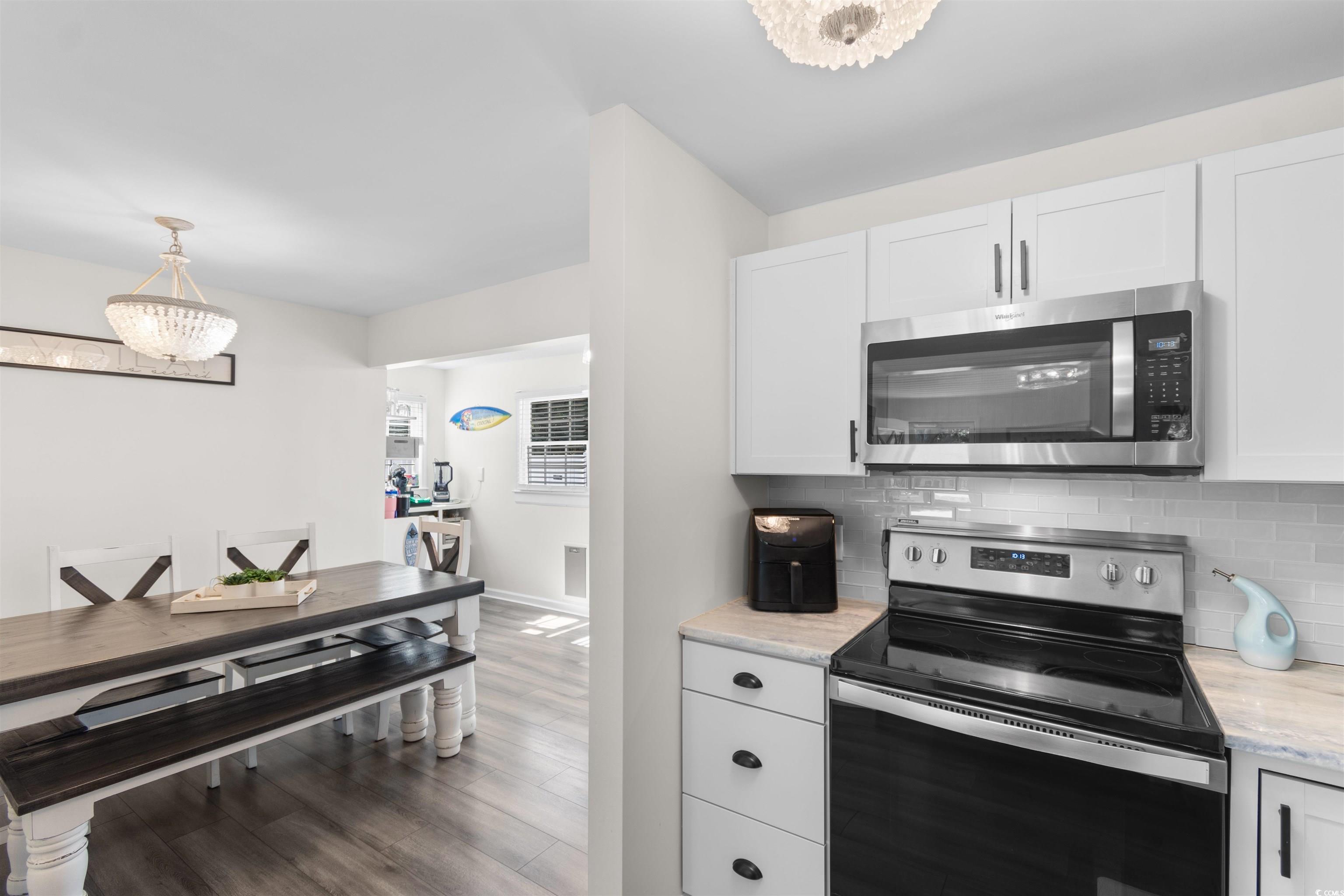 Classic Surfside Beach Cottage with Coastal Charm! This beautifully maintained 4-bedroom, 2-bath home captures the essence of coastal living with its open-concept design and welcoming spaces. The living, dining, and kitchen areas flow seamlessly together, creating an ideal layout for everyday comfort or entertaining. The kitchen features timeless white cabinetry, granite countertops, and a spacious workspace perfect for home cooks. A split bedroom plan provides privacy, with the primary suite—featuring an oversized walk-in closet—and an additional bedroom, ideal as a study or guest room—on one side, and two more bedrooms with a hall bath on the other. Attractive LVP or wood flooring extends throughout the home, adding warmth and easy maintenance. Relax on the classic rocking-chair front porch or retreat to the fully fenced side and back yard for private enjoyment. On one side of the property, generous parking easily accommodates a boat or RV, while the spacious fenced side yard is perfect for gatherings, play, or peaceful relaxation. This home is available either furnished or unfurnished, depending on the buyer’s preference—offering flexibility to move right in or bring your own coastal style. Located just a short golf cart ride to the beach, this classic Surfside cottage-style home combines laid-back charm, practicality, and the best of coastal convenience. * Siding is WOOD shingle *Measurements and square footage are approximate. The buyer/buyer's agent is responsible for verifying ALL information in the MLS including lot size, HOA Information, square footage, etc.
