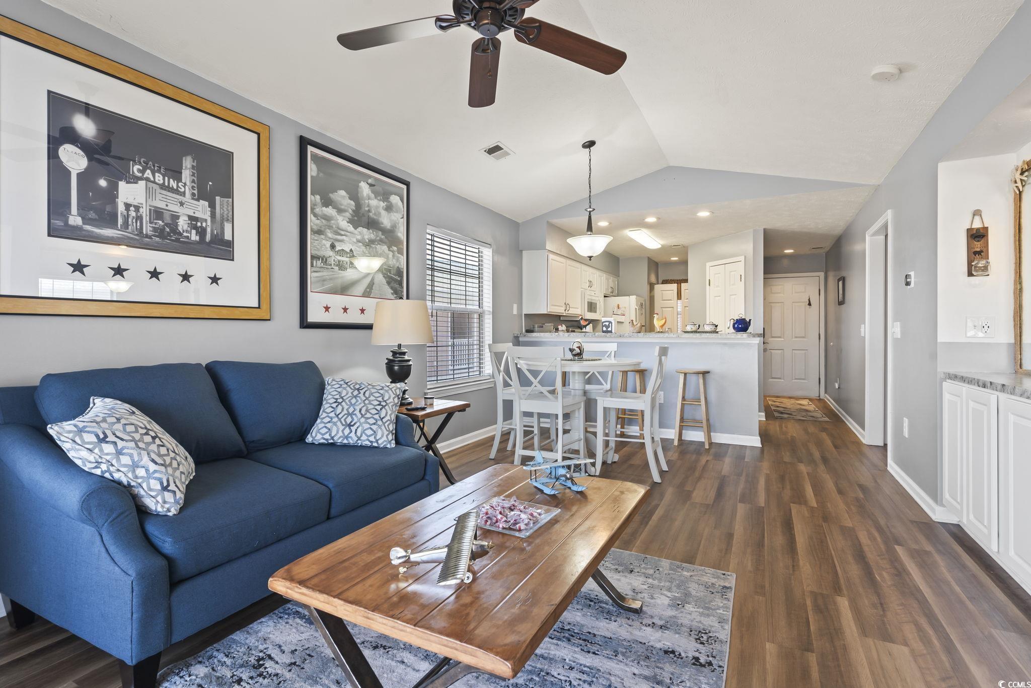 Welcome to this beautifully maintained 2-bedroom, 2-bathroom condo in the desirable Waterway Village, located just off River Oaks and right on the lush, scenic golf course. As you step inside, you're immediately greeted by a spacious open layout with stunning LVP waterproof flooring throughout the main living area. The updated kitchen is large and offers ample cabinet space, paired with modern appliances perfect for all your culinary needs. The inviting living room boasts impressive vaulted ceilings, a ceiling fan, and an abundance of natural light, creating a bright and airy atmosphere. Sliding glass doors open to a private outdoor balcony where you can relax and take in peaceful views of the golf course, making it the perfect spot to unwind after a long day. Both generously sized bedrooms feature ceiling fans and are newly repainted, offering a comfortable and restful retreat. The unit also comes fully furnished, so you can move right in and start enjoying the beach lifestyle. Additional highlights include a washer and dryer, along with a brand-new HVAC system (installed in 2022). For added convenience, this unit offers not one, but two owners' closets outside of the unit, providing plenty of storage space. As a bonus, you'll love the location! Waterway Village features outstanding amenities including community pools, tennis courts, and a private dock. The property is also just minutes away from top attractions like Barefoot Landing, dining, shopping, and entertainment, and is ideal for golf lovers, with some of Myrtle Beach's best courses right at your doorstep. This condo offers the perfect combination of comfort, convenience, and charm. Whether you're looking for a relaxing retreat or an active lifestyle, this unit has it all. Don't miss out on this exceptional opportunity-schedule your showing today!