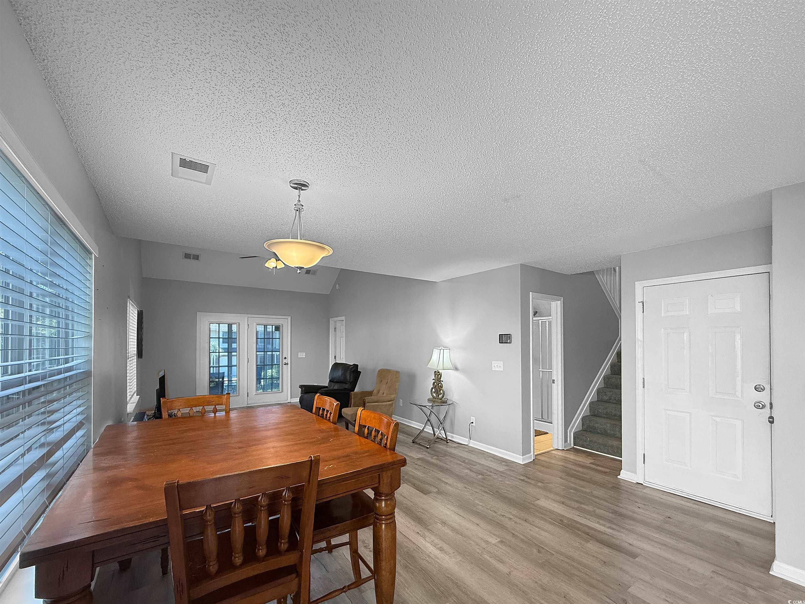 Charming end-unit townhouse in the desirable Pawleys Place — move-in ready with 3 bedrooms (loft used as 3rd BR), 2 baths, and approximately 1,560 sq. ft. of living space. Features include an attached one-car garage, hardwood floors, and a shady screened porch that backs to peaceful green space — perfect for morning coffee or relaxing evenings—centrally located behind Fresh Market with easy access to local dining, shopping, and area beaches. HOA-maintained community — a low-maintenance, coastal living option ready for its next owner.