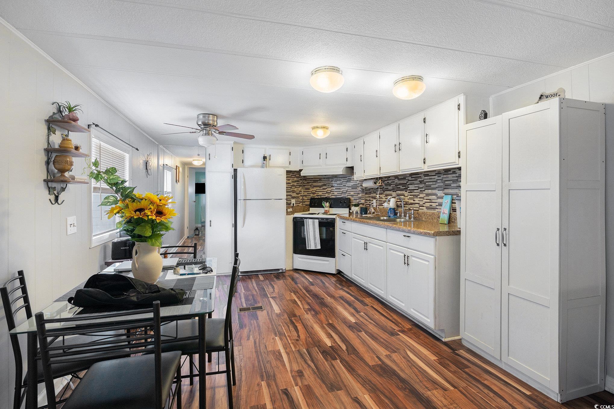 Welcome to your next chapter in the charming coastal community of Murrells Inlet! Nestled within the inviting 55+ neighborhood of Inlet Oaks Village, this delightful 2-bedroom, 1.5-bath home blends modern updates with the peaceful ambiance of pond-side living. Step inside to find a warm, open floor plan featuring freshly painted interiors, new flooring, and thoughtfully chosen fixtures and ceiling fans throughout. The spacious living area flows seamlessly into a bright eat-in kitchen, fully equipped with newer appliances, generous cabinet space, and room to enjoy casual dining with a view. The primary suite offers a comfortable retreat with a walk-in closet, while the main bath includes a tub/shower combo and updated vanity. A convenient laundry area comes complete with washer and dryer for easy living. Outside, unwind on your screened porch overlooking the tranquil pond — an ideal setting for morning coffee, birdwatching, or simply enjoying the serenity of your surroundings. The yard is beautifully landscaped with mature trees, palms, and space for gardening, and the large utility shed provides ample storage. This home also includes valuable upgrades such as newer windows, a rubber roof, and an updated HVAC system and water heater — all ensuring comfort and peace of mind. At Inlet Oaks Village, you’ll have access to fantastic community amenities like a pool, clubhouse, and an active calendar of resident events. Plus, you’ll be minutes from Murrells Inlet Marsh Walk, Brookgreen Gardens, Huntington Beach State Park, Garden City Beach, local shops, restaurants, and healthcare facilities — everything you need within easy reach. Pet-friendly and motorcycle-welcoming, this property offers the perfect blend of comfort, convenience, and community. Don’t miss your chance to enjoy the coastal lifestyle you’ve been dreaming of — schedule your private tour today!