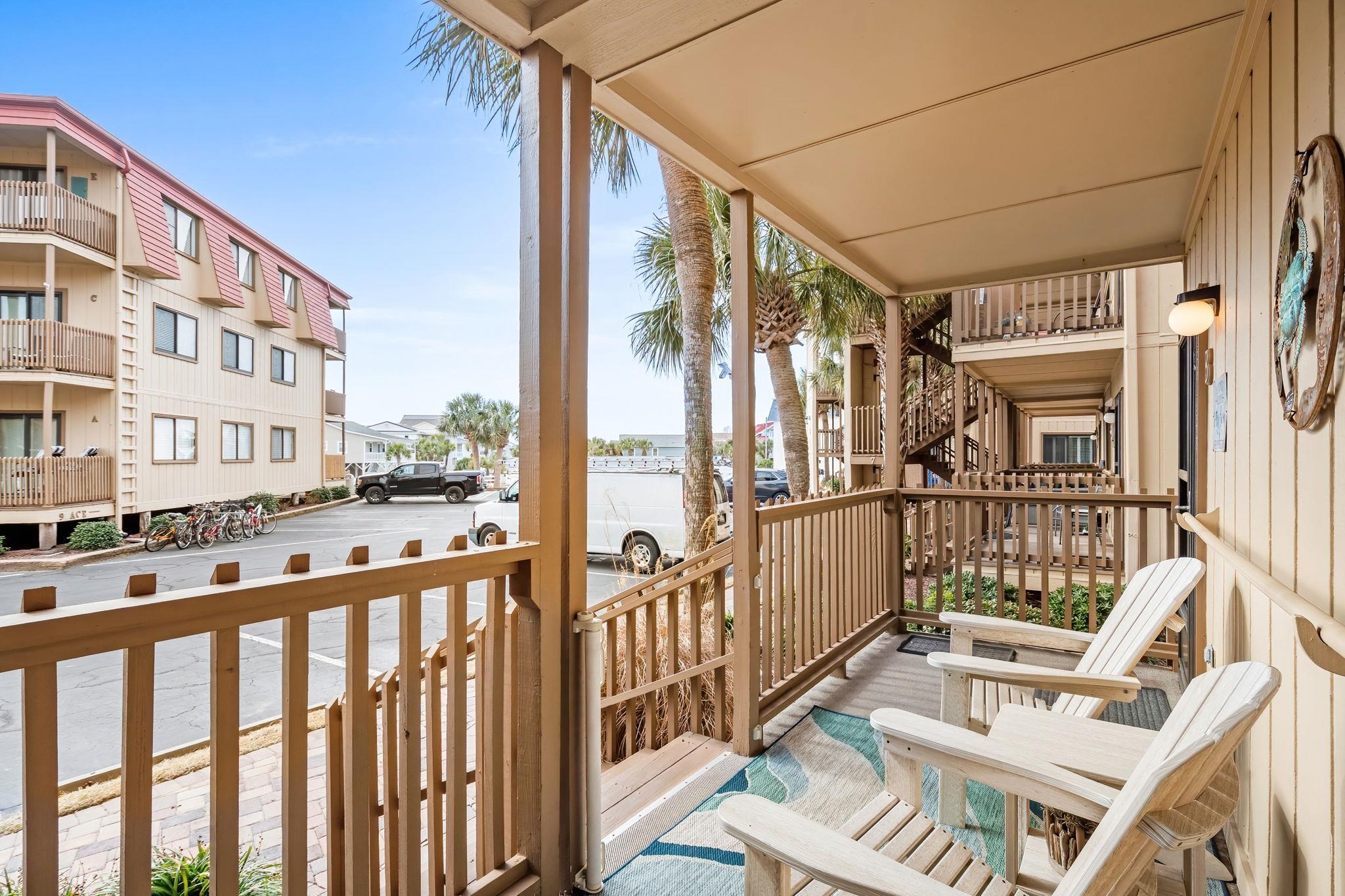 This immaculate waterfront property is Updated, Upgraded, and sits directly on House Creek/Hog Inlet with unobstructed views of the iconic "Point at Cherry Grove" Some of the many features include 2 Bedrooms, 2 Full baths with large walk-in showers, a newer HVAC system and windows, LVP Flooring throughout, and an in-unit washer and dryer. You are just steps away from the creek and the ocean - simply bring your flip flops, bathing suit, kayak and Fishing Rod, a water lover's Delight! Custom lighting and beautiful decor further enhance the space, as well as the well appointed kitchen and dining area. The gated community offers a swimming pool and tennis court and this location is one of the most notable on the entire Grand strand coastline. This community is positioned on the top north end of North Myrtle Beach and it remains a truly special and coveted "spot" because you are neighbors with Waites Island which is a barrier island and Protected Coastal Preserve. If you are a true nature lover and enjoy stellar coastal views then this one is undoubtedly for YOU! This unit has been meticulously maintained as a second home and has never been on the rental market, however this would make an outstanding investment property for vacation rentals. Additional notable features include custom plantation shutters and a remote-controlled automatic blind for the slider. With an oversized front porch and back balcony with those majestic views, this property is Paradise found!