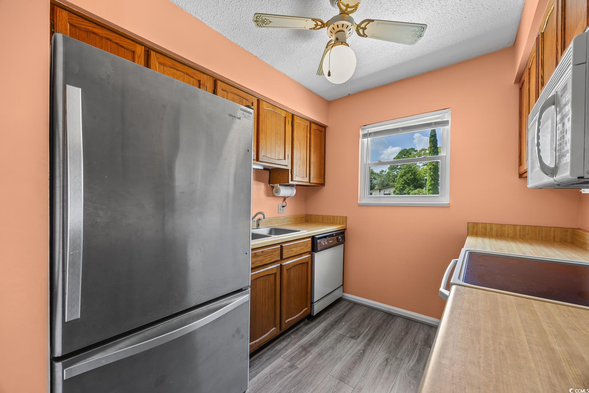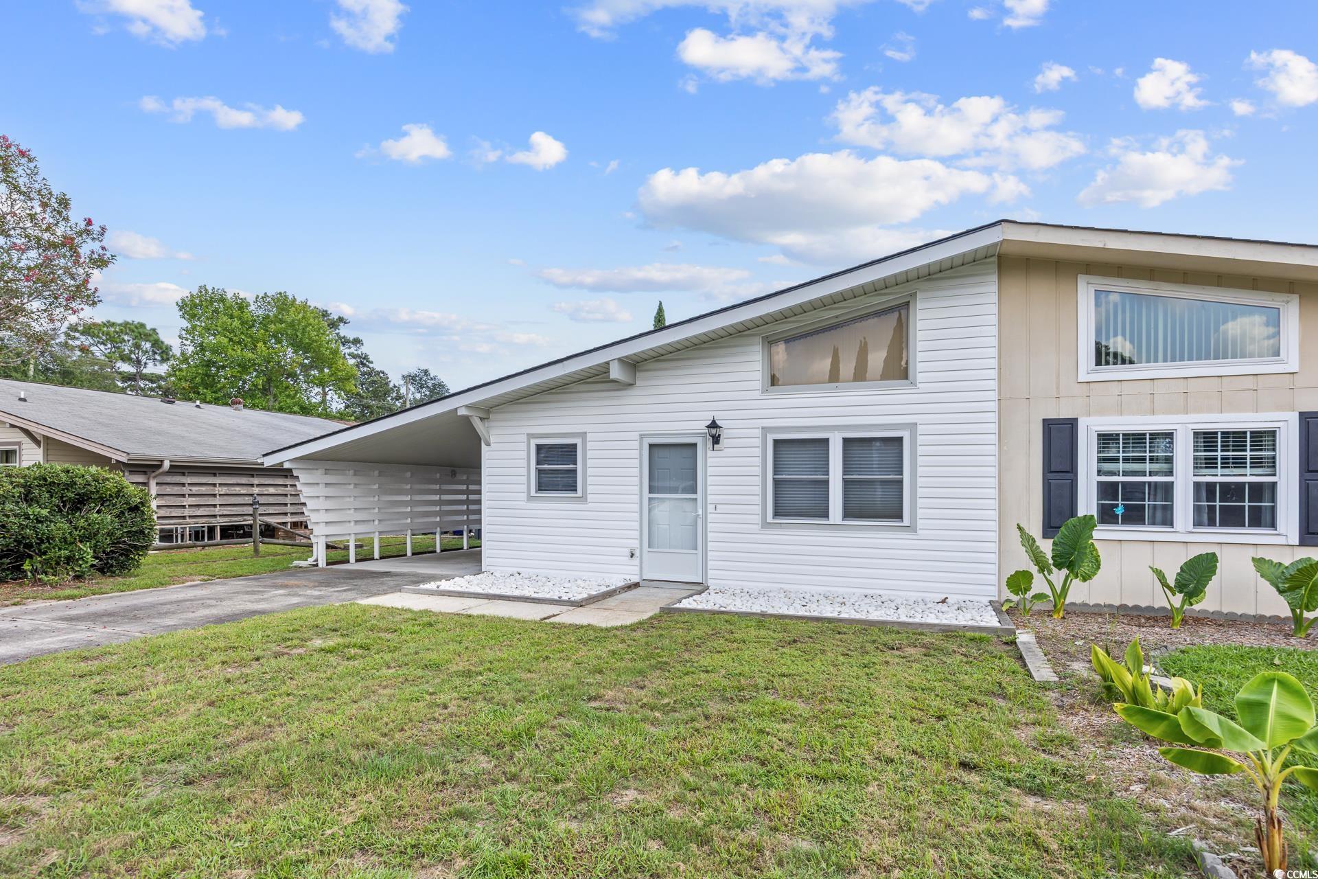 Looking for a great beach get-a-way that allows you to enjoy the "Beach Life" without having to pay a HOA! Great central location off of 65th Ave North in Myrtle Beach. This two bedroom, two bath is located an easy golf cart or walk to the Beach. This home has great curb appeal with an attached carport and storage building for all of your beach accessories. Enjoy relaxing in your vaulted ceiling living area just off the kitchen and dining. A large laundry room with washer and dryer that is included in the sale of the home. The master bedroom is large enough for a sitting area, has a large walk-in closet and an attached bath. Through the sliding doors is a private patio for gathering with family and friends. Laminate flooring throughout the home is great for easy clean-up. All of your bathrooms and laundry room have tile floors. This home has everything to offer, close to restaurants, golf, and shopping. Make this your primary or second home today and start living the life of your dreams!