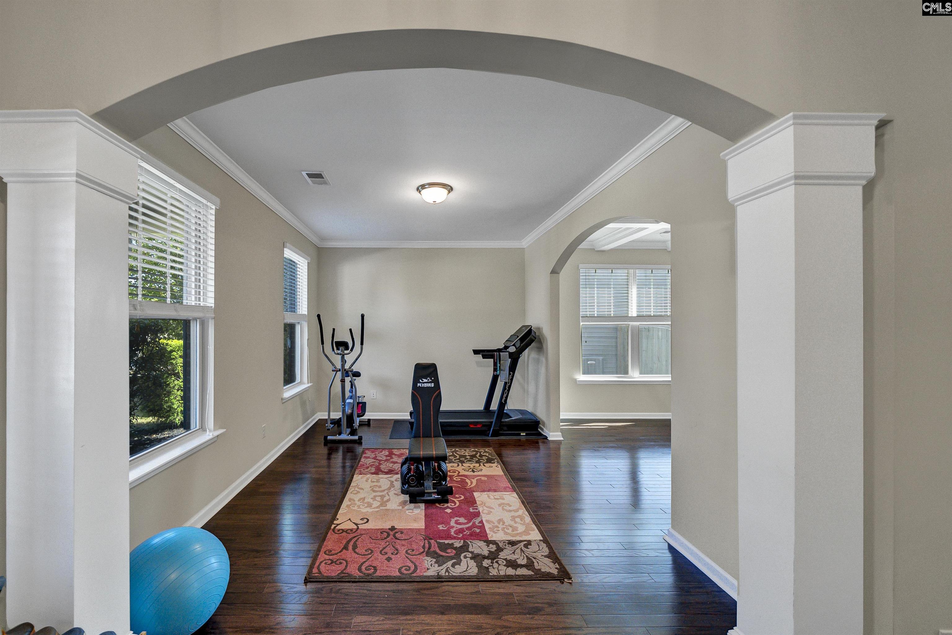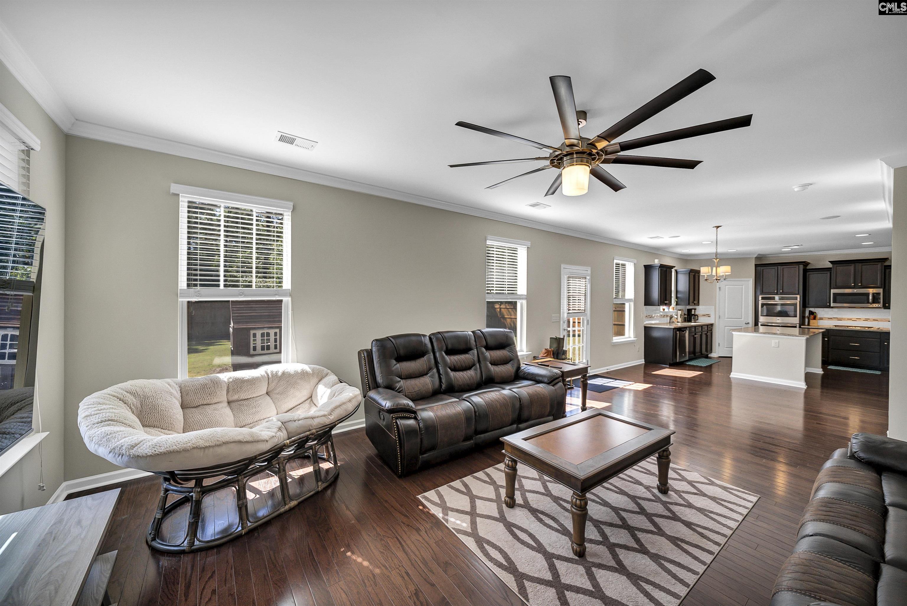 Welcome home to the next great opportunity in the highly desirable Persimmon Grove community, 632 Blue Ledge Circle! At just under 3000 square feet, and a thoughtful floorplan, you're sure to have all the space you need, both upstairs and down. Downstairs, you're immediately greeted by gleaming engineered hardwoods and elegant crown molding that span the entirety of the first floor. The main level includes a flex space, an ideal office, exercise area, playroom, etc., as well as a formal dining area that boasts gorgeous coffered ceilings and a stylish chandelier for those intimate meals. The kitchen will be the envy of your friends, family, and foes -- loaded with double-ovens & gas cooktop, copious amounts of cabinets, a generous pantry, as well as a massive island with both cabinetry and room for barstools. It also includes beautiful aesthetics to match, featuring granite counter tops, tile backsplash, recessed lighting, and stainless steel appliances. Love to entertain? Great! This kitchen is also open directly to the living room, so you'll never miss a moment! Upstairs, the owner's suite is the jewel of the home, with crown moldings, tray ceilings, and a bathroom that includes private water closet, his-and-hers vanities, his-and-hers closets, and an oversized walk-in shower! You'll also find 3 generously sized additional bedrooms, 2 full bathrooms, and laundry room to complete the second floor. Enjoy no longer having to haul laundry up and down the stairs, and peace of mind with all bedrooms on the same level! Outside, the backyard is an ideal retreat, as it offers plenty of space and backs to woods, not a neighbor! The home's garage is even equipped with an EV charger for those who need it! Enjoy all of this & more in the amenity-rich Persimmon Grove Community, which features a community pool, pond with gazebo, a playground, and 5 miles of sidewalks. The HOA also hosts Food Trucks, garage sales, Fourth of July events & more throughout the year! Zoned for award-winning Lexington One schools, & just minutes from I-20, this also home qualifies for USDA (zero down) financing! Schedule your private viewing today! Disclaimer: CMLS has not reviewed and, therefore,