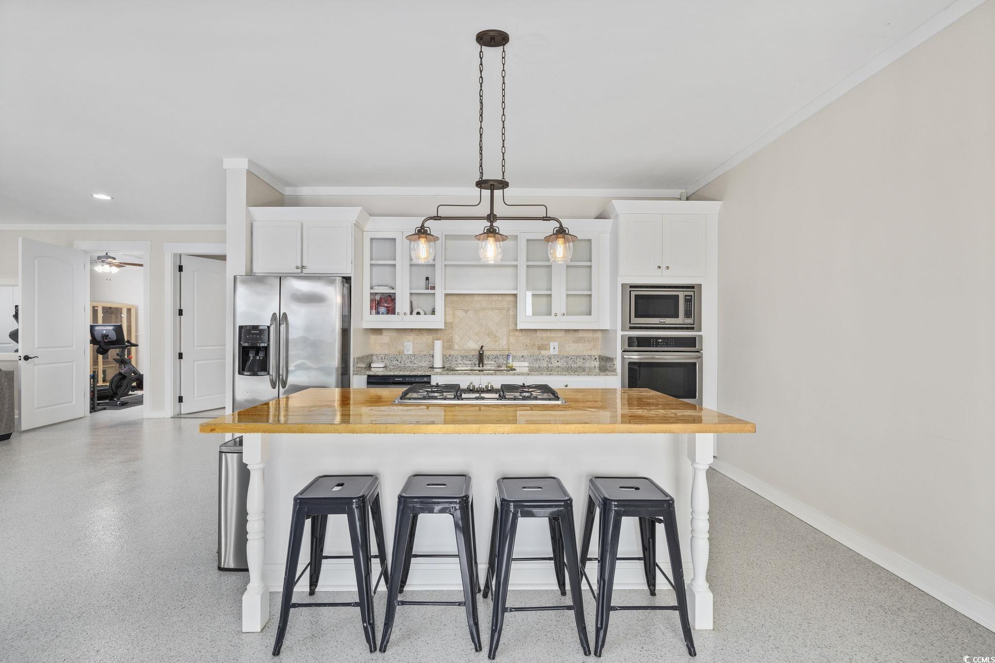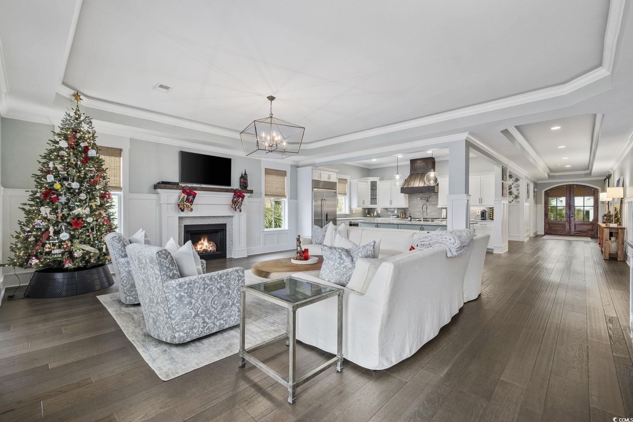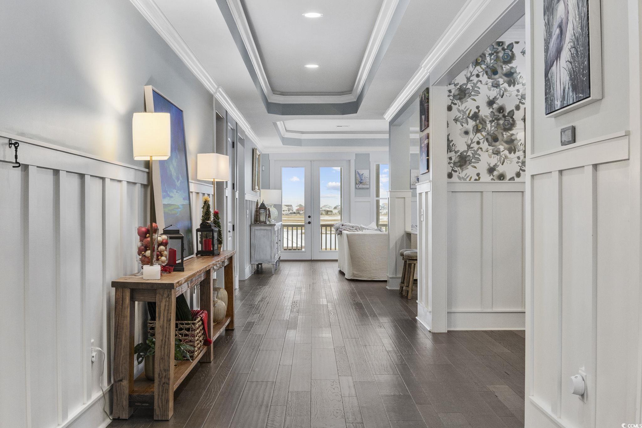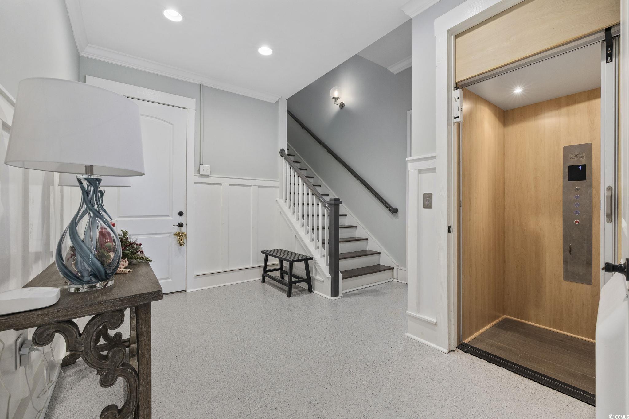 This beautifully designed, waterfront, modern beach-style residence within the highly desired Mt. Gilead community is the epitome of Murrells Inlet living. Masterful design and custom luxury are perfectly embodied within every detail that has been carefully selected and quality crafted by a custom home builder who built this for his own personal residence. The home features 7 bedrooms and 6 bathrooms throughout the three floors with an elevator for convenience. The top floor showcases the breathtaking panoramic views of the Inlet from the balcony, a spacious living area and rec room, three bedrooms, two full bathrooms, and laundry room. The second floor features two guest suites, the primary suite, another laundry room, all of your main living areas, and an expansive screened in balcony. The split bedroom plan provides privacy to all and the open concept floor plan is perfect for hosting and offers an abundance of natural light with stunning views. The ground level includes a 2 car garage for parking and storage, and a versatile mother in law suite complete with its own entrance, a primary suite, full kitchen, living area, and home gym with a sauna. The real show stoppers are the outdoor amenities that allow you to enjoy every aspect of the coastal lifestyle with a custom-built pool deck with an outdoor kitchen, in-ground pool and hot tub, outdoor shower, and a private, deep water access system, including a stationary dock complete with a sink station, additional seating, and hammock, a floating dock, and boat lift. This home, location, and the lifestyle it offers is truly one of a kind and an opportunity you won’t want to miss!