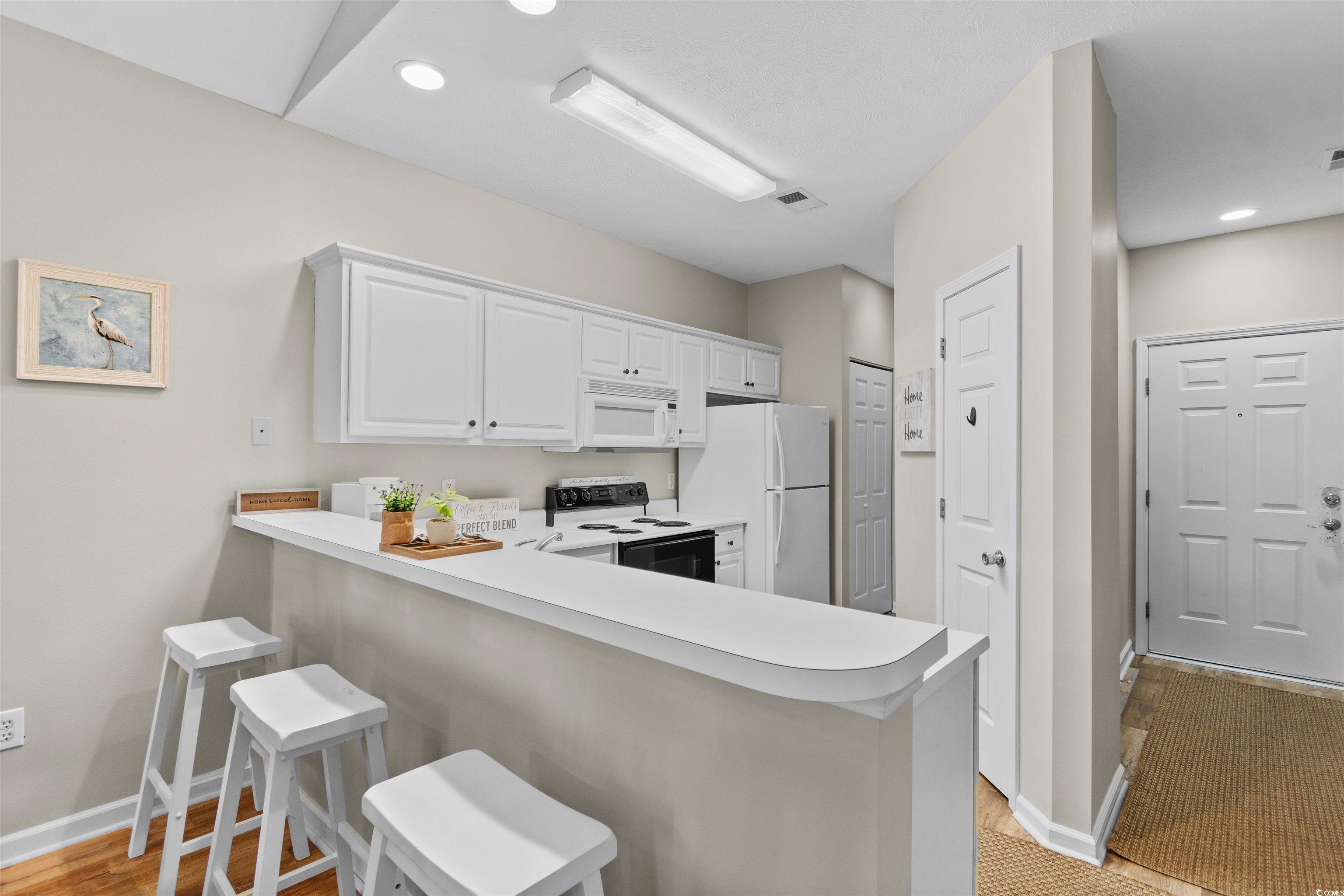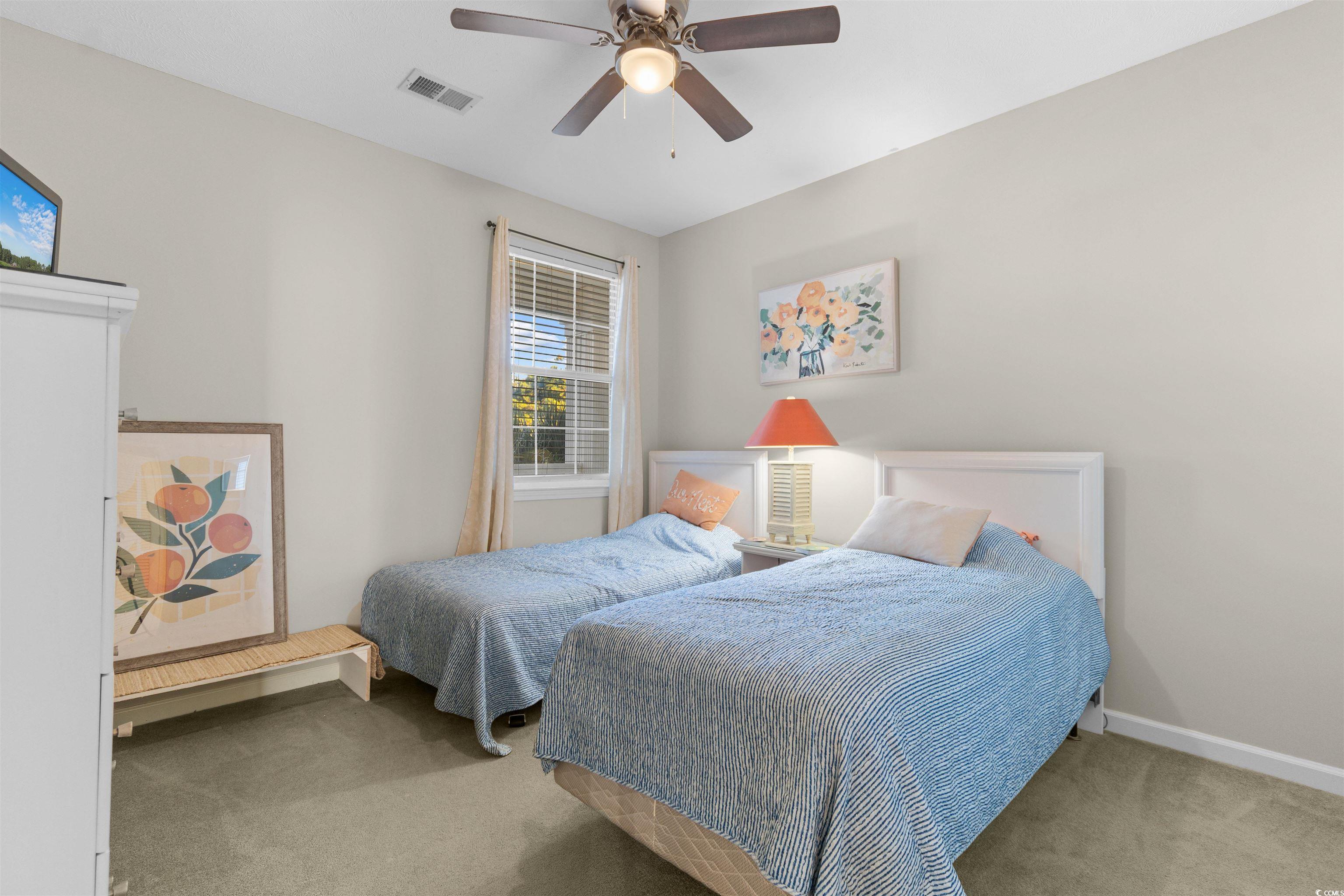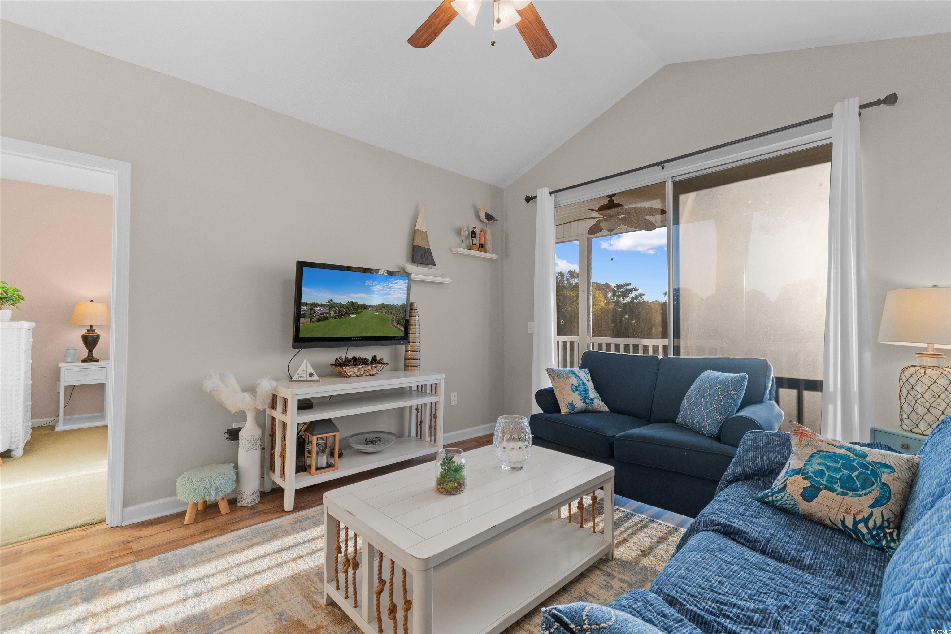 Don’t miss this beautifully maintained, furnished, 2 bedroom, 2 bath top-floor, end-unit condo in the highly desirable River Oaks community! Freshly painted throughout, this home offers a bright and open living space with vaulted ceilings that enhance the airy, coastal feel. The kitchen overlooks the living room, creating a seamless flow that’s perfect for entertaining or relaxing while enjoying the picturesque golf course views. The primary suite features an en suite bathroom complete with an extended vanity and tub/shower combo, while the second bedroom is spacious enough to comfortably accommodate two beds—ideal for guests or family visits. This condo has been beautifully maintained and is move-in ready. Enjoy the convenience of onsite amenities, including a community pool, perfect for soaking up the Myrtle Beach sunshine. Located just minutes from Carolina Forest and Highway 501, you’ll have easy access to top-rated restaurants, shopping, and world-class golf courses, like World Tour- all while being 4 miles from the BEACH! Whether you’re seeking a primary residence, vacation retreat, or investment property, this River Oaks gem offers the perfect combination of comfort, location, and lifestyle.