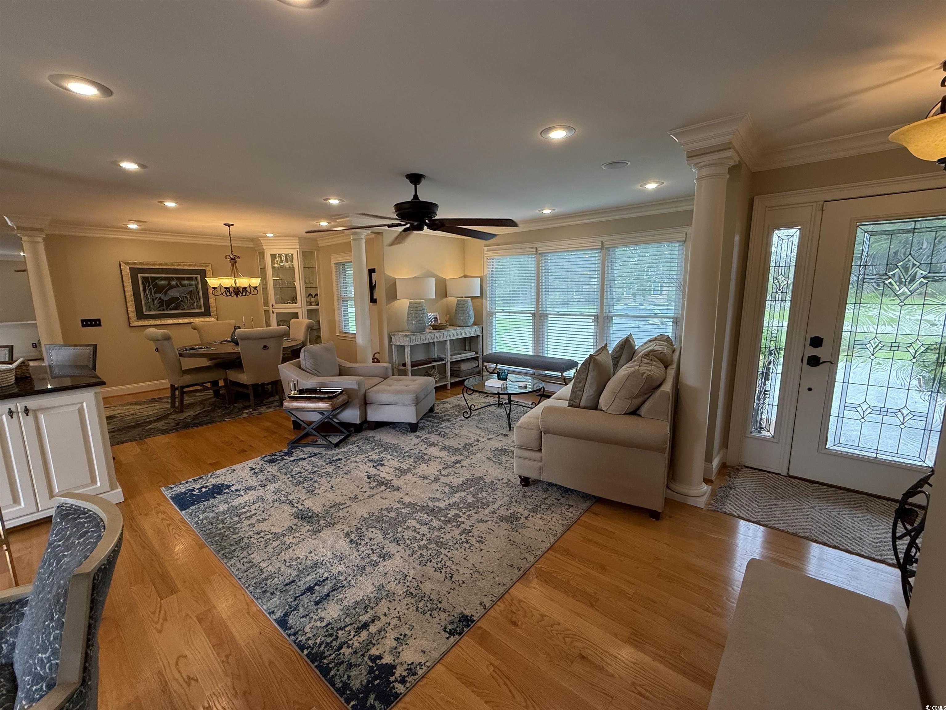 Step into timeless comfort with this spacious single-family home nestled in the Lake City Country Club. This one-story gem offers a stunning interior with an open-concept layout which is flooded with natural light. The beautiful rear patio is ideal for relaxing evenings or perfect for entertaining. The expansive lot boasts a luscious lawn and exquisite landscaping. The triple carport has ample storage on both sides plus a golf cart storage on the back. Driveway access from Old England Road and a stamped concrete half-circle driveway on Camelot Road. Located near schools, parks, and local amenities, this home combines privacy with convenience. Whether you're upsizing or downsizing, 638 Camelot Road is a smart move.