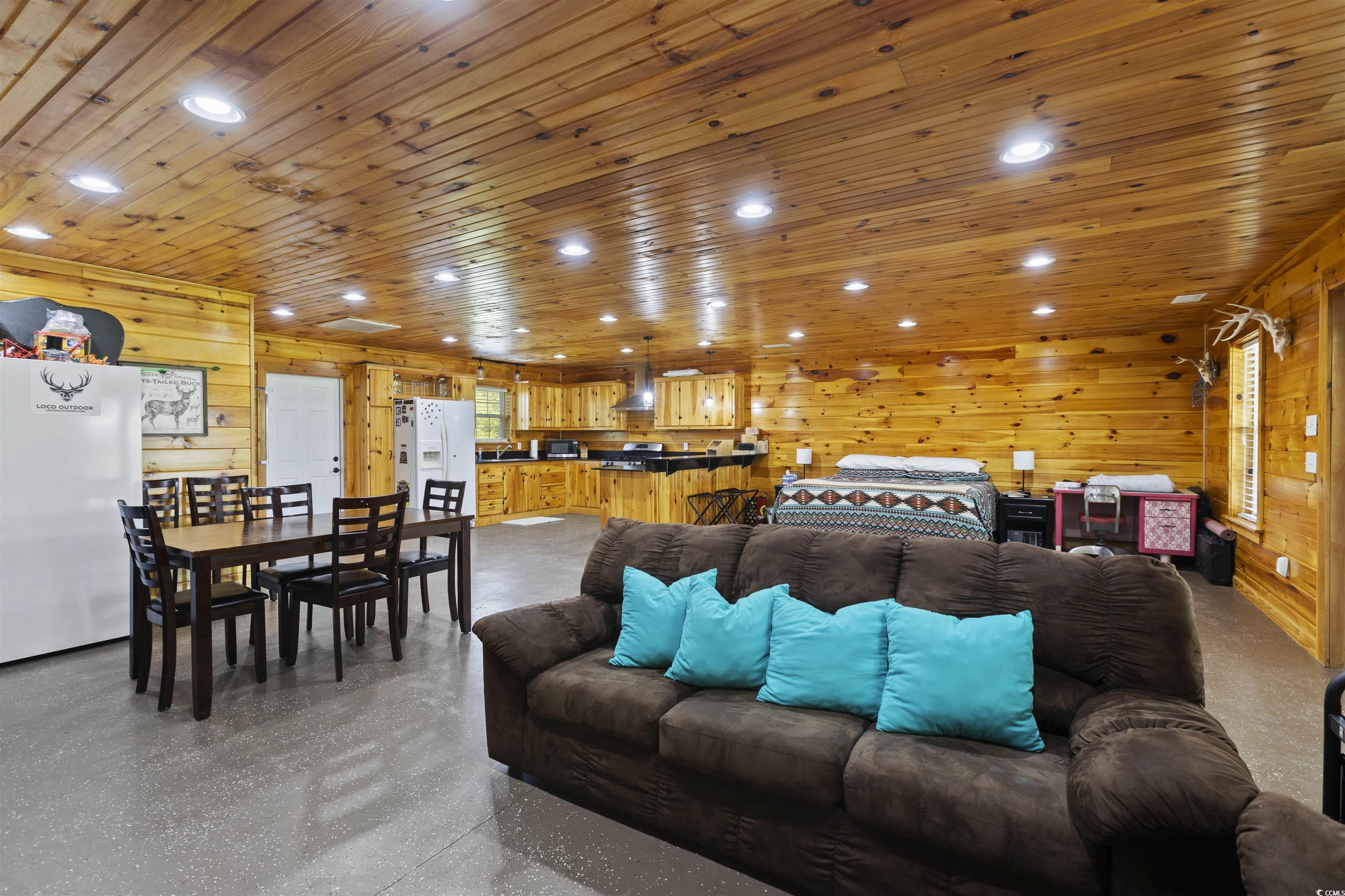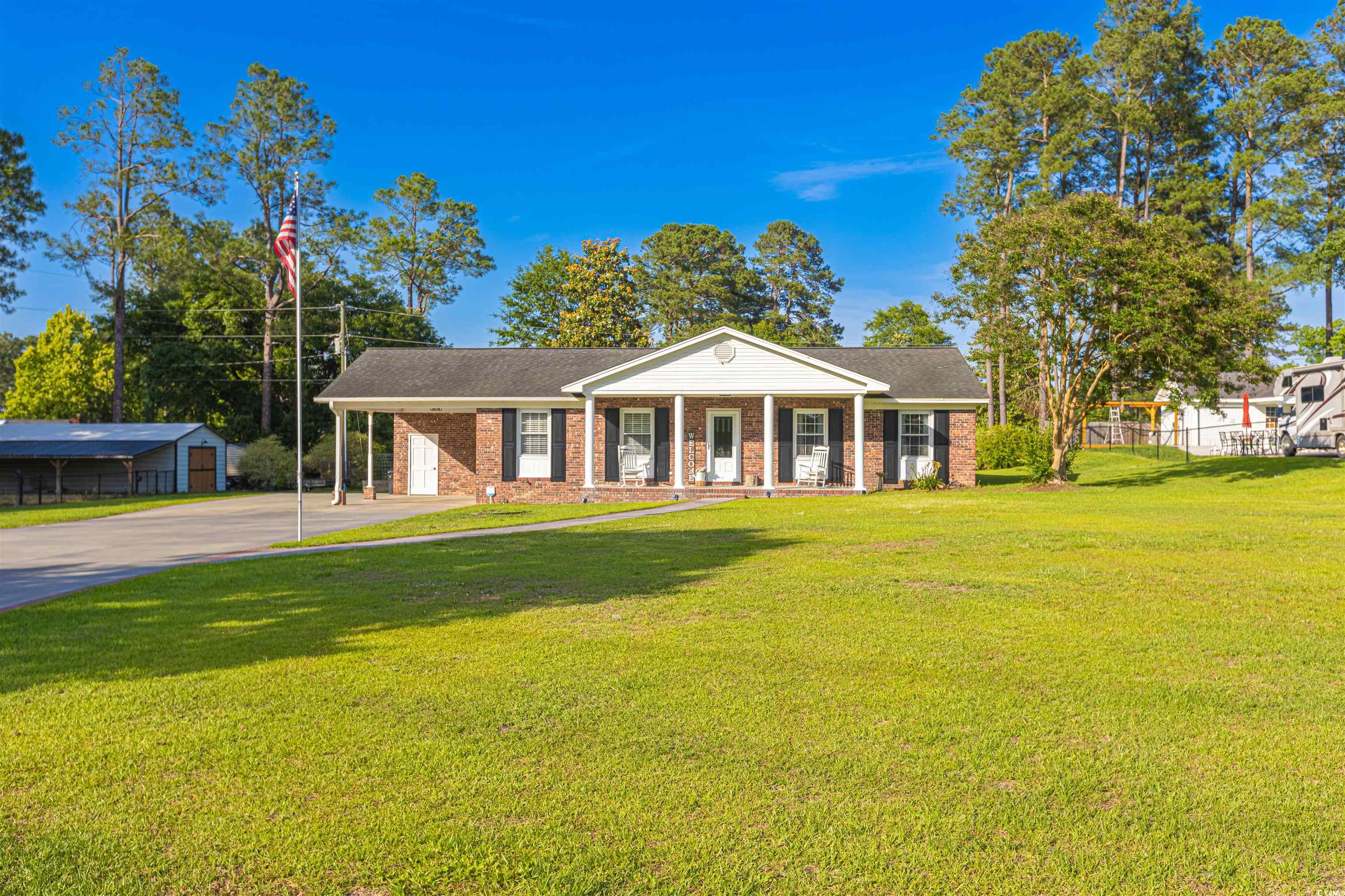 Located just outside the city limits of Andrews, SC, this impressive brick residence sits on a spacious, well-maintained lot. This home features three bedrooms and two full bathrooms, with an open living area that seamlessly connects the living/dining room, den, and kitchen. This home has been well-maintained and combines wood, tile, and carpet flooring. Freshly painted cabinets in the kitchen with granite countertops, tile showers in the bathrooms, a spacious mudroom, and much more. The property's standout feature is a remarkable 900 sq. ft. enclosed space behind the main home, complete with a full bathroom. With a large covered area that functions as an oversized porch, this space boasts a full kitchen, pine walls and ceilings, and recessed lighting. This additional space has endless opportunities for entertaining, an additional area for guests, and the list goes on. Furthermore, the property includes a 530 sq. ft. enclosed utility shed with a lean-to. The additional dwelling can be accessed from Lakewood Drive and has a separate driveway.