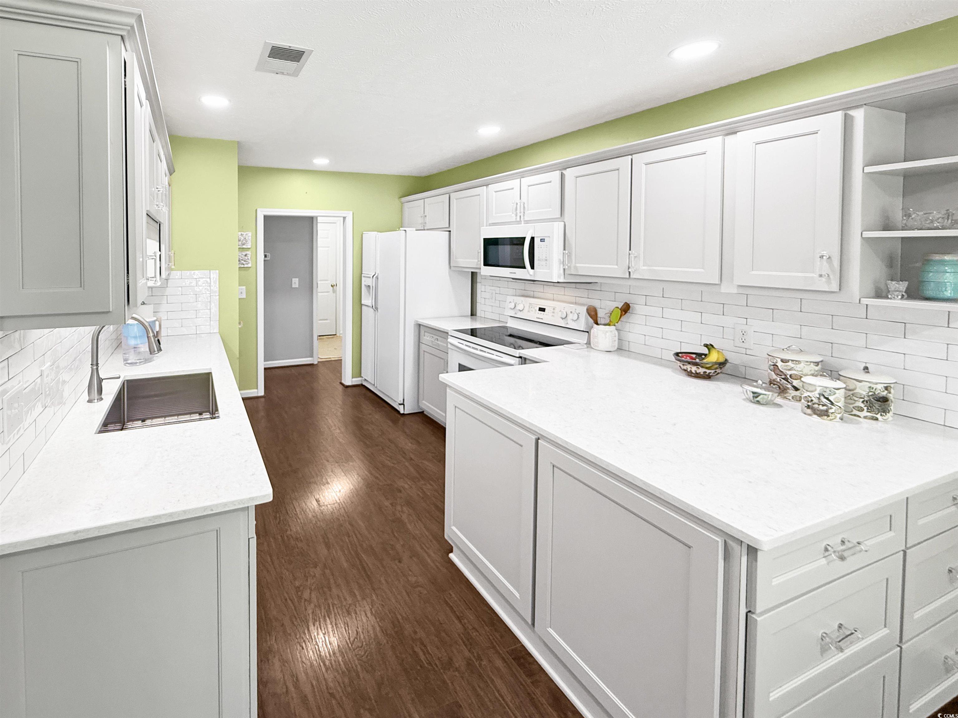 Nestled in the serene Rosecrest community of Pawleys Island, 64 Reef Run Rd offers a meticulously maintained 3-bedroom, 2-bathroom home designed for comfort and coastal living. The split-bedroom floor plan provides privacy, while the open-concept living area flows effortlessly into a bright Carolina room, perfect for sipping your morning coffee while enjoying peaceful views of the wooded backyard. This property backs up to your own private, wetland area, creating a truly tranquil outdoor setting ideal for quiet moments or casual gatherings. Inside, all bedrooms are spacious with generous closet space, and the garage features custom cabinetry, ideal for storage or hobbyists. The home is equipped with newer impact-resistant windows for added peace of mind and energy efficiency. The lush, well-kept lawn is maintained with a cost-effective well water irrigation system. Whether you’re relaxing indoors or cruising the neighborhood, you’ll love that you can take a short bike or golf cart ride to the beach, grocery stores, or local shops, an uncommon luxury in most communities. Don’t miss this rare opportunity to own a low-maintenance, move-in-ready home in one of Pawleys Island’s most charming and convenient neighborhoods. Book an appointment to view the property today!