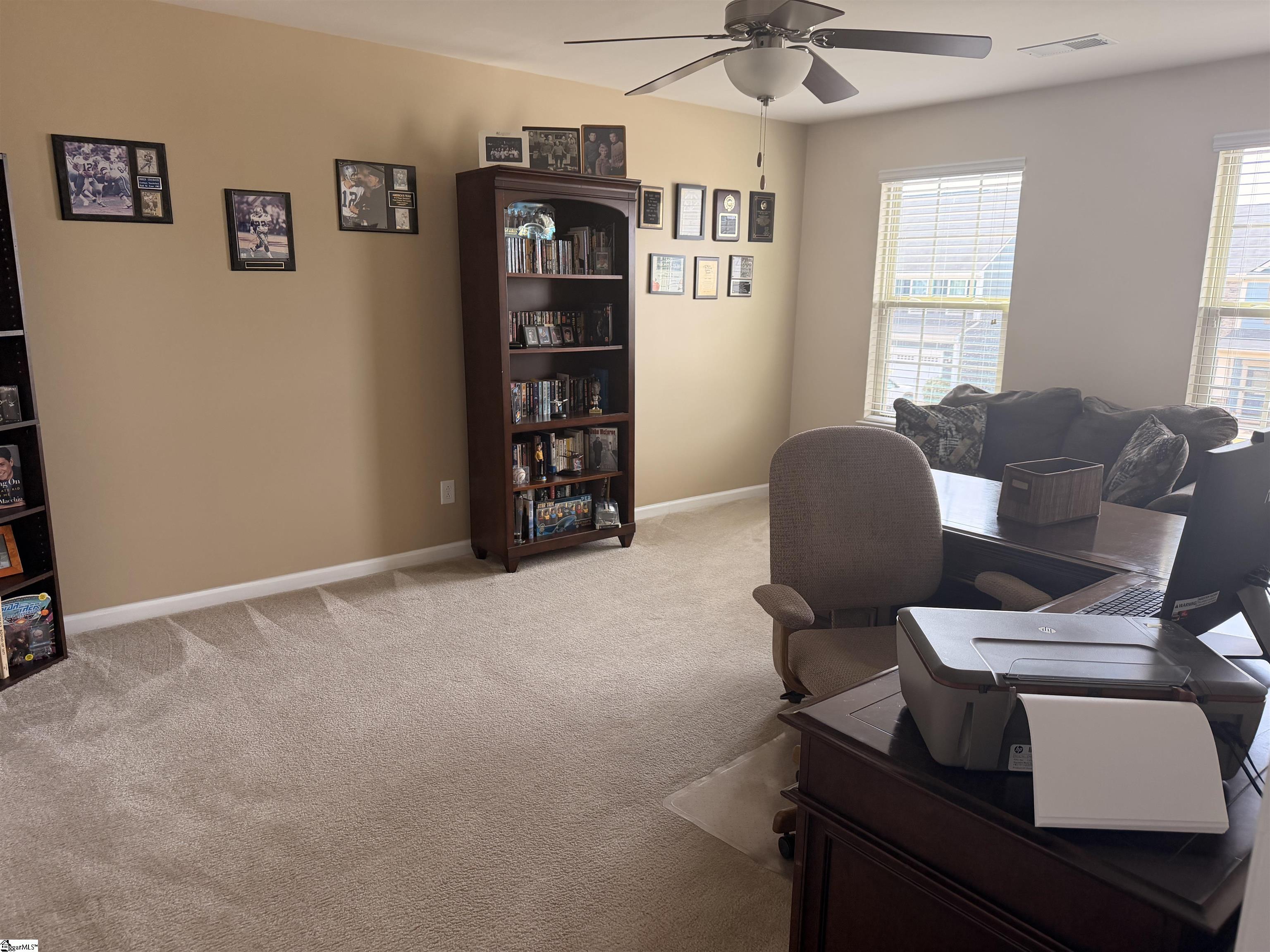 Professional photos are coming soon, but don’t wait—this immaculate home at is truly a must-see. Lovingly maintained and in like-new condition, it immediately impresses from the moment you arrive, with gorgeous landscaping and stunning floors that set the tone as you step inside. To the right, a handsome dining room with beautiful trim detail offers the perfect space for gatherings, while the home opens into an expansive living room and kitchen designed for both everyday living and entertaining. The oversized island comfortably seats six or more and anchors a space filled with granite countertops, bright lighting, a walk-in pantry, and an abundance of cabinet and counter space, including room for a coffee bar or dedicated workstation. Freshly painted at the end of 2025, the home also features a new gas range/oven and dishwasher installed in late 2025 and early 2026. Just off the living room, the spacious primary suite on the main level boasts trey ceilings and ample room for a sitting area, while the en-suite bath includes a tiled walk-in shower, separate soaking tub, and a large walk-in closet. Outdoor living is just as inviting, with a screened-in porch overlooking a fully fenced, private backyard that backs up to peaceful open green space. The cute outdoor shed provides additional storage or room for a gardening center. Upstairs, a large loft provides flexible living space and is complemented by two additional bedrooms, a full bath, and generous storage. The home has been meticulously cared for, with HVAC serviced twice yearly, a tankless water heater, recently professionally cleaned carpets, and a new garage door opener with updated tracks. The screened porch was refreshed with new screens in 2025, and energy efficiency is enhanced by solar board radiant sheathing, helping keep power bills low even during the hottest months. Refrigerator, washer, and dryer all convey, adding even more value. Ideally located and zoned for desirable schools, this exceptional home offers both comfort and convenience—don’t miss your opportunity to make it yours.