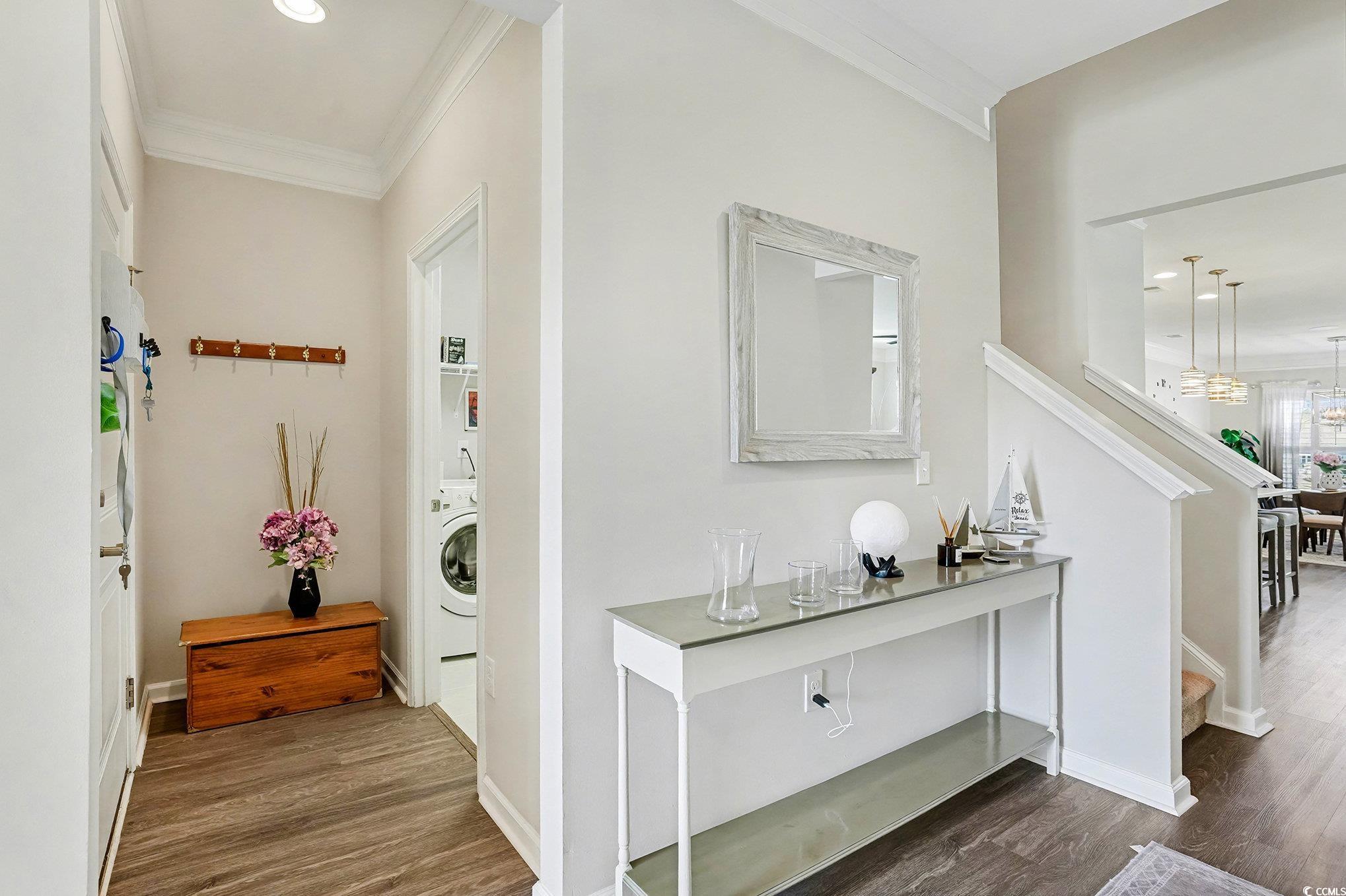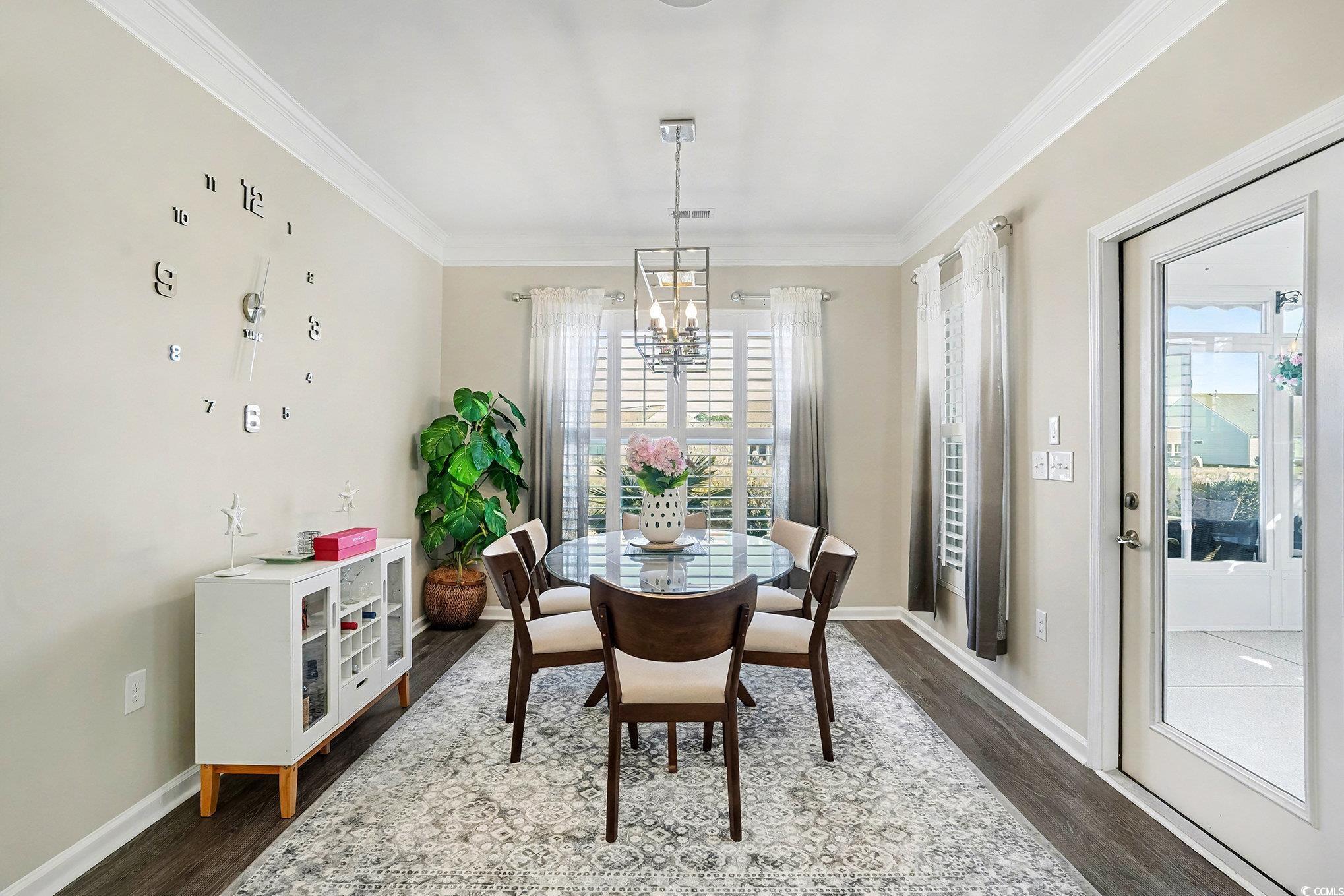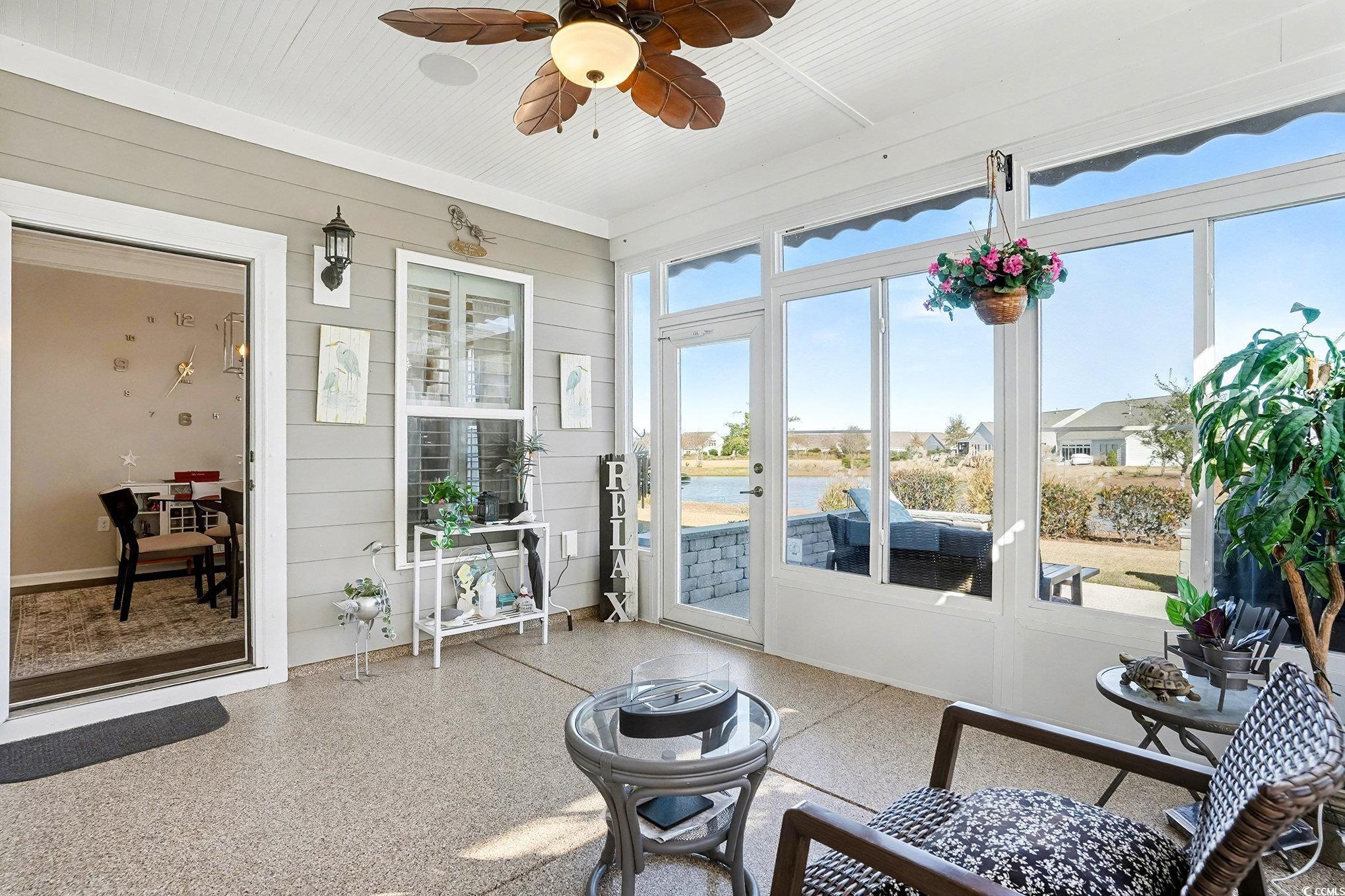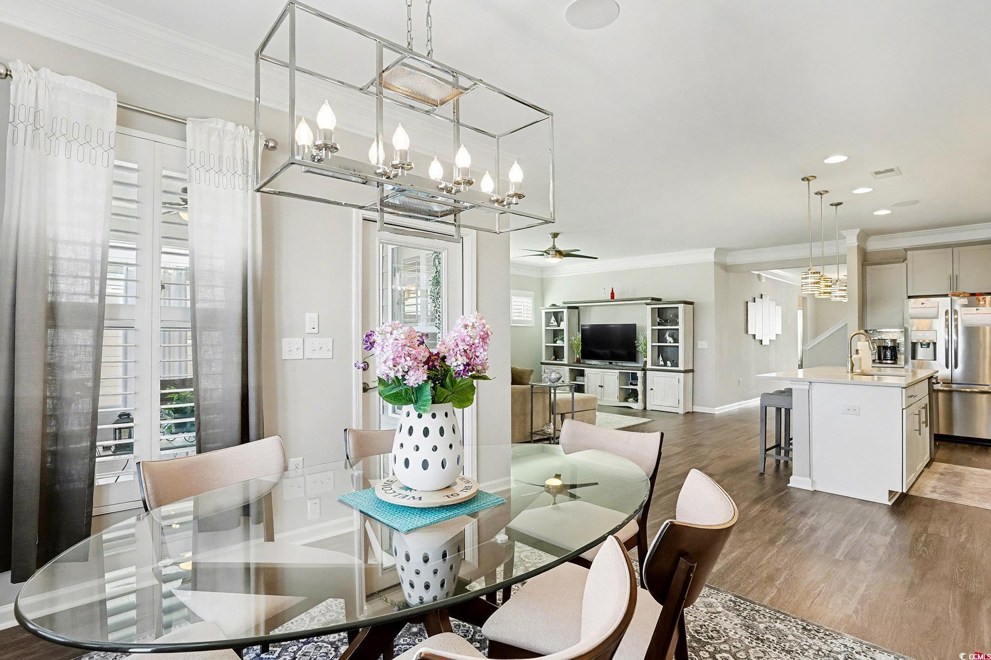 Motivated seller. Welcome to this expansive 4-bedroom, 3-bathroom residence nestled on a beautifully landscaped lot with a serene water view in Del Webb. This "like-new" home boasts an array of custom features, including a spacious 27 x 22-foot loft, a bedroom with an en-suite bath, and a thoughtfully designed walk-in attic that provides easy access and ample storage. Enjoy a multi-source amplified audio surround system and a stunning 8-light candle chandelier in the dining area. The kitchen is a chef's dream, featuring a Sierra tile backsplash, elegant quartz countertops, and a stainless-steel appliance package that includes a 5-burner range, microwave, dishwasher, and refrigerator. The entry, gathering area, kitchen, dining room, and master bedroom are adorned with beautiful two-piece crown molding. The owner's suite offers an oversized walk-in rain shower and a generous closet. Unwind in the air-conditioned Carolina room while taking in the evening views or relax on the attached patio. Del Webb provides a resort-style amenity center with an outdoor fire pit overlooking the Intracoastal Waterway, an indoor pool, a fully equipped gym, four pickleball courts, two tennis courts, and covered bocce ball courts. There's also a full-time activities director and exclusive access for homeowners to the Grande Dunes Ocean Club! This property is situated in Myrtle Beach's premier coastal community.