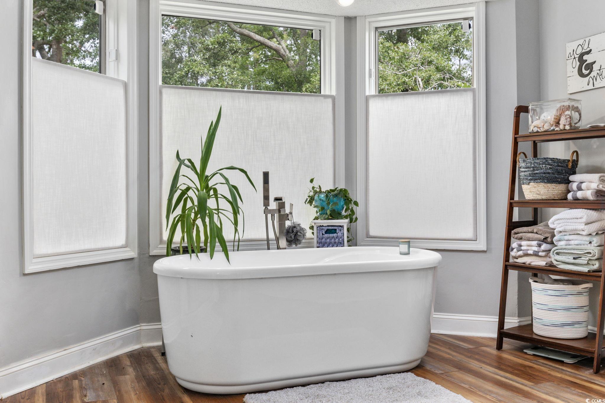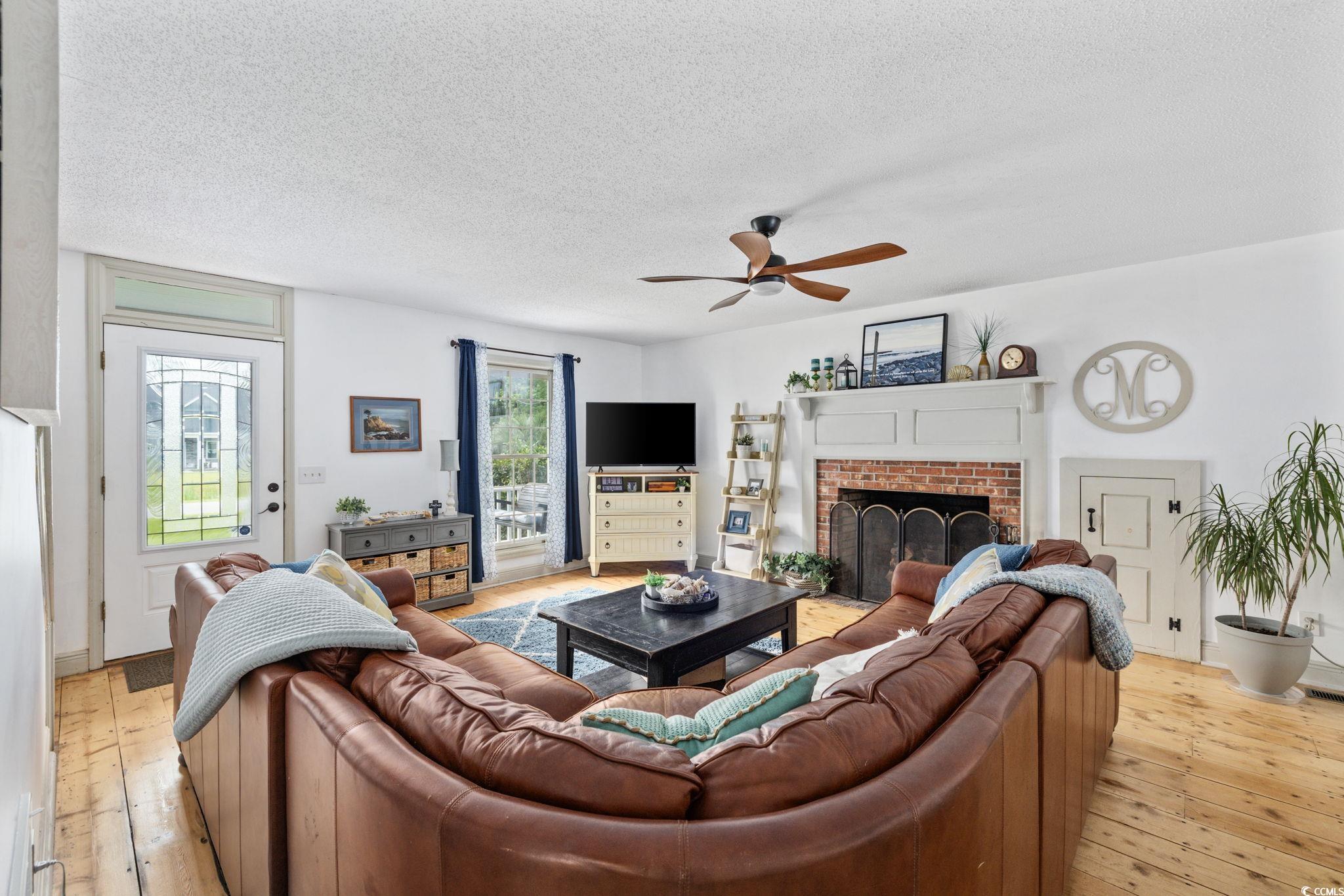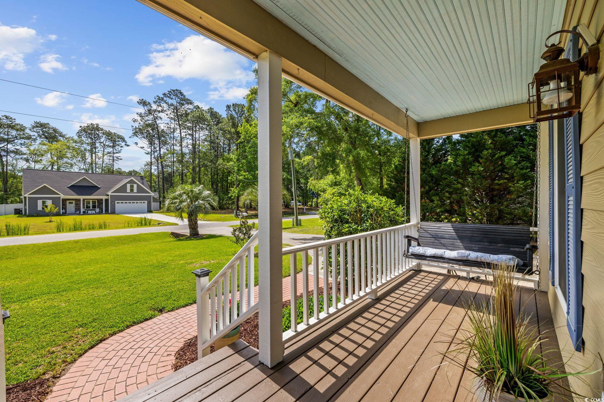 Discover the unique charm and abundant space of 645 Boundaryline Dr NW, a home designed for comfortable living and memorable entertaining. From the inviting front porch, step inside to a bright and cozy living area, highlighted by a wood-burning fireplace. The primary bedroom is a true sanctuary, featuring a beautifully renovated bathroom with a luxurious soaker tub for your personal spa escape. Throughout the main level, you'll admire the gorgeous, refinished hardwood pine floors that add warmth and elegance to every step. Meal preparation becomes a joy in the tastefully renovated kitchen, boasting desirable double ovens and stunning countertops. Imagine cooking while enjoying serene views of the majestic oak tree and wooded yard from the kitchen and dining room windows. Beyond the interior, find tranquility or entertain with ease in the delightful sunroom, which overlooks the expansive and picturesque backyard. The spacious deck offers ample room for quiet contemplation or lively gatherings, and the added charm of a tree swing and swing set promises endless outdoor fun. Upstairs, you'll find two additional bedrooms—one on each end of the house—a renovated full bathroom, a large central room overlooking the beautiful backyard, and another charming room with dormer windows, offering versatile living spaces. The upstairs is getting new carpeting, paint and ceiling fans! Nestled in the established community of Carolina Shores North in Calabash, NC, this home offers more than just a place to live—it's a lifestyle. Enjoy tree-lined streets, access to a community pool and tennis courts, and exceptional proximity to the stunning Sunset and Ocean Isle Beaches. You'll also appreciate the convenience of two nearby airports, excellent medical facilities, diverse dining and shopping options, entertainment venues, and, of course, the renowned seafood restaurants and vibrant waterfront of Calabash.