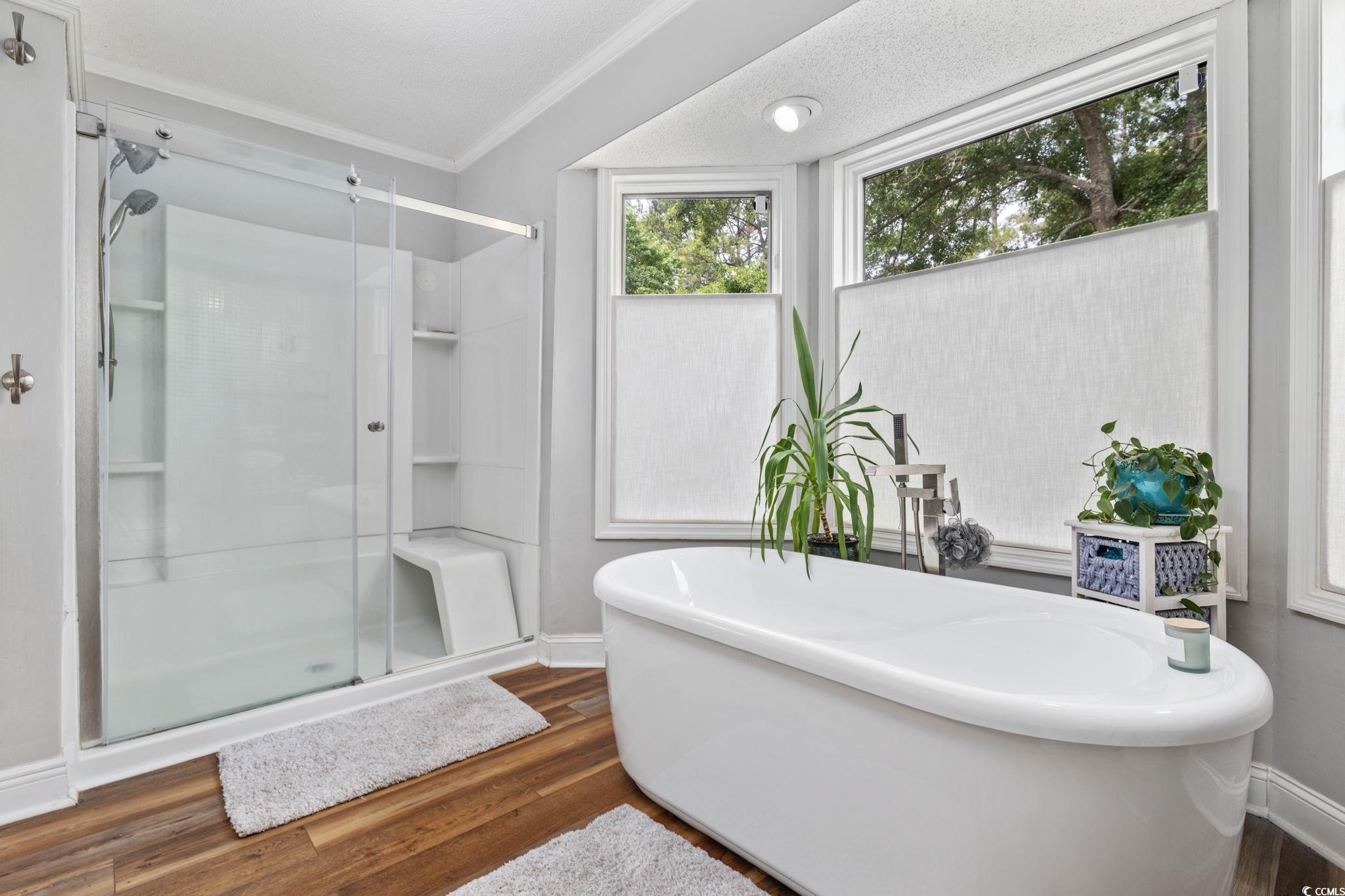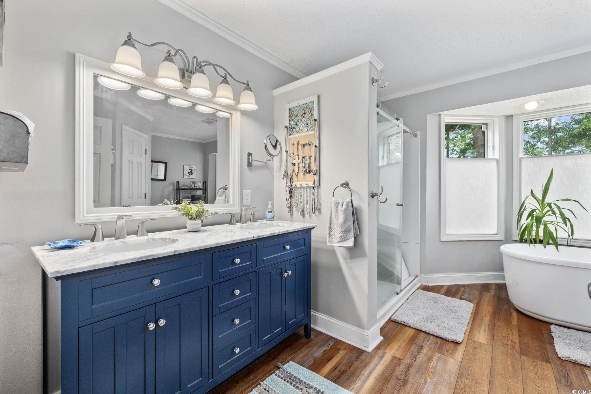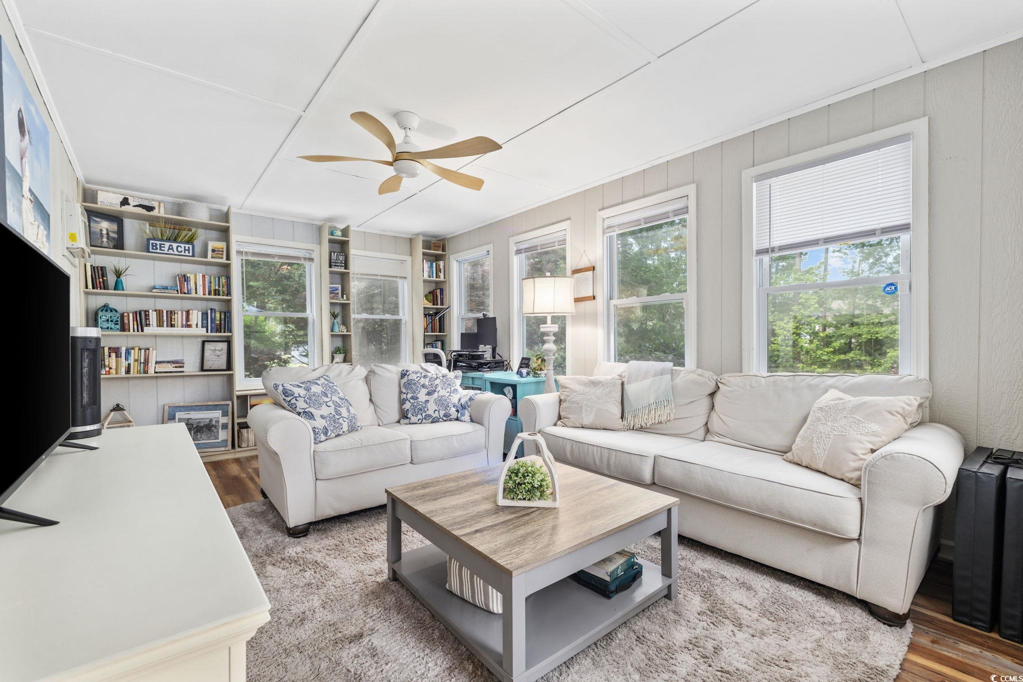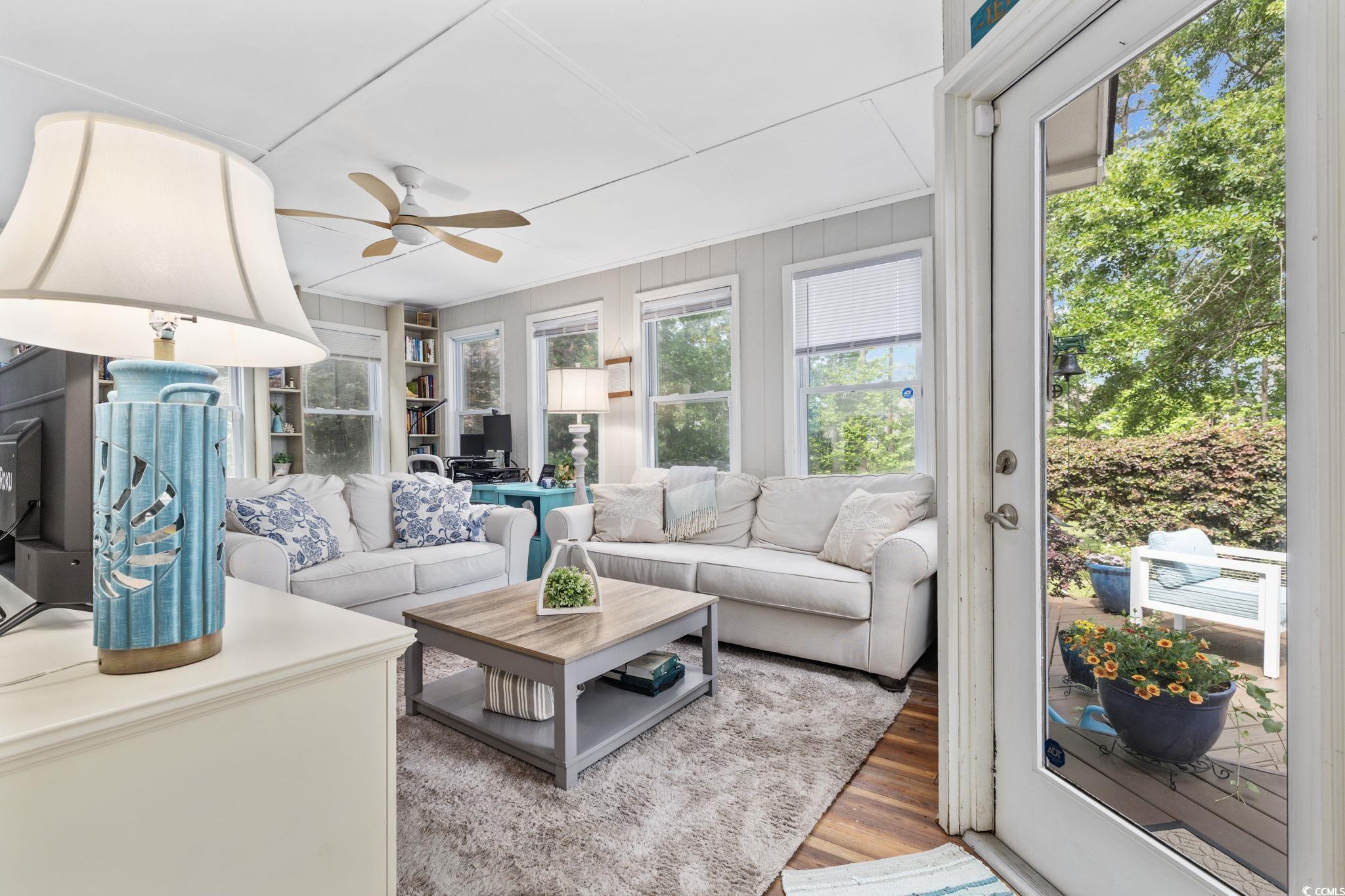 Discover the unique charm and abundant space of 645 Boundaryline Dr NW, a home designed for comfortable living and memorable entertaining. From the inviting front porch, step inside to a bright and cozy living area, highlighted by a wood-burning fireplace. The primary bedroom is a true sanctuary, featuring a beautifully renovated bathroom with a luxurious soaker tub for your personal spa escape. Throughout the main level, you'll admire the gorgeous, refinished hardwood pine floors that add warmth and elegance to every step. Meal preparation becomes a joy in the tastefully renovated kitchen, boasting desirable double ovens and stunning countertops. Imagine cooking while enjoying serene views of the majestic oak tree and wooded yard from the kitchen and dining room windows. Beyond the interior, find tranquility or entertain with ease in the delightful sunroom, which overlooks the expansive and picturesque backyard. The spacious deck offers ample room for quiet contemplation or lively gatherings, and the added charm of a tree swing and swing set promises endless outdoor fun. Upstairs, you'll find two additional bedrooms—one on each end of the house—a renovated full bathroom, a large central room overlooking the beautiful backyard, and another charming room with dormer windows, offering versatile living spaces. The upstairs is getting new carpeting, paint and ceiling fans! Nestled in the established community of Carolina Shores North in Calabash, NC, this home offers more than just a place to live—it's a lifestyle. Enjoy tree-lined streets, access to a community pool and tennis courts, and exceptional proximity to the stunning Sunset and Ocean Isle Beaches. You'll also appreciate the convenience of two nearby airports, excellent medical facilities, diverse dining and shopping options, entertainment venues, and, of course, the renowned seafood restaurants and vibrant waterfront of Calabash.