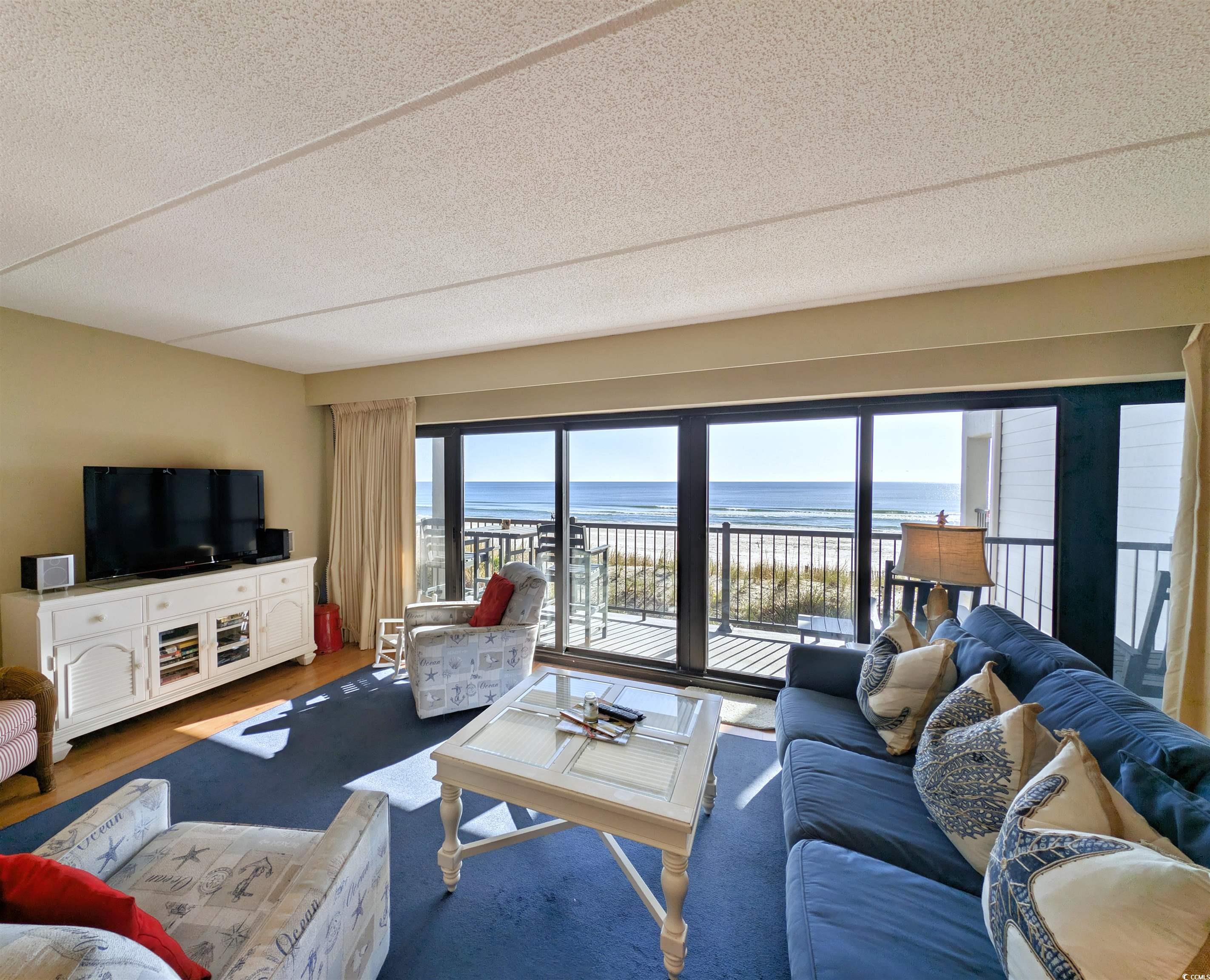 This is an Interval Ownership property. Experience the ultimate coastal retreat with this interval ownership at Inlet Point, a private, gated oceanfront community tucked away on a secluded peninsula in Litchfield Beach. This beautifully maintained second-floor 2-bedroom, 2-bath condo offers sweeping ocean and beach views through wall-to-wall sliders that open onto a spacious oceanfront balcony—perfect for relaxing or entertaining. The open-concept layout features hardwood flooring throughout the living, dining, kitchen, and wet bar areas. The fully equipped kitchen includes a convenient breakfast bar, and both the owner’s suite and guest bedroom provide comfort and privacy for family or guests. As an owner, you’ll enjoy four weeks per year—one per season—of oceanfront living or have the option to rent your weeks. Community amenities include direct access to the pristine beach, two swimming pools, a hot tub, a creek dock, and 24-hour guarded security. Elevator access and impeccable housekeeping make ownership effortless.
