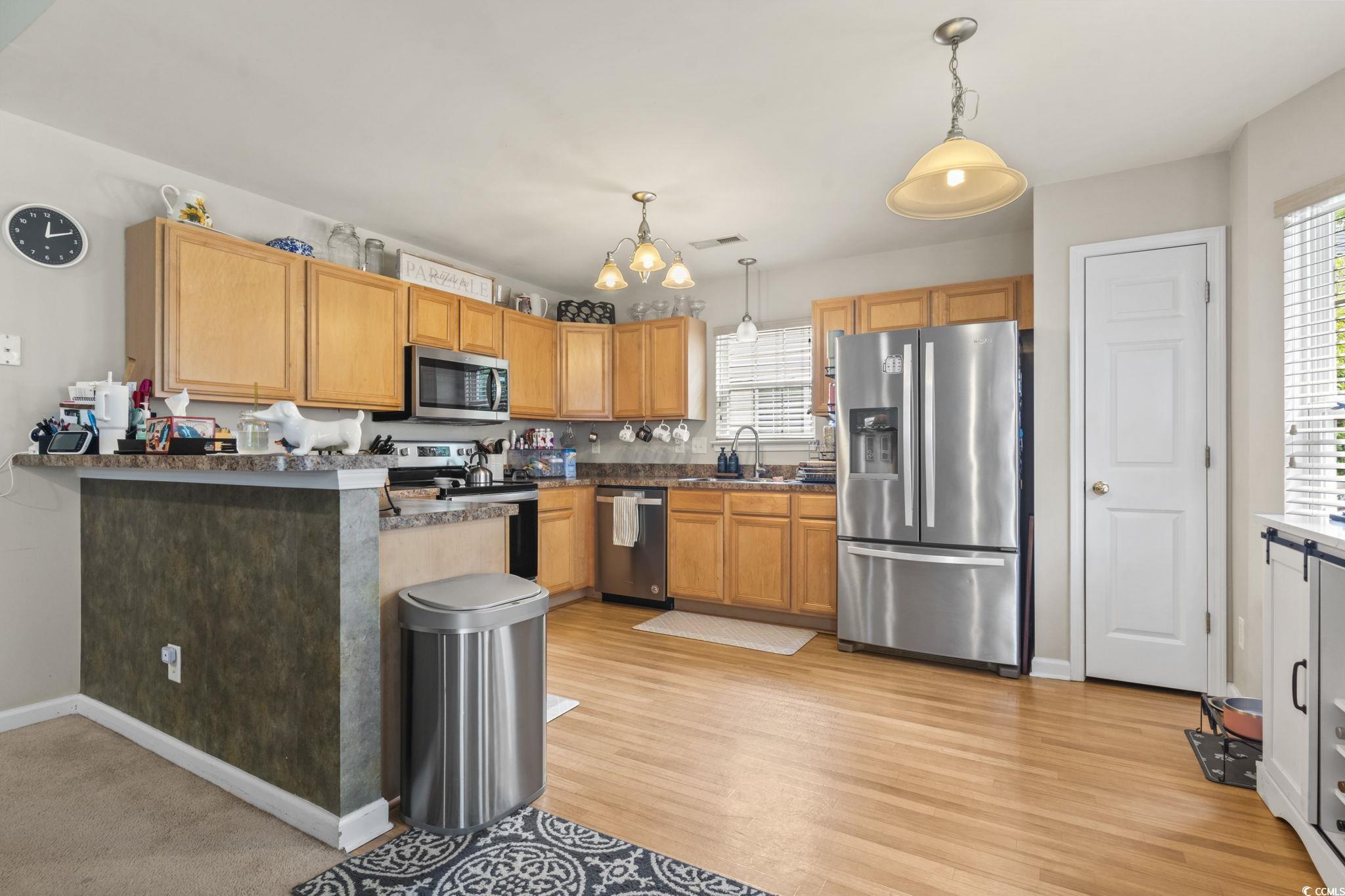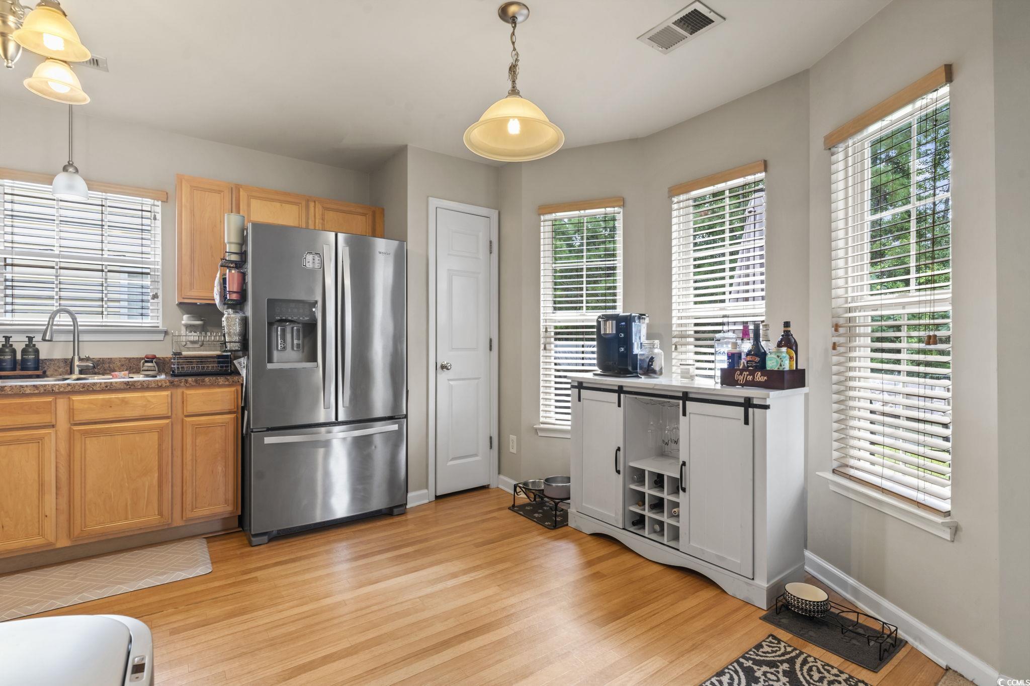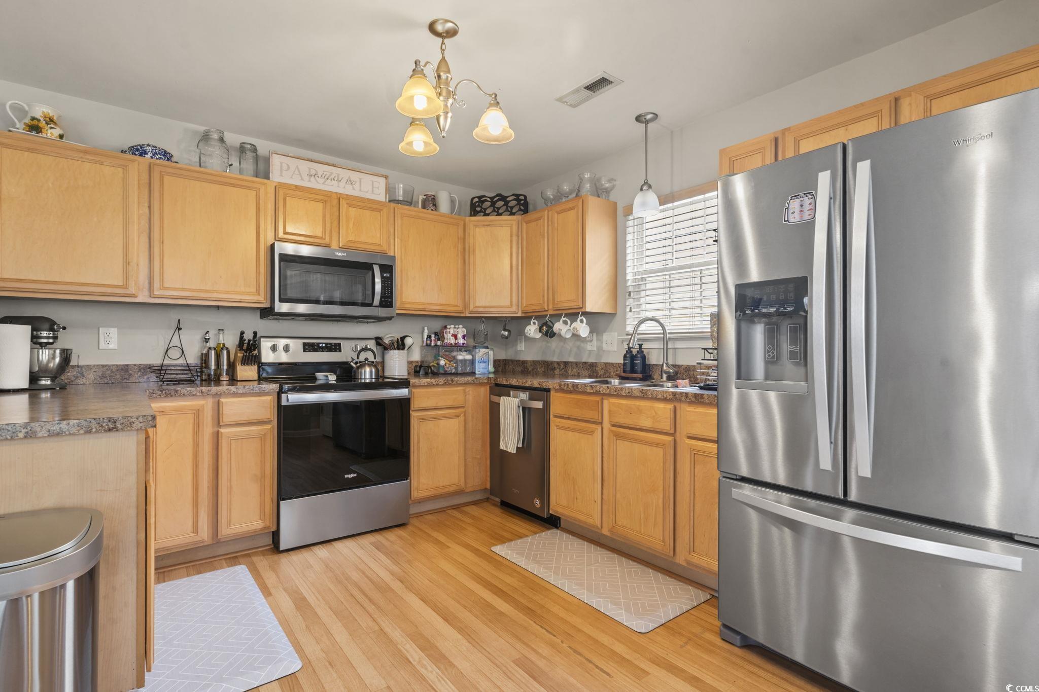 BEAUTIFULLY MAINTAINED 4-BEDROOM HOME WITH BONUS/FLEX ROOM IN GATED COMMUNITY – PRICED TO SELL! Welcome to this gorgeous 4-bedroom, 2-bath home with a spacious bonus/flex room and oversized 2-car garage, located in the highly desirable gated community of Myrtle Beach Golf & Yacht Club. This meticulously maintained property offers excellent curb appeal with charming brick accents and comes with a new roof and HVAC system installed in 2023 for peace of mind. Step inside and you’ll immediately notice the tasteful updates, including stylish new flooring and a functional split floor plan. The inviting living room features vaulted ceilings and an abundance of natural light, creating a bright, open space perfect for relaxing or entertaining. The kitchen is a chef’s delight, offering plenty of cabinetry, generous counter space, stainless steel appliances, and a cozy dining area. The primary suite is located at the front of the home and features a walk-in closet along with a private bath complete with dual sinks and a large walk-in shower. Three additional bedrooms are equally spacious, each with large closets and easy access to the second full bathroom. The fourth bedroom, located upstairs, provides flexible space that can also be used as a bonus room, home office, or game room depending on your needs. Home offers the unique opportunity to assume a very low interest mortgage. Enjoy tranquil wooded views from the light-filled Carolina Room, which opens to a private patio and is ideal for outdoor relaxation or morning coffee. The oversized garage offers plenty of room for beach gear, golf clubs, and additional storage. All appliances, including the washer and dryer, are included with the home. Myrtle Beach Golf & Yacht is a secure, amenity-rich community featuring 24-hour gated security, a pool, tennis courts, and more. Conveniently located near major highways, this home provides easy access to shopping, dining, golf, and everything the Grand Strand has to offer. Don’t miss your opportunity to own this exceptional home in a prime location so schedule your showing today!
