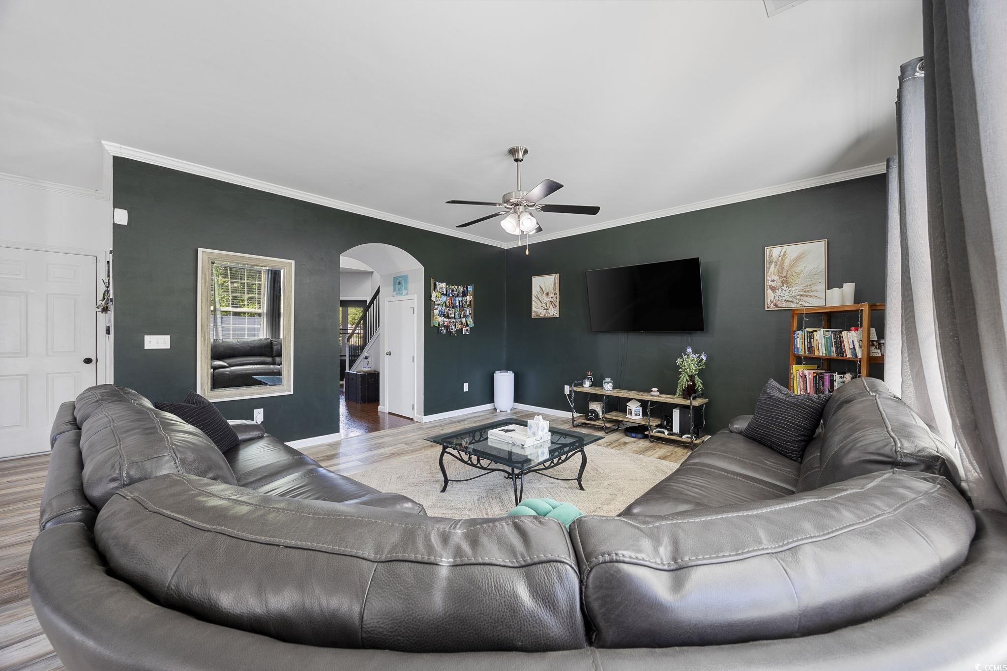 This charming 4 bedroom, 2.5 bath home located in the West Ridge subdivision is conveniently located minutes to Conway Medical Center and the University; shopping, beaches and the airport are a 20-30 minute drive. You'll love this open floor concept with natural light pouring in through the living room windows and sliding glass door. The kitchen includes stainless steel appliances and a breakfast bar. The master bedroom features a vaulted ceiling and master bath with a double sink vanity, garden tub and a walk in closet. This home also features a fenced in back yard with a vegetable garden and a view of small pond with a fountain across the street. The serene community includes an amenity center with a pool and club house. Don't miss out on this amazing opportunity to own a beautiful and spacious home in an unbeatable location. Schedule your showing today before it's gone!