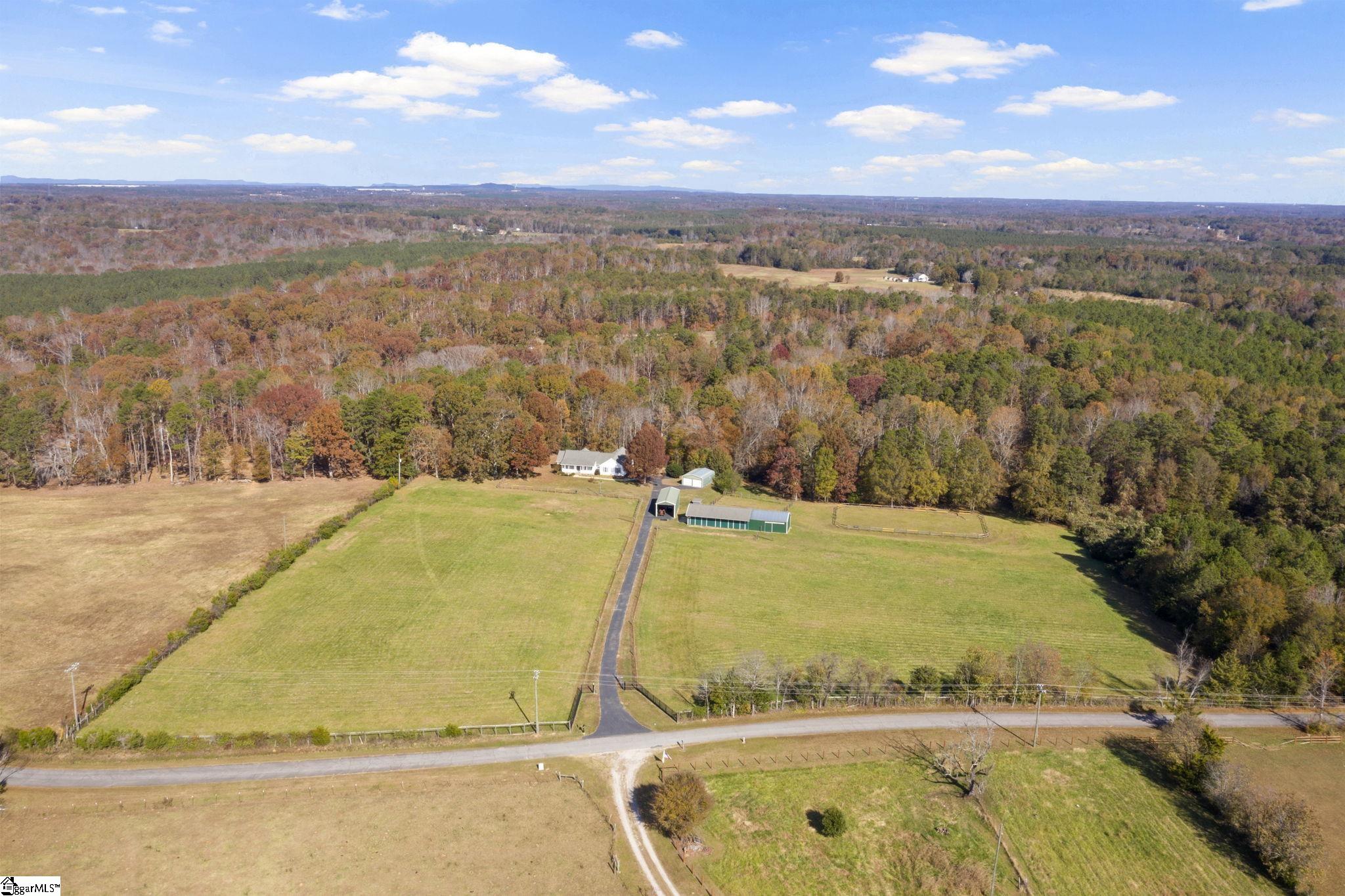 10.4-Acre Horse Farm — Convenient to I-85 and Just 20 Minutes from Downtown Spartanburg! Experience the best of country living on this beautiful 10.4-acre horse farm, offering the perfect blend of comfort, functionality, and privacy. The 1,919 sq. ft. home features 3 bedrooms, 2.5 baths, a bright sunroom, spacious eat-in kitchen, and a formal dining room—ideal for family living and entertaining. The kitchen is well-appointed with quartz countertops, updated appliances, a pantry, and a breakfast bar. Enjoy plenty of storage and workspace with both a double attached garage and a double detached garage/workshop, plus an RV storage shed for additional vehicles or equipment. Equestrians will love the well-equipped barn featuring 3 stalls, a wash stall, tack room, and hay storage area, along with two fenced pastures and open acreage perfect for riding or future expansion. The home is connected to public water, while a dedicated well supplies the barn and outdoor watering needs. Whether you’re seeking a private retreat or a functional mini-farm, this property offers the ideal combination of rural tranquility and modern convenience—all just minutes from Spartanburg and I-85.