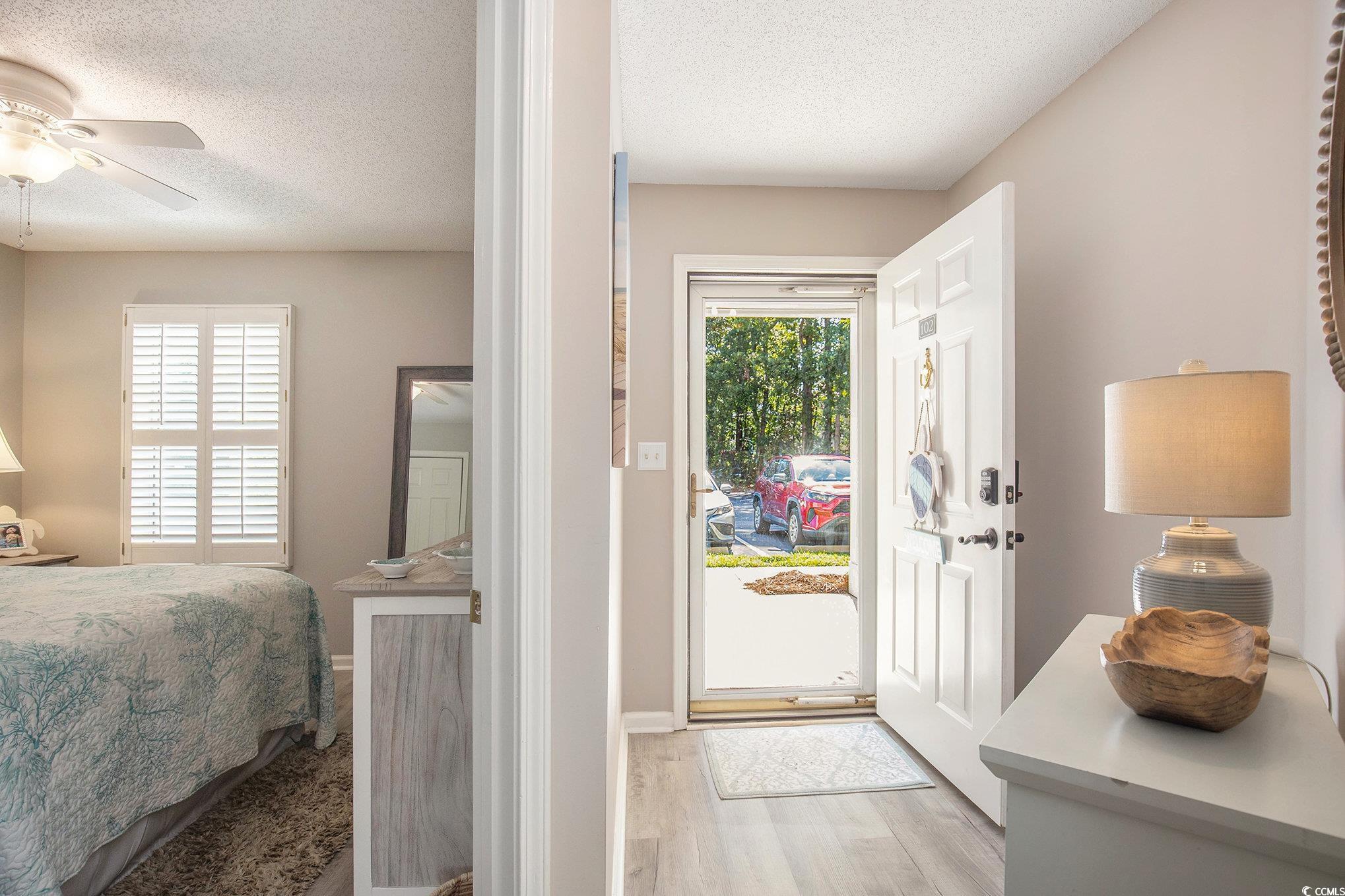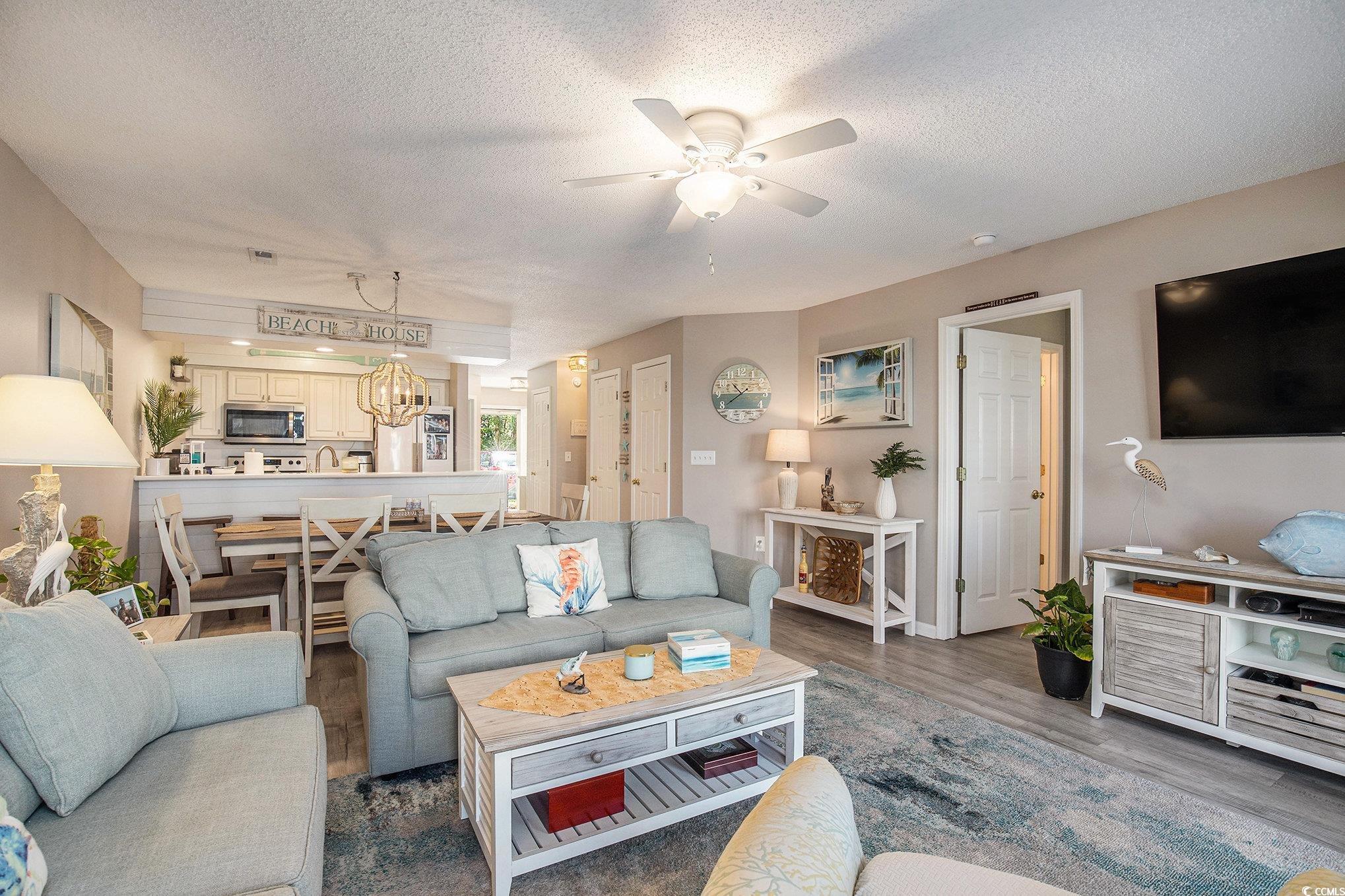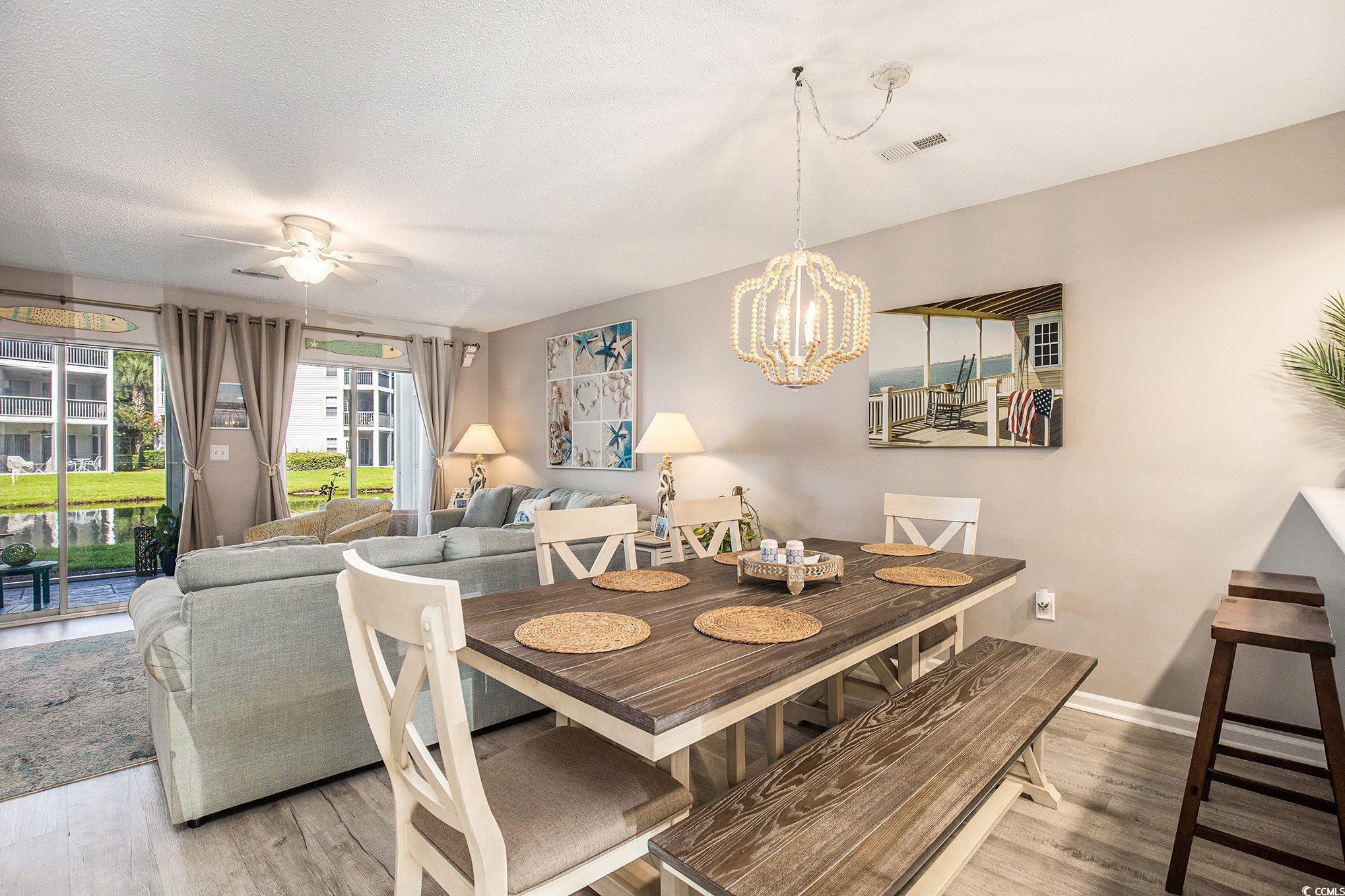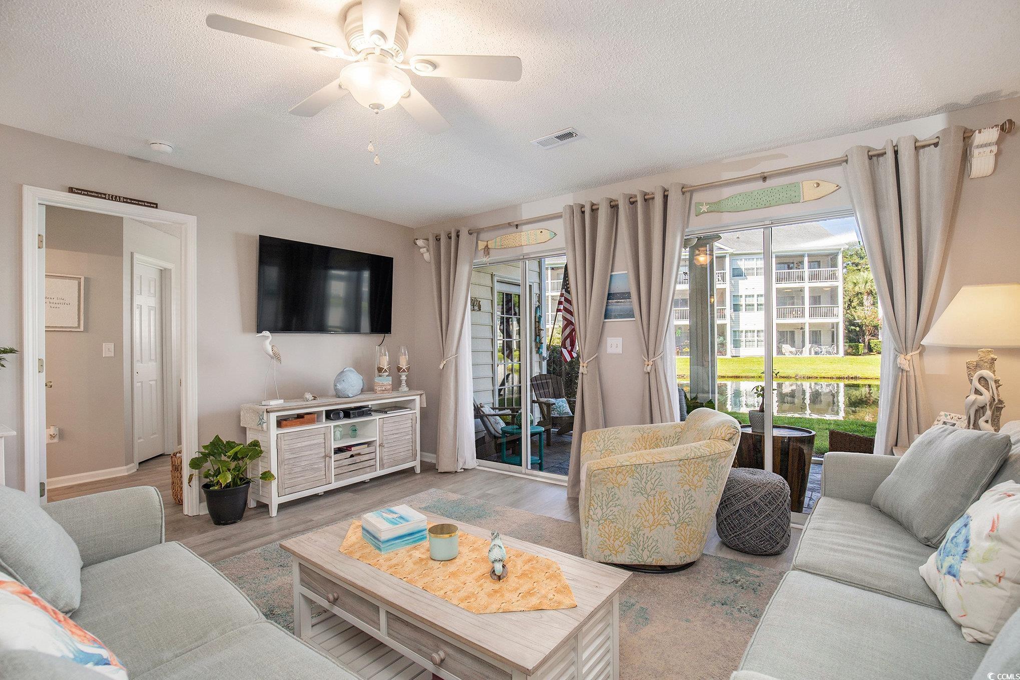Discover the perfect coastal lifestyle in this charming first-floor condo, nestled in a peaceful, well-maintained community. Surrounded by a scenic lake with a fountain, the serene screened-in patio offers stunning water views, ideal for relaxation and enjoying nature. This move-in ready home features numerous updates, including a new HVAC (2021), water heater (2021), countertops (2020), sleek shiplap accents in the kitchen, modern lighting, and new LVP flooring with neutral paint throughout. The property comes fully furnished, making it an effortless transition for new owners. The community boasts a clubhouse & pool with easy access to the beach, just 1.2 miles away. Conveniently located near restaurants, medical facilities, Surfside and Garden City piers, golf courses, the Marshwalk, airport, and all South Carolina state parks. Don't miss this fantastic opportunity to own a turnkey condo in a perfect location.