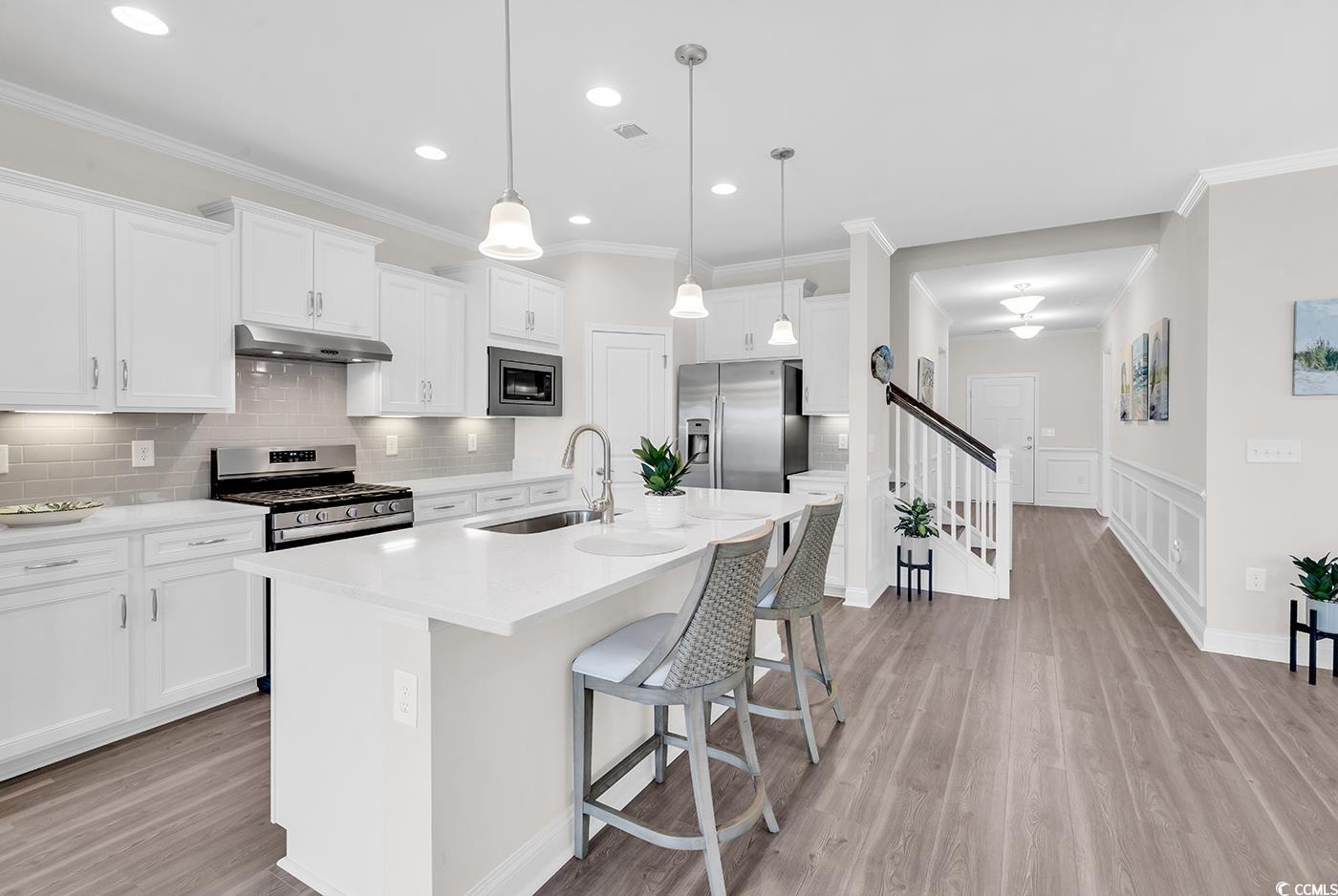 Welcome to Del Webb Grande Dunes—Myrtle Beach's premier 55+ community where luxury meets lifestyle! This stunning 4-bedroom, 2-bathroom open floor home with a large loft featuring the coveted Summerwood floor plan, offers the perfect blend of comfort, elegance, and scenic beauty. This practically new home built in 2023 is located at Phase III which is nestled on a fine lot conveniently close to the community club house. This energy efficient home includes an upgraded 15 seer HVAC unit and upgraded R38 attic insulation and a Rinnal tankless water heater. Enjoy your morning coffees or evenings from your bright lanai, a peaceful retreat right in your fenced backyard. Step inside to discover elegant luxury vinyl plank (LVP) flooring that flows seamlessly throughout, adding warmth and sophistication. The custom molding, baseboards, wains coating elevate the space with thoughtful and practical design touches. The heart of this home is its stunning, upgraded kitchen—featuring elegant quartz countertops, premium stainless-steel appliances, and custom cabinetry. Perfectly designed for both everyday living and entertaining, this space seamlessly blends style and functionality. The spacious primary suite provides a serene retreat with a luxurious en-suite bathroom, complete with double vanities and a generous walk-in closet. A beautifully crafted wooden staircase leads to one of the home’s most desirable highlights: a versatile and large loft area that can serve as an additional living space, entertainment area, or guest bedroom. Ceiling fans throughout the home provide comfort year-round, plantation shutters adorn the windows and additional storage in the garage ensures you have space for everything you need. The garage can accommodate 2 cars and a golf cart. Living at Del Webb Grande Dunes means you'll enjoy a wealth of world-class amenities. The 15,000 sq. ft. clubhouse offers a cutting-edge fitness center, an indoor heated pool, and a resort-style outdoor pool. Whether you’re into tennis, pickleball, or bocce ball, there's something here for you. Plus, a dedicated Lifestyle Director keeps the calendar full of exciting events and social opportunities. As a resident, you'll also enjoy exclusive access to the Grande Dunes Ocean Club—a private beachfront haven with parking for both cars and golf carts. Spend your days by the private pool, soaking up oceanfront views, or enjoying casual dining and upscale restaurant options. Beach towels, chairs, and umbrellas are provided to make every visit effortless. Conveniently located along the Intracoastal Waterway and just two miles from the beach, this vibrant community puts you close to everything Myrtle Beach has to offer—including incredible dining, shopping, medical facilities, and over 90 world-class golf courses. Don’t miss out on this rare opportunity to enjoy resort-style living in one of Myrtle Beach's most sought-after active adult communities. Schedule your tour today and make this dream home yours!