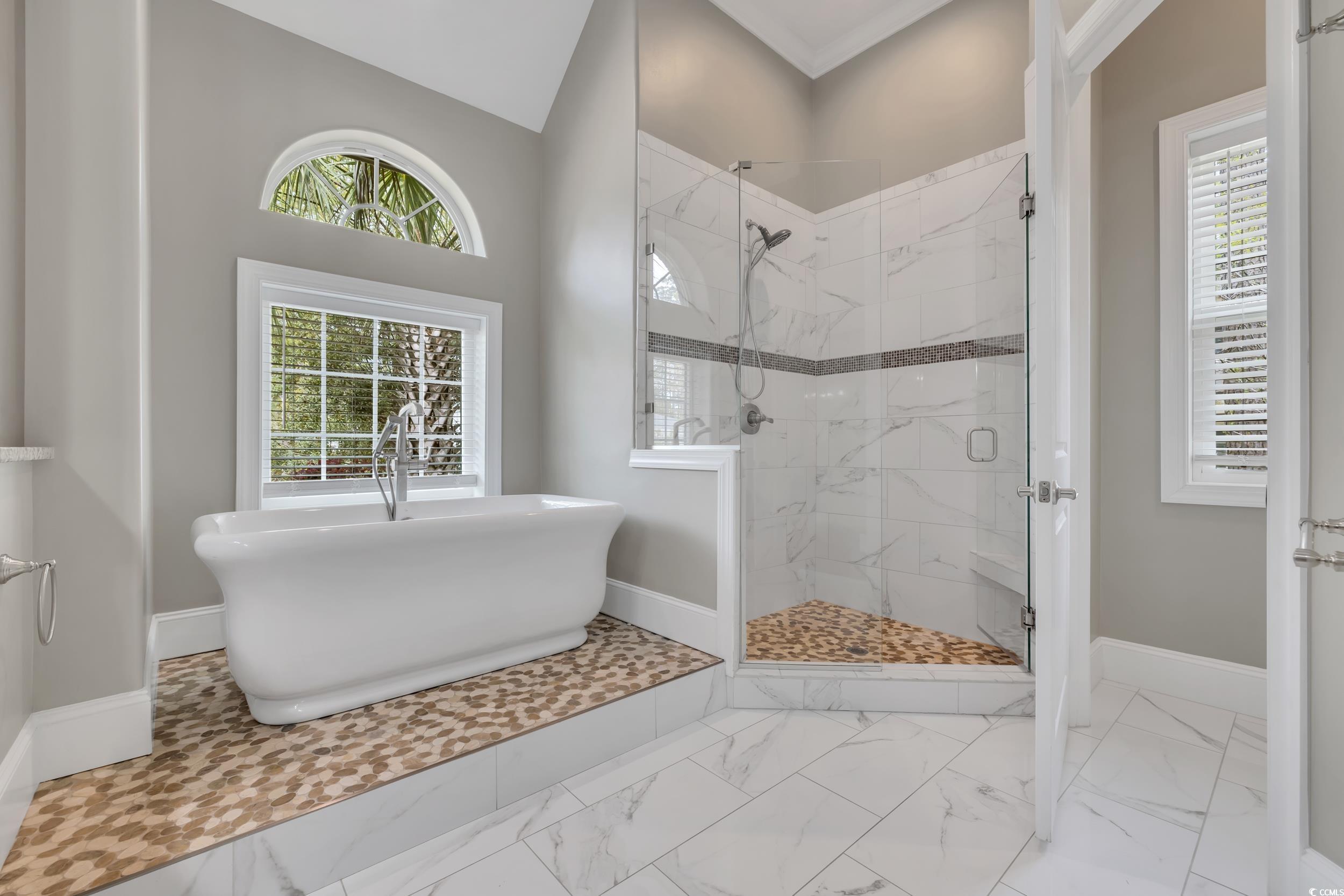 OPEN HOUSE ON SATURDAY FROM 10-12. GATE CODE WILL BE 38662. Stately Custom Brick Home in Bellwood Landing | St. James School District: Built by a respected custom home builder as his personal residence, this timeless brick estate is a standout in both design and quality. Located at the end of a quiet cul-de-sac in the gated, natural gas community of Bellwood Landing in Prince Creek West, the home offers exceptional privacy and craftsmanship, all within the sought-after St. James school district—just in time to be settled before the school year begins! A stately façade with arched brickwork, tall columns, and manicured landscaping welcomes you into light-filled interiors featuring soaring ceilings, rich millwork, and a layout that was thoughtfully designed for today’s modern family. From the spacious great room with coffered ceilings and a floor-to-ceiling stone fireplace, to the formal dining room and nearby home office with a dramatic two-story window wall, every space feels purposeful and inviting. Function and Style in Every Detail: The gourmet kitchen offers custom cabinetry, granite countertops, a gas range with custom hood, classic subway tile, and a showstopping accent wall behind the cooktop. A large breakfast bar and adjoining dining nook make it ideal for both entertaining and everyday life. The first-floor owner’s suite is a true retreat, featuring tray ceilings, dual walk-in closets, and French doors leading to the covered back porch. The ensuite bath includes a freestanding soaking tub set on a river rock base, a walk-in tiled shower, dual vanities, and warm maple cabinetry. Flexible Upstairs Living: Two generously sized guest bedrooms upstairs each have oversized closets and access to two full bathrooms. A large bonus room with dormer windows, built-in wet bar, and extra storage provides flexibility for a playroom, media room, or creative space. Superior Construction & Hidden Perks: Constructed with 6” insulated concrete foam for durability, energy efficiency, and soundproofing, this home also includes R50 attic insulation, a whole-house Generac generator, and central vacuum system. And yes—there’s even a “secret” feature worth asking about! A Lifestyle You’ll Love: Bellwood Landing offers residents access to The Park at Prince Creek West—featuring a pool, tennis courts, playground, picnic pavilion, and scenic nature trail. Just minutes from the Murrells Inlet Marsh Walk, local restaurants, golf courses, and shopping, this location provides a quiet coastal lifestyle without sacrificing convenience. Some photos have been virtually staged.