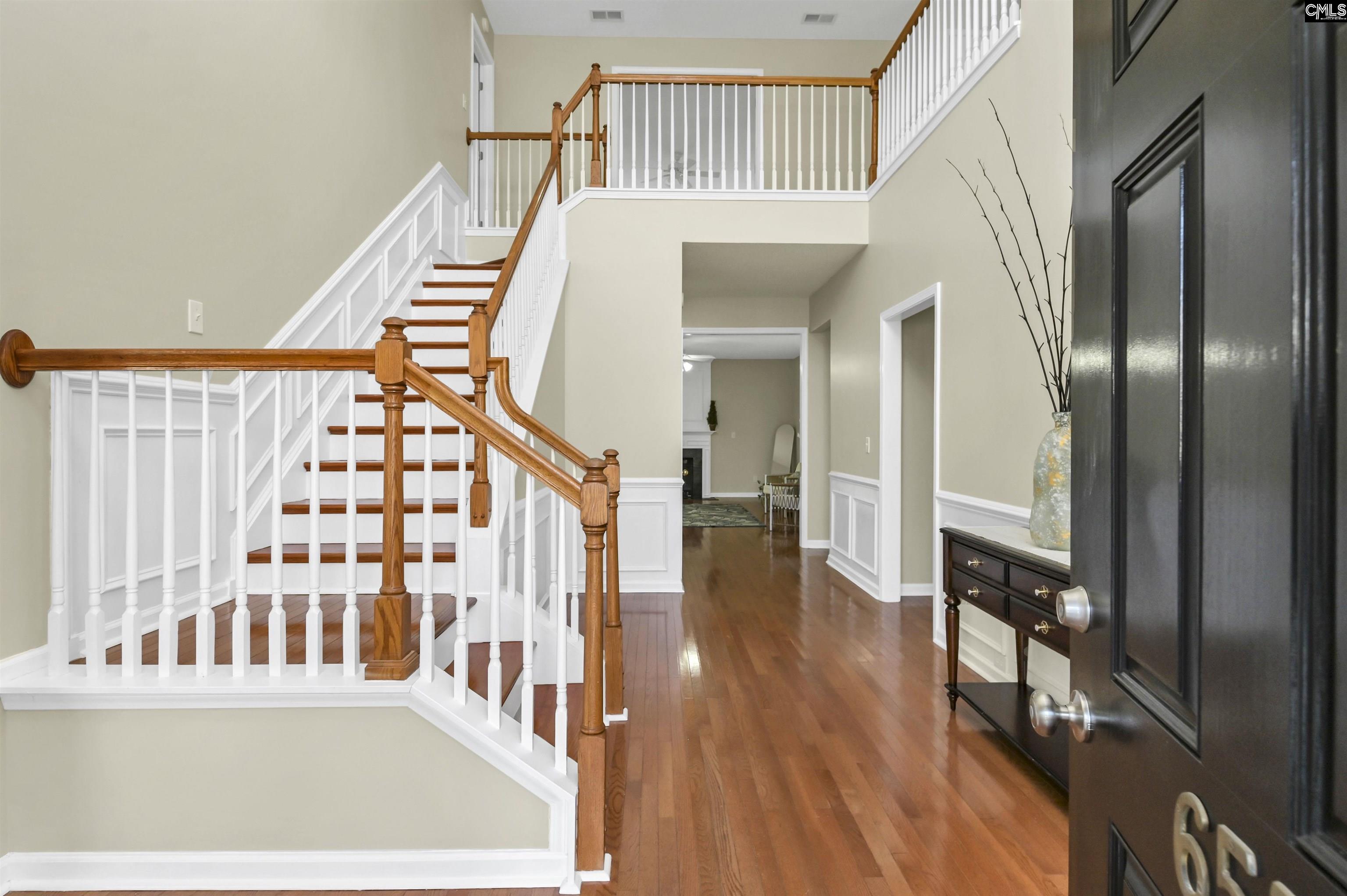 Discover exceptional space, comfort, and privacy in this beautifully maintained home on a quiet ½-acre cul-de-sac lot in highly regarded Lexington/Richland District 5! With 4 bedrooms, 3.5 baths, a large bonus room, sunroom, and multiple flex spaces, this home offers abundant room to live, work, and relax.A soaring 2-story foyer with white wainscoting sets the tone, leading to a formal living room (ideal as an office) and a formal dining room with double French doors and transom windows. The main level features hardwood floors throughout the primary living areas with durable new LVT tile in the kitchen, sunroom and laundry. Fresh neutral interior paint gives the entire home a crisp, move-in ready feel.The spacious family room includes a gas-log fireplace while the bright eat-in kitchen impresses with a vaulted ceiling, bar seating, new single bowl stainless-steel sink and faucet, abundant cabinets, expansive counters, walk-in pantry, and brand new Whirlpool stainless appliances: built-in microwave, smooth-top stove, dishwasher, and refrigerator. French doors open to the new inviting screened porch (2025) and expansive, freshly stained deck overlooking a private wooded forest with no neighbors behind!The main-level primary suite offers brand new carpet, a tray ceiling, garden tub, separate shower, dual vanities with makeup area, water closet, huge walk-in closet, and new LVT flooring in the bathroom.Upstairs you’ll find new carpet in all areas plus three additional bedrooms—one with a private bath and two bedrooms connected by a Jack-and-Jill bath. The large bonus room provides excellent flexible space for recreation, media, fitness, or hobbies.Outdoors, the fenced backyard (only 1 year old) includes walk-through and drive-through gates, a six-seater gazebo swing, firepit area, and yard space extending past the fence into a peaceful natural setting. The tall crawlspace with door provides outstanding storage options!Additional features include: new irrigation control panel with Wi-Fi, new Wi-Fi garage door opener, full gutters, extended driveway, roof (2025), HVACs (upstairs 2020; downstairs 2022), and newer water heater. Community pool included! Disclaimer: CMLS