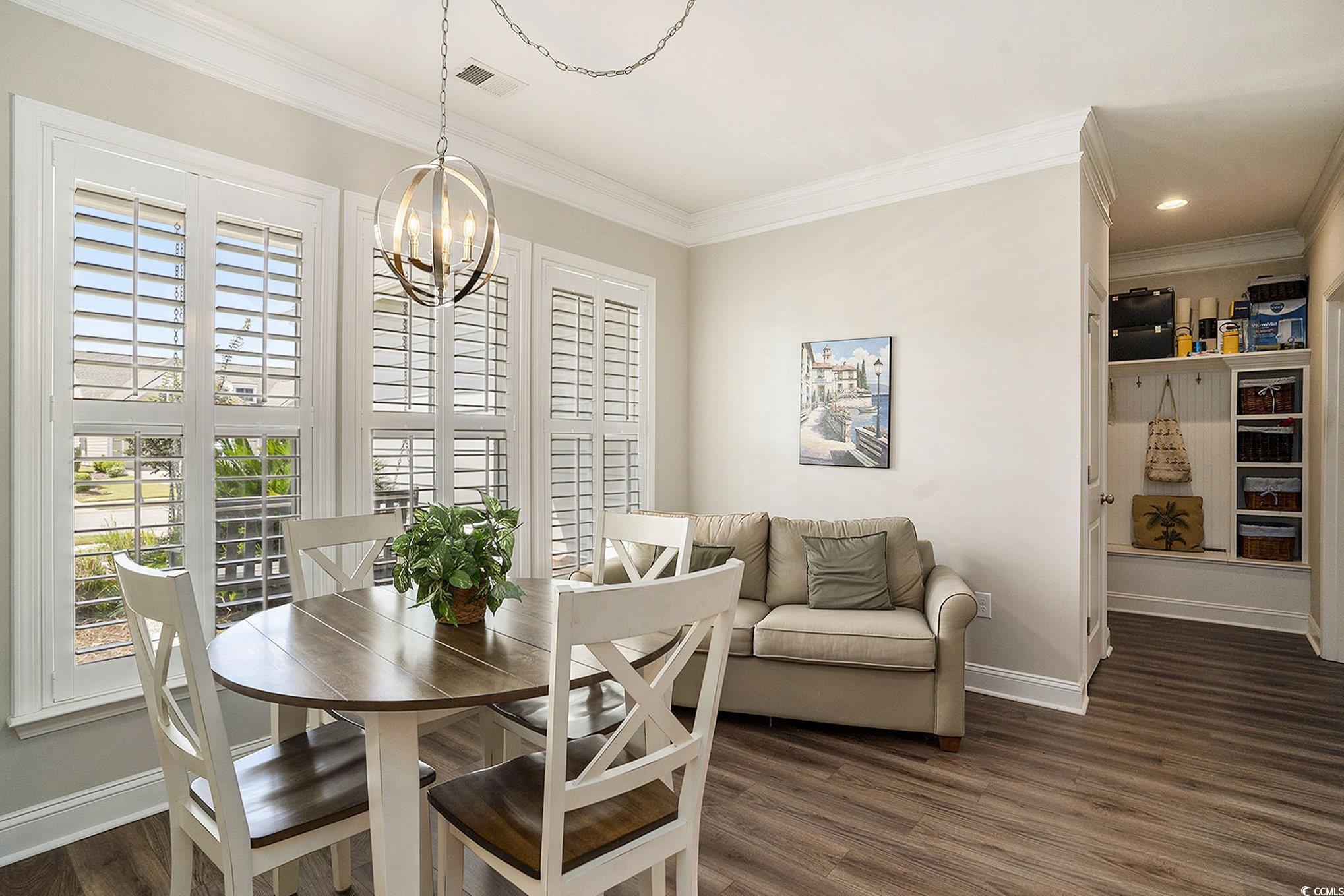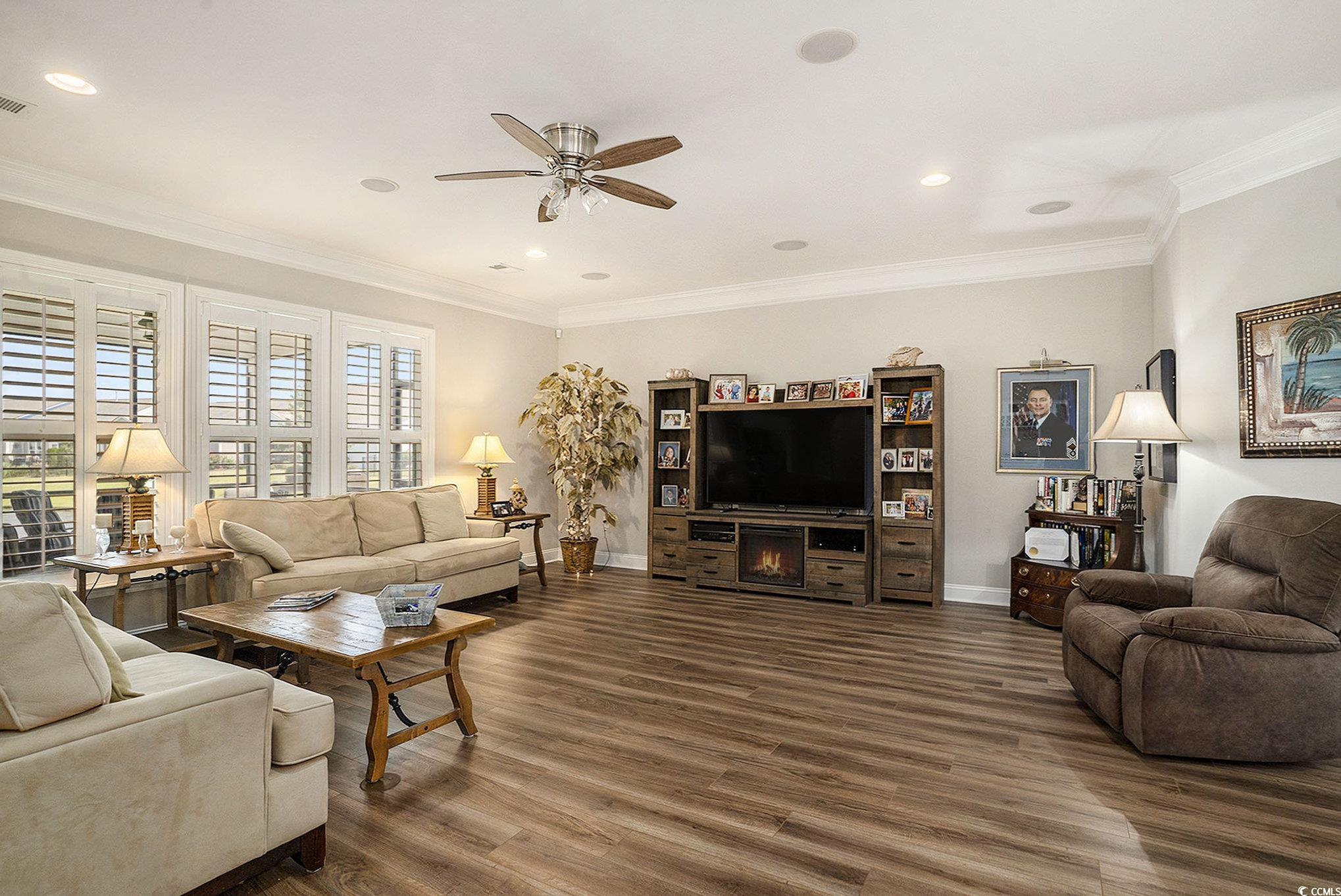 Welcome to 6586 Brindisi Street – Your Dream Home at the beach! Located in the heart of Myrtle Beach within the highly desirable Grande Dunes Del Webb 55+ community, this meticulously maintained pond-side home is packed with premium upgrades and thoughtful design features throughout. Step inside to find elegant touches like wide baseboards, crown molding, wainscoting, custom shades at the sliding doors and plantation shutters and LVP flooring throughout the entire home.The floor plan includes a spacious gourmet kitchen with walk-in pantry, a functional mudroom, a pass-through from the primary suite to the laundry room and a roomy two-car garage with additional storage. Enjoy modern conveniences with a brand-new tankless water heater, built-in speakers, and a CPI security system for peace of mind. The owner’s suite features a walk-in closet, ceiling fan, and a spa-like en-suite bath complete with dual sinks and a spacious beautifully tiled shower. Start your morning with coffee or wind down your day relaxing in your airy screened-in porch or outdoor patio while taking in the tranquil pond view. Enjoy low-maintenance living with HOA-covered lawn care and access to resort-style amenities, including: a beautifully appointed clubhouse, indoor and outdoor pools, hot tub, fitness center, tennis & pickleball courts, private beach club with ocean front swimming and dining, a vibrant calendar of social events, and walking and bike paths throughout throughout the neighborhood and along the intracoastal waterway. Just minutes from top-rated restaurants, shopping, and healthcare facilities, Del Webb at Myrtle Beach offers not just a home—but a lifestyle. Don’t miss your opportunity to live in one of the area’s most sought-after communities. Schedule your private showing today!