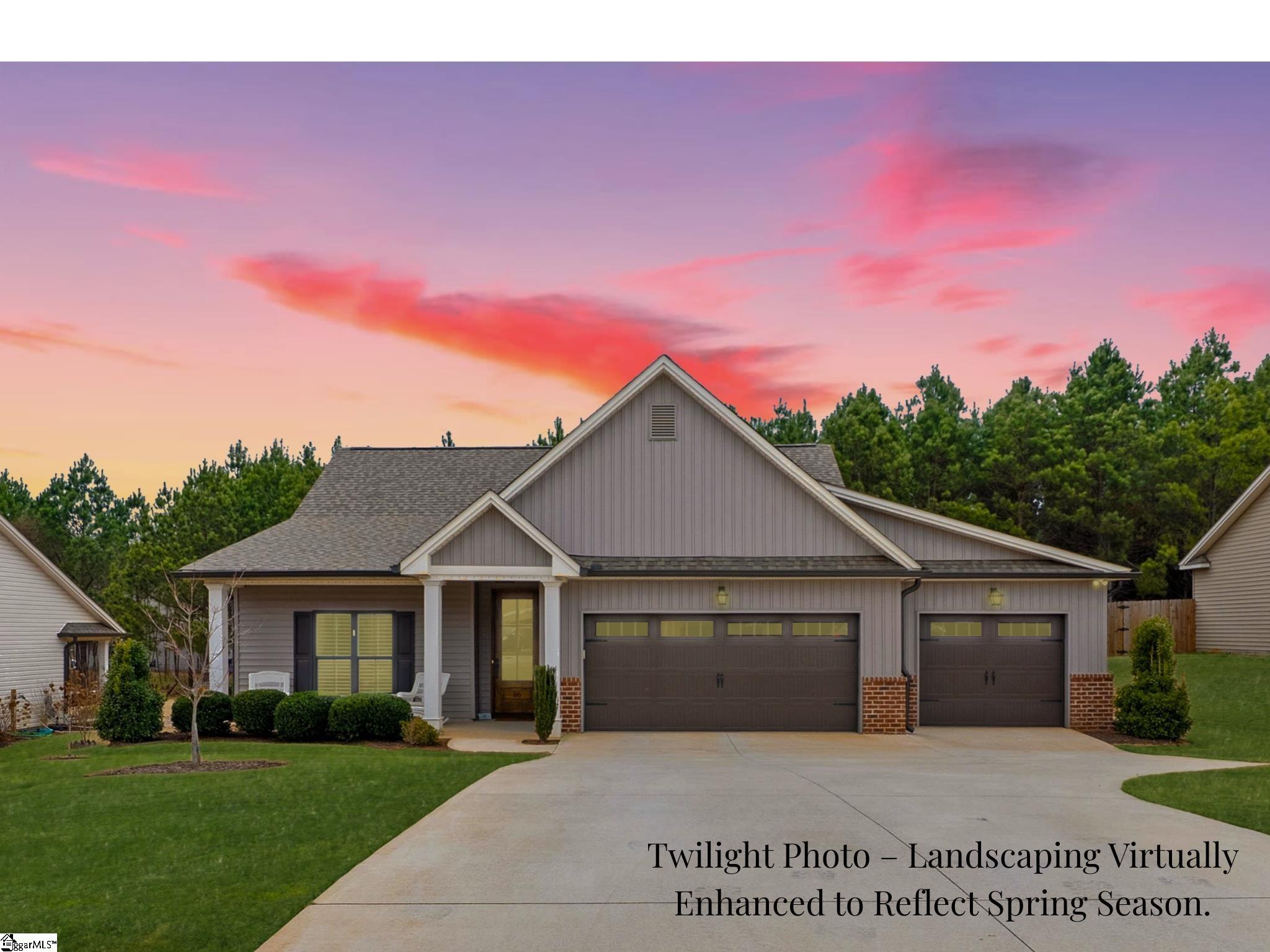 Nestled into what was once an old tree farm, this home enjoys a tree-lined backdrop, privacy behind the property, and no immediate rear neighbors. It’s a peaceful setting that’s becoming increasingly rare, offering space to breathe and a sense of calm the moment you arrive. Inside, the open layout is designed to feel light and expansive, with nine-foot ceilings and a vaulted main living area that sets the tone. The great room centers around a gas fireplace with shiplap detail, crown molding, recessed lighting, and pre-wiring for a wall-mounted TV. Plantation shutters throughout the home allow natural light while preserving privacy, and ceiling fans in every bedroom and living space provide year-round comfort. The primary suite is thoughtfully located on its own side of the home, creating a true sense of separation from the additional bedrooms. It features a tray ceiling, ceiling fan, walk-in closet, and an ensuite bath with double vanities, a soaking tub, and a separate shower. Each secondary bedroom also includes a walk-in closet, offering flexibility and storage. ?The covered patio with a ceiling fan, overlooking a flat, usable backyard framed by mature pines. The space is ideal for outdoor living, pets, play, or future enhancements. A standout feature is the oversized third-car garage bay, perfect for a golf cart, workshop, hobby area, or additional storage. Built by a respected local builder known for upgrades beyond the typical price point, this home includes LOW-E energy-efficient windows, architectural shingles, upgraded hardware and lighting, and a high-end heat pump. Conveniently positioned near Greenville, Easley, and Anderson, Pelzer continues to gain momentum for its affordability, community atmosphere, and economic growth. With current property taxes at just $2,366.90, this home offers meaningful long-term savings. Additional reductions may be available through Anderson County legal residence and homestead exemption programs, subject to county guidelines. Buyers are encouraged to confirm details directly with the Anderson County tax office. This property also qualifies for USDA 100?% financing. Schedule your showing today and see how effortlessly this home supports your next chapter.
