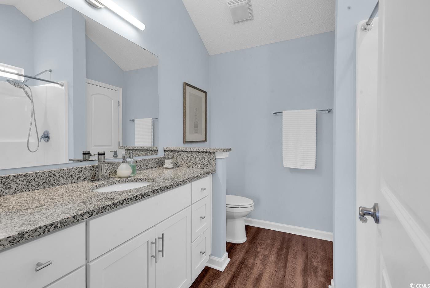 Beautiful Archway floor plan by Flagship Construction features a single level home with 3 Bedrooms, two bathrooms, screened porch, and a two-car garage in The Village at Palmetto Greens in Longs, SC. Home is immucalate, light and bright with beautiful, soothing colors and custom light fixtures/faucets. Low maintenance luxury vinyl flooring throughout and NO carpet. New HVAC unit in 2025 and a smart, programmable thermostat to ensure energy efficiency. Desirable open concept living area features soaring 13 foot vaulted ceilings and a transom window above the front door, so room feels much larger - very bright and spacious. Beautiful white cabinetry in kitchen, granite countertops, a new garbage disposal, pantry, and Frigidaire stainless steel appliances, including the French door refrigerator. Breakfast bar and bay window in the breakfast nook adds additional lighting/openness. Primary bedroom is very relaxing- features a tray ceiling and a spacious walk-in closet. Primary bathroom is light and bright with a transom window over the shower, corner seat in shower, granite countertop vanity, linen closet, and a knee wall providing separation from the toilet. Desirable split level floor plan gives everyone privacy. Second bedroom has vaulted ceilings for a spacious feel. The second bathroom features a transom window, granite countertop, and shower with a corner seat. Ceiling fans are in ALL bedrooms and the living room. Screened porch is perfect for relaxing or entertaining outdoors. Patio provides a space for grilling or relaxing in the Carolina sunshine. Cathedral style interior doors, neutral luxury vinyl flooring, white cabinetry, granite and sleek faucets throughout the home - every detail was thoughtfully selected. Floor plan was customized to have the washer and dryer inside - just off the garage entrance- with hanging space for laundry along with a storage closet and even a door to close off laundry room from the living area. Washer and dryer both convey. Irrigation system to keep lawn beautiful all year long; gutters were also installed. Pull-down attic space above garage for storing holiday items. Low Homeowner's dues here include trash pick up. You are only minutes to shopping, restuarants, grocery stores, thrift stores, golf courses, and McCleod Hospital. Home may also be sold Partially furnished - ask your agent. This home is a Must See - One owner and better than new- you won't need to do one thing! Can be sold partially furnished. Motivated Seller- Bring Offer.