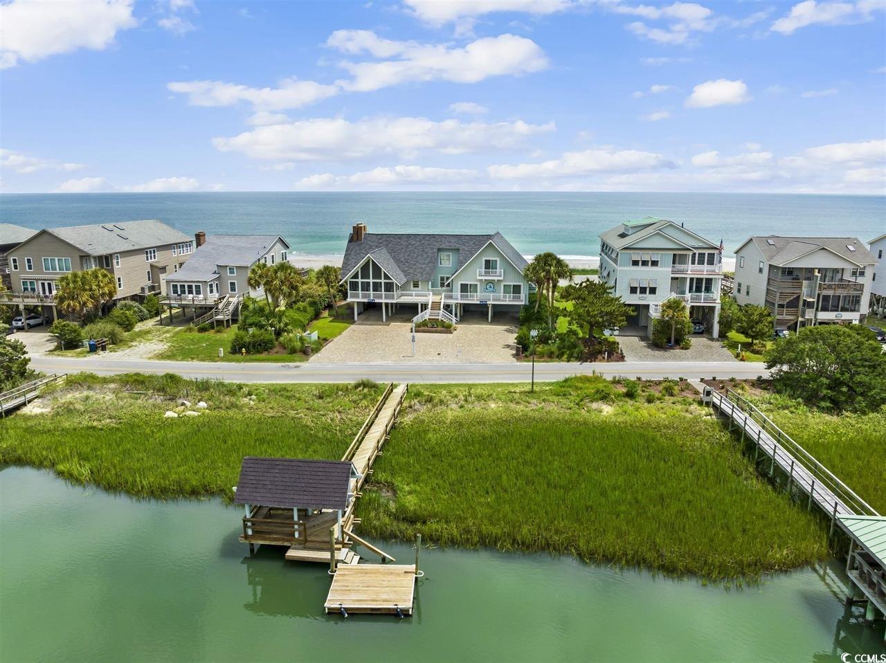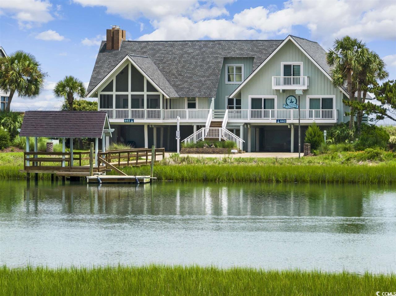 New Price! Don't miss a Rare Opportunity to own one of the Best Homes on Pawleys Island! Situated on one of the few double lots on Pawleys it has views of the Ocean or the Creek from each room. Welcome the day with a Cup of Coffee as you enjoy a Spectacular Morning Sunrise from your rear screened porch and then join friends on the Dockside front porch for a glass of wine and a peaceful Sunset that will become part of your daily ritual. Featuring a short Covered Dock with a Floater; Fishing, Crabbing, Kayaking, Boating, and Paddle Boarding couldn't be any easier! Take a morning stroll on the beach or a refreshing bike ride. Easily drive to two of Pawleys's Island's best local Restaurants; Franks and Chive Blossom by Golf Cart or car. The South End Public Beach access and and boat landings are also less than 1 minute away. Once you enter the property, you'll quickly notice the spacious parking area with 65 feet of new pavers from the street to the under home parking with room for 10 or more cars. An Outdoor grill is located here for your summer BBQ and there is a huge storage area with a sliding door to keep all the toys and supplies you would need. Two entrances on the ground floor greet you where a convenient elevator is waiting to take you, your groceries, and bags to the next two floors of living space. Plenty of room for two families to stay comfortably, as the interior space was made for entertaining large groups. The Kitchen has been upgraded with new Stainless Appliances and Granite counter tops and it opens to the Great Room that is a true work of Art! You'll love hanging out here! It Features a Soaring Vaulted beamed ceiling with a tremendous "One of Kind" hanging Chandelier, over-sized gas fireplace, tons of a natural light, comfy furniture and a a jumbo big screen TV. Did I mention the home is being sold furnished so it's turn key and ready to be a fantastic Rental or Permanent Beach home. Guests will enjoy having their own Bathroom with 4 BR's on the main level and 2 on the upper level. The Laundry room is located on the main level and a cool Loft area is on the upper floor that could be an office, game room, or additional bunk room. New Bedding, & New flooring though out, as well as High Impact Sliding Doors. The Master Bath has been totally updated and so much more. The Back deck of the home is huge and it's just a few steps to one of the most relaxing beaches in all of SC. You and your guests will make memories to last a lifetime, so see it today and start living the Pawleys Island Beach Life !