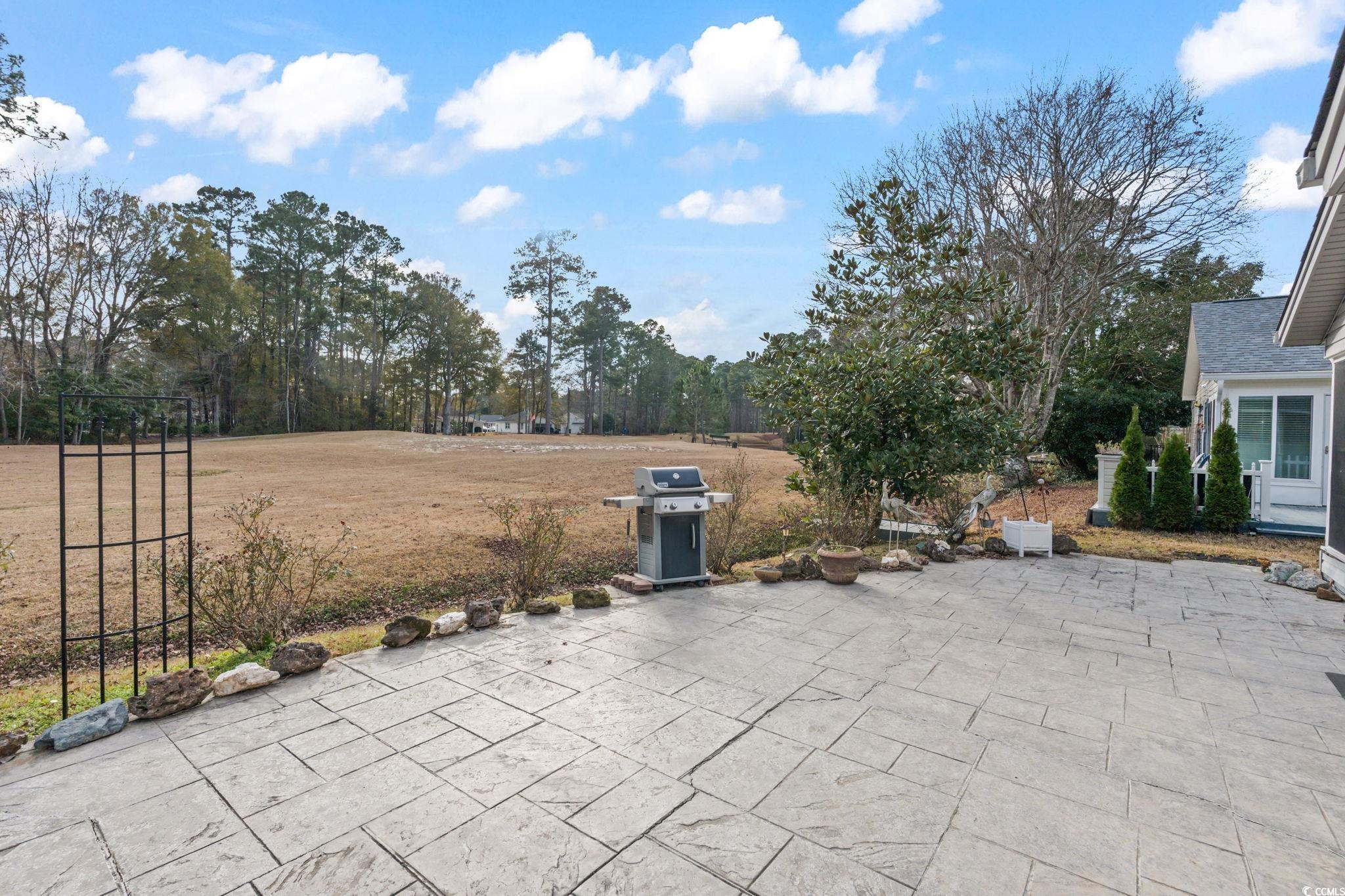 Discover coastal living at its best in the highly sought-after Myrtle Beach Golf & Yacht Club! Nestled at the curve of a cul-de-sac in this gated community, this charming 3-bed, 2-bath single-level home blends privacy, comfort, and convenience in one beautiful package. Enjoy peaceful mornings and relaxing evenings on the screened-in porch and back patio overlooking expansive green space, a tranquil pond, and the former golf course, perfect for leisurely walks and endless views with no homes directly behind you. Inside, the oversized living room feels bright and inviting with vaulted ceilings, skylight, updated flooring, a cozy fireplace, and a wall of natural light leading to the porch. The layout flows effortlessly into the dining area and kitchen, where you'll find upgraded countertops, stainless steel appliances, a breakfast bar, and plenty of workspace for cooking and entertaining. The primary suite is a true retreat, offering private access to the screened porch, vaulted ceilings, skylight, walk-in closet, and an updated on-suite bath featuring a beautifully designed new shower. Two additional bedrooms provide flexibility for guests, an office, or hobbies, plus there's a detached storage building for all your beach and garden gear. Residents enjoy resort-style amenities including a community pool, tennis courts, clubhouse, and boat/RV storage. All of this, just minutes from beaches, golf, shopping, dining, and everything Myrtle Beach has to offer. Experience the perfect blend of lifestyle, location, and low-maintenance living, welcome home!