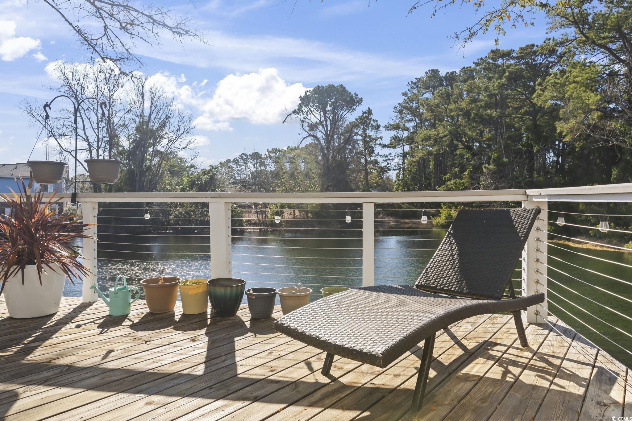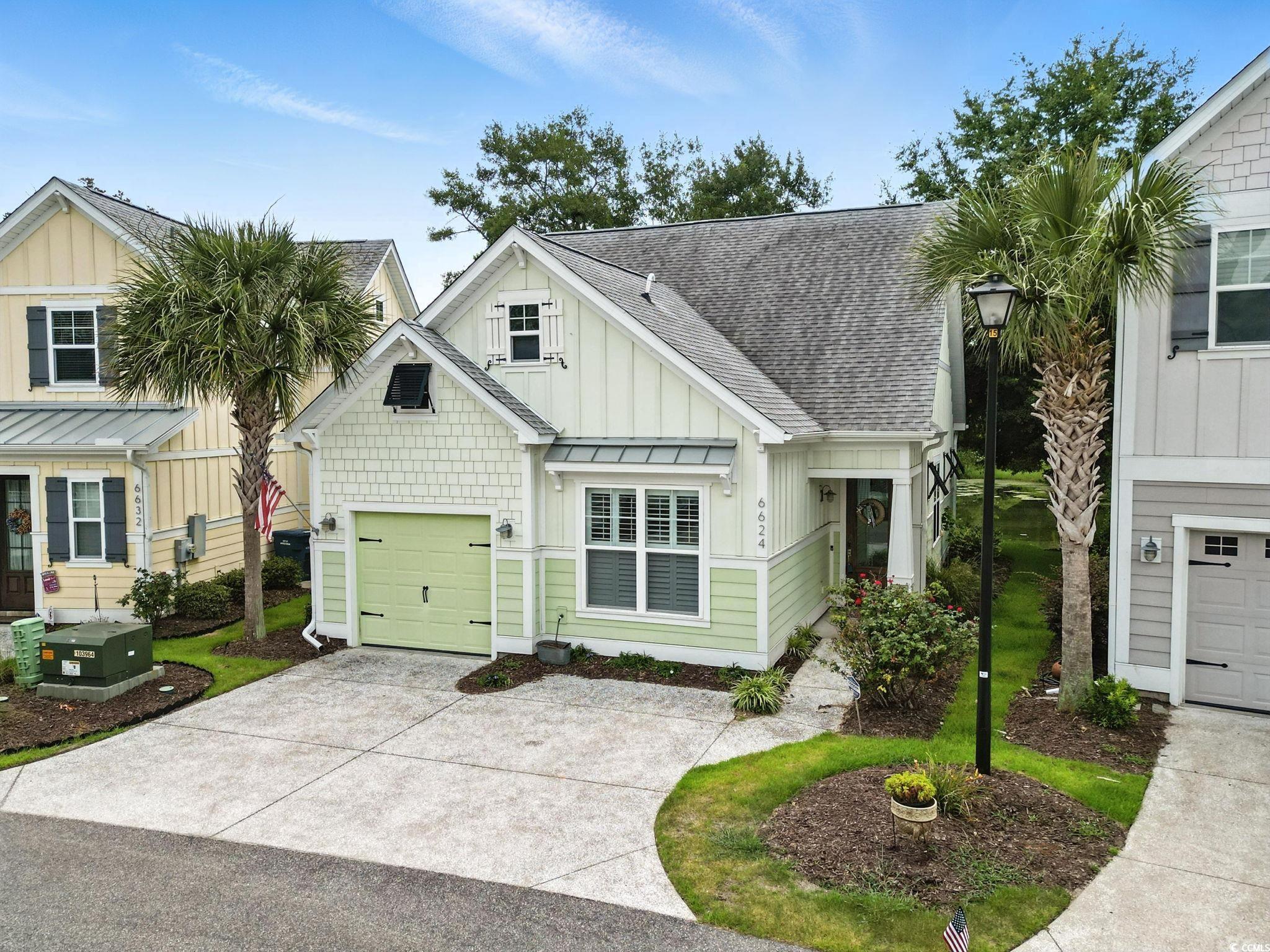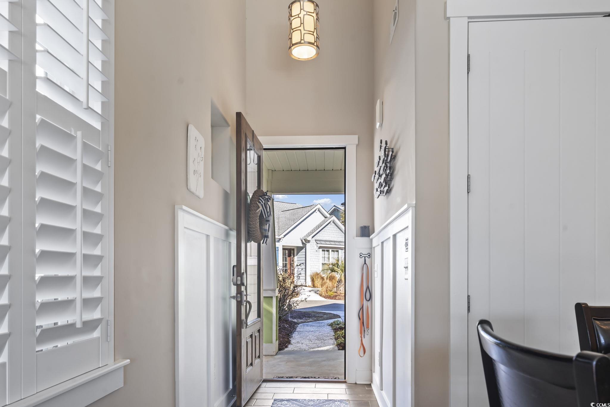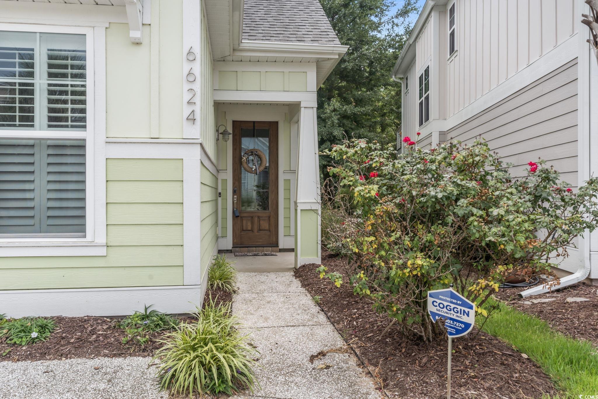 Welcome home to coastal luxury in a gated community that's just 650 yards from the Atlantic Ocean! This stunning home is one of just 8 exclusive properties in a private gated community, each one unique in its own way! Situated on a serene lake, it features a 27' x 10' treated wood deck with picturesque water views, as well as access to a community dock perfect for fishing or relaxing. The deck also has a custom remote controlled retractable awning that covers the entire back patio for shade. Inside, the first-floor master bedroom boasts elegant upgrades, including a tray ceiling, crown molding throughout, and a custom-tiled walk-in shower with bench seat in the master bath. The home also offers high-end finishes such as plantation shutters, soaring cathedral ceilings in the living area, custom closet shelving, and 42” wall cabinets in the kitchen. The kitchen is spacious and complemented by stainless steel appliances including a gas range, beautiful tiled backsplash, and luxurious granite countertops. The living room lets in tons of natural light with an oversized sliding glass door that overlooks the lake, enjoy the ease of remote controlled blinds to cover the door or raise them up to take in the views. As a BONUS, upstairs you will find a versatile LOFT space that can be used as a second living area, office, game room, extra sleeping quarters, or a cozy retreat for relaxation. The options are endless! A garage with epoxy flooring and pull down attic storage is great for all of your storage needs. Landscaping is included in the HOA fee for low maintenance ease of living. This move-in-ready home, just steps away from the beach and close to restaurants, shopping, dining and more, won’t last long—schedule your showing today before it’s gone!