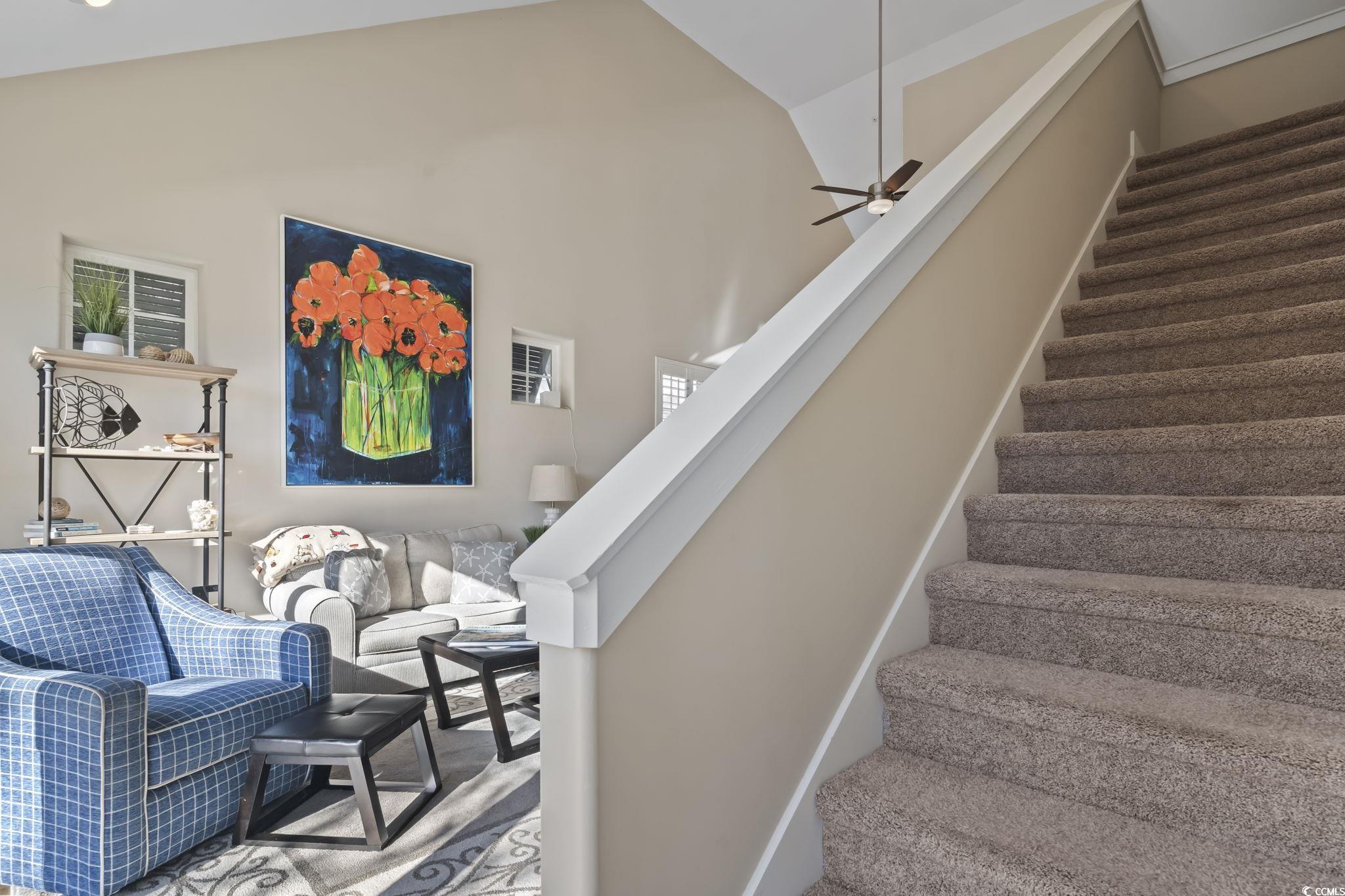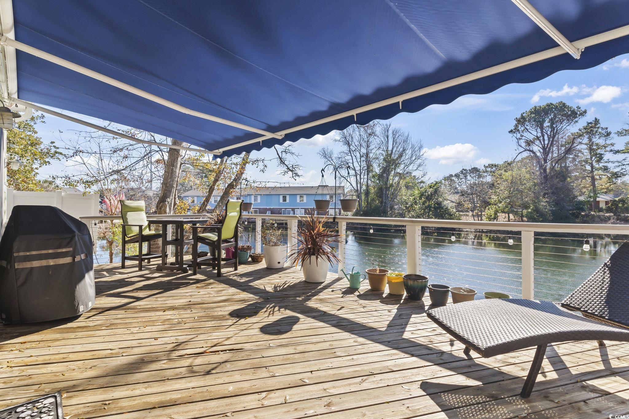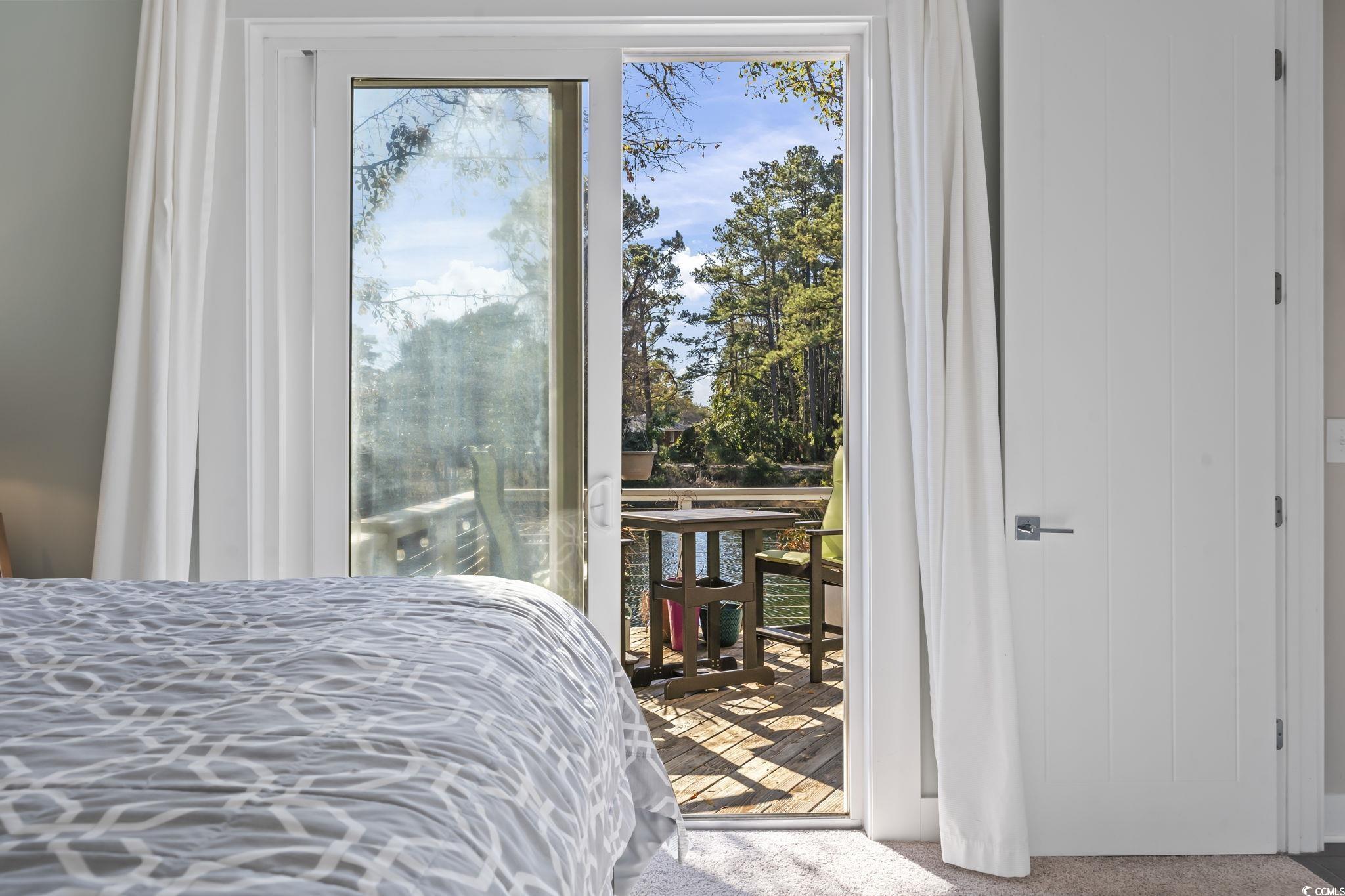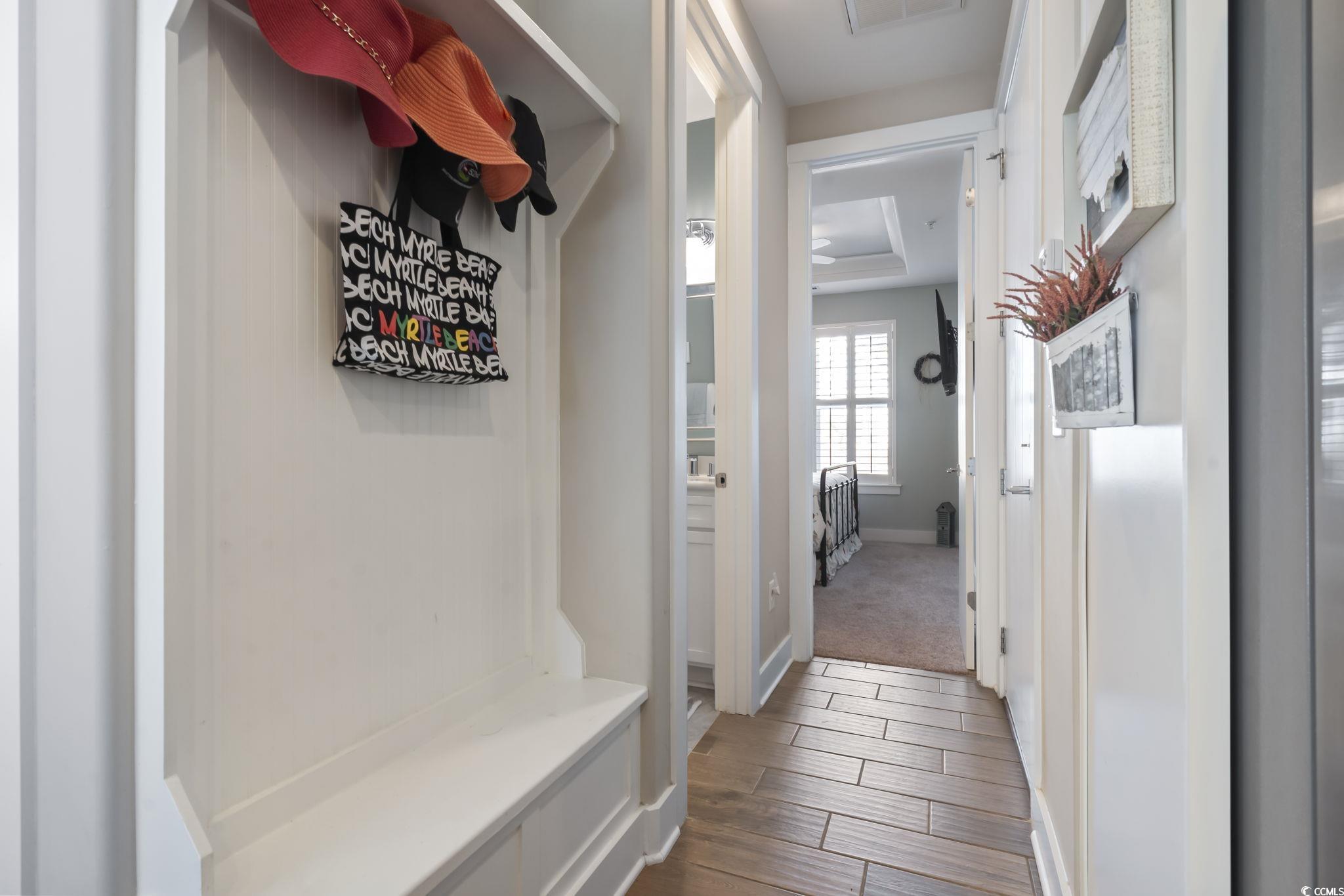 Welcome home to coastal luxury in a gated community that's just 650 yards from the Atlantic Ocean! This stunning home is one of just 8 exclusive properties in a private gated community, each one unique in its own way! Situated on a serene lake, it features a 27' x 10' treated wood deck with picturesque water views, as well as access to a community dock perfect for fishing or relaxing. The deck also has a custom remote controlled retractable awning that covers the entire back patio for shade. Inside, the first-floor master bedroom boasts elegant upgrades, including a tray ceiling, crown molding throughout, and a custom-tiled walk-in shower with bench seat in the master bath. The home also offers high-end finishes such as plantation shutters, soaring cathedral ceilings in the living area, custom closet shelving, and 42” wall cabinets in the kitchen. The kitchen is spacious and complemented by stainless steel appliances including a gas range, beautiful tiled backsplash, and luxurious granite countertops. The living room lets in tons of natural light with an oversized sliding glass door that overlooks the lake, enjoy the ease of remote controlled blinds to cover the door or raise them up to take in the views. As a BONUS, upstairs you will find a versatile LOFT space that can be used as a second living area, office, game room, extra sleeping quarters, or a cozy retreat for relaxation. The options are endless! A garage with epoxy flooring and pull down attic storage is great for all of your storage needs. Landscaping is included in the HOA fee for low maintenance ease of living. This move-in-ready home, just steps away from the beach and close to restaurants, shopping, dining and more, won’t last long—schedule your showing today before it’s gone!