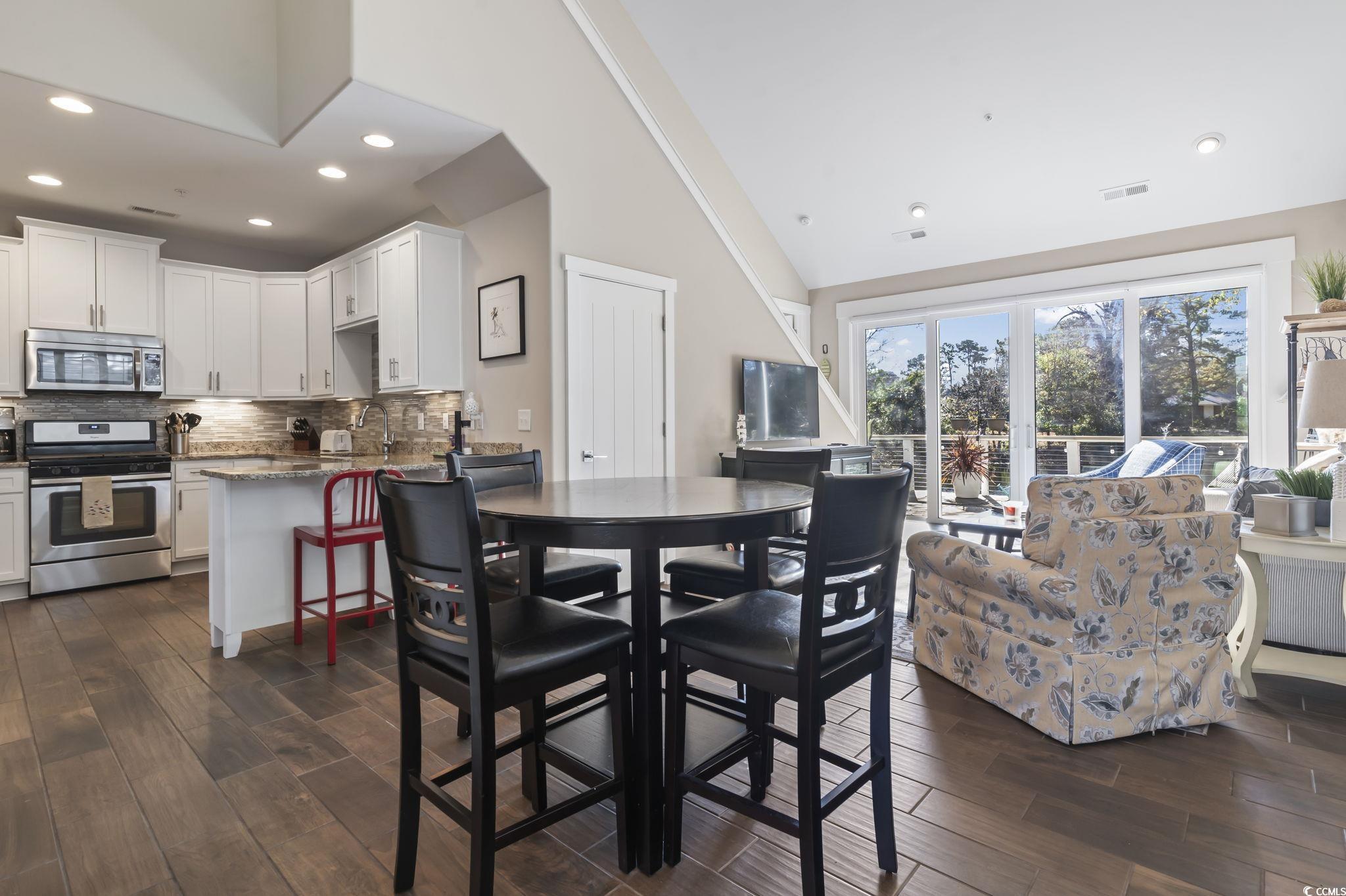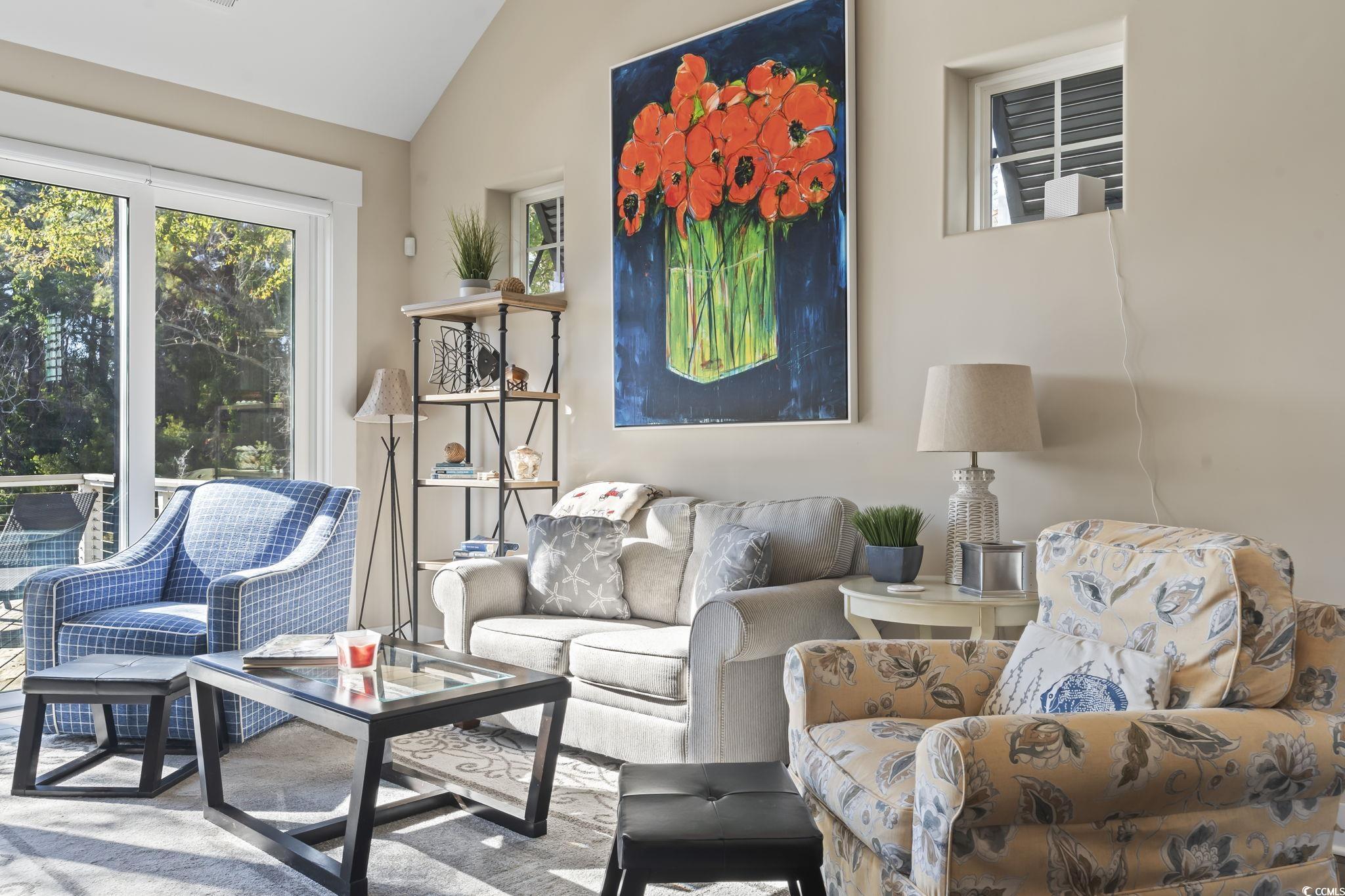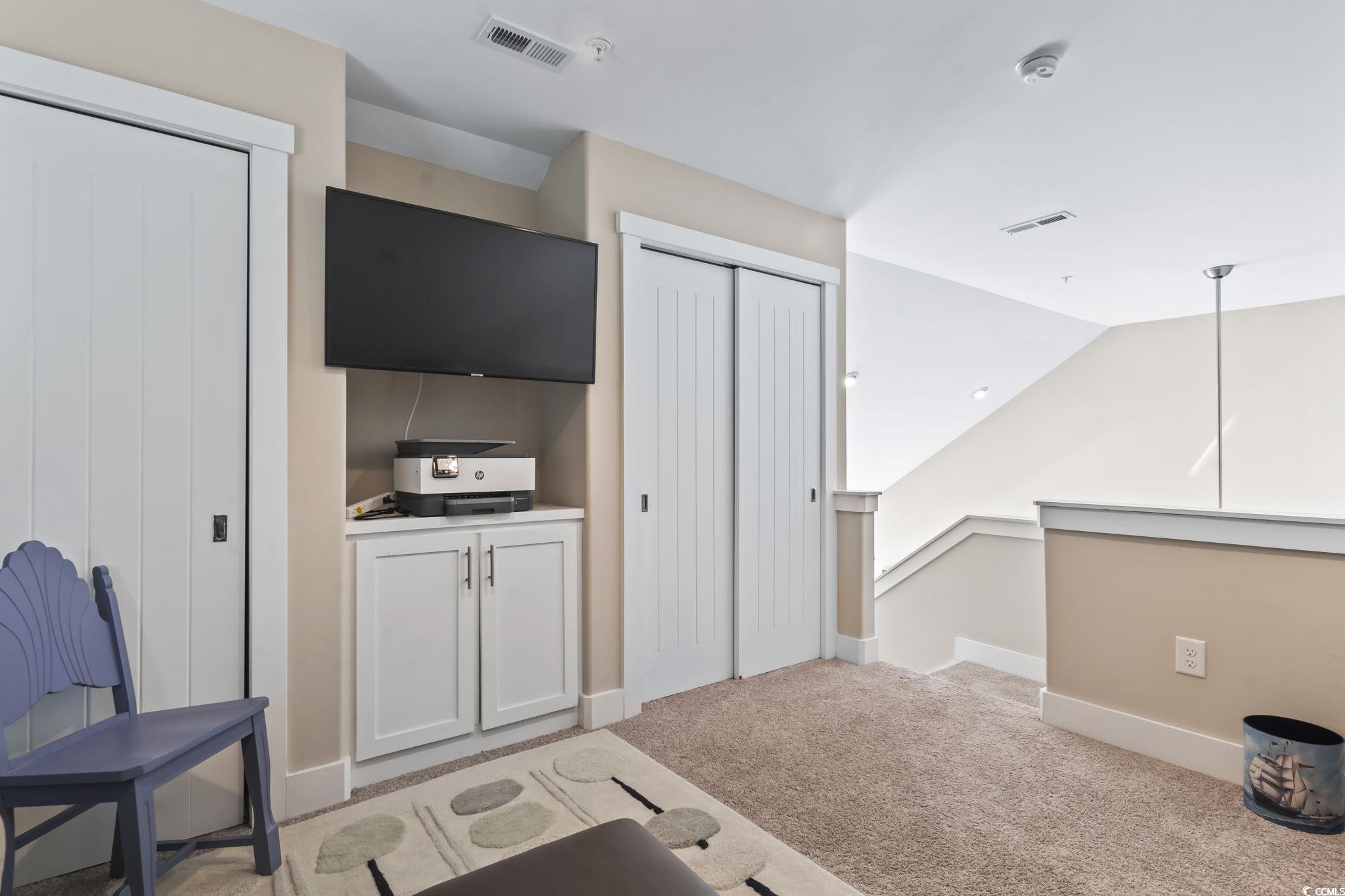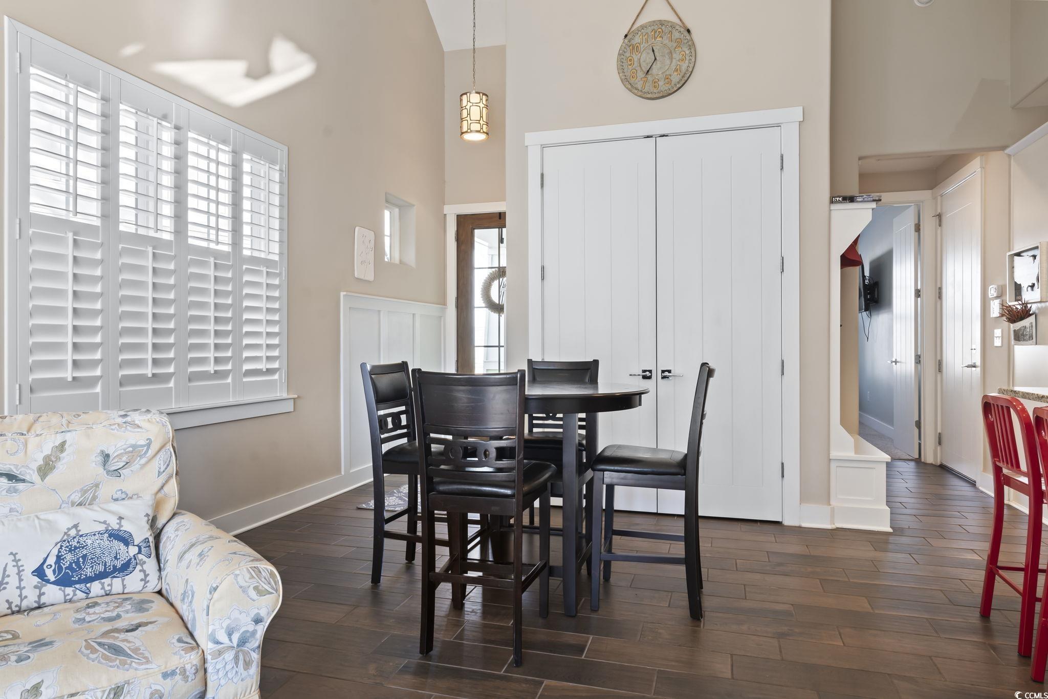 Welcome home to coastal luxury in a gated community that's just 650 yards from the Atlantic Ocean! This stunning home is one of just 8 exclusive properties in a private gated community, each one unique in its own way! Situated on a serene lake, it features a 27' x 10' treated wood deck with picturesque water views, as well as access to a community dock perfect for fishing or relaxing. The deck also has a custom remote controlled retractable awning that covers the entire back patio for shade. Inside, the first-floor master bedroom boasts elegant upgrades, including a tray ceiling, crown molding throughout, and a custom-tiled walk-in shower with bench seat in the master bath. The home also offers high-end finishes such as plantation shutters, soaring cathedral ceilings in the living area, custom closet shelving, and 42” wall cabinets in the kitchen. The kitchen is spacious and complemented by stainless steel appliances including a gas range, beautiful tiled backsplash, and luxurious granite countertops. The living room lets in tons of natural light with an oversized sliding glass door that overlooks the lake, enjoy the ease of remote controlled blinds to cover the door or raise them up to take in the views. As a BONUS, upstairs you will find a versatile LOFT space that can be used as a second living area, office, game room, extra sleeping quarters, or a cozy retreat for relaxation. The options are endless! A garage with epoxy flooring and pull down attic storage is great for all of your storage needs. Landscaping is included in the HOA fee for low maintenance ease of living. This move-in-ready home, just steps away from the beach and close to restaurants, shopping, dining and more, won’t last long—schedule your showing today before it’s gone!