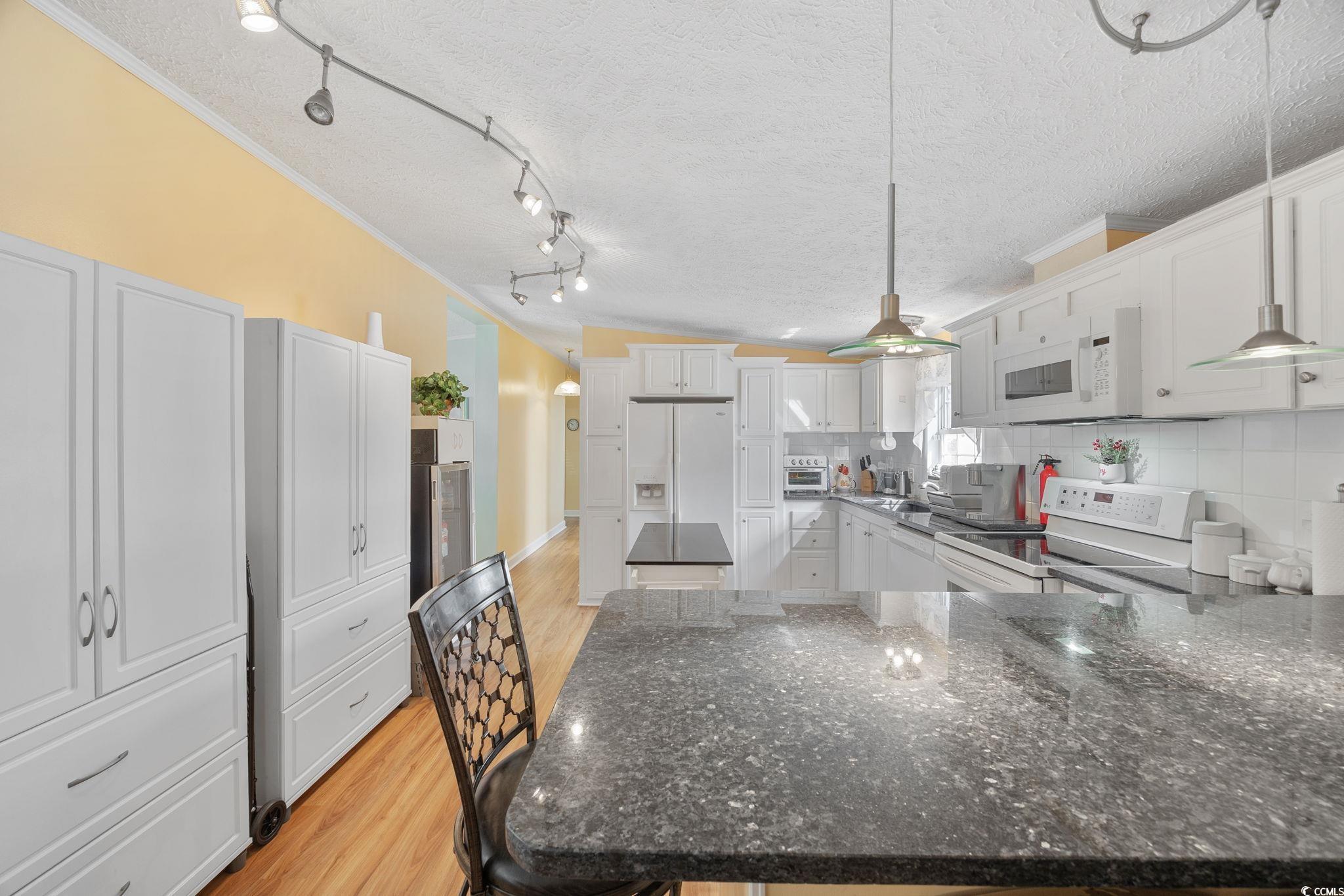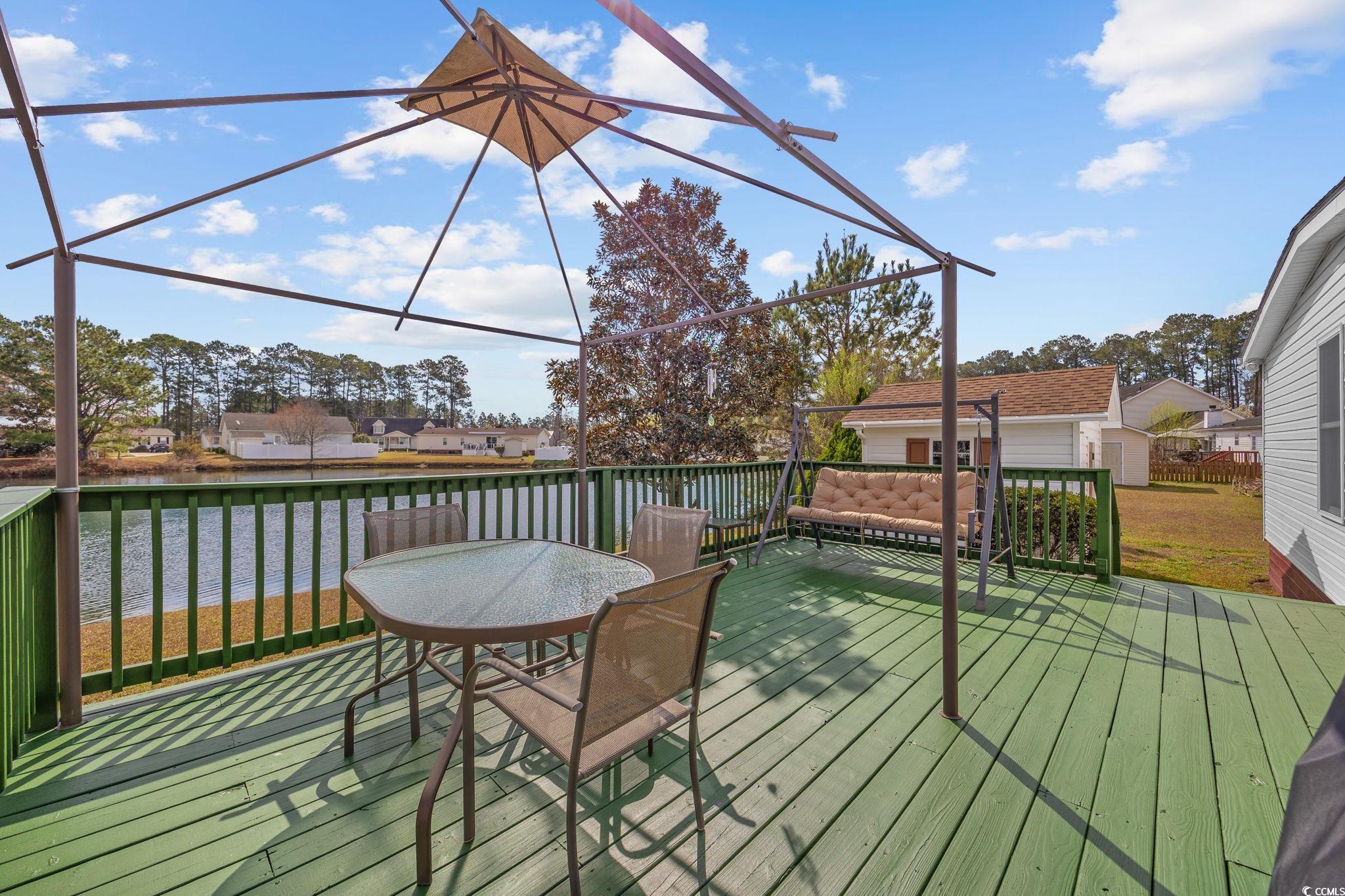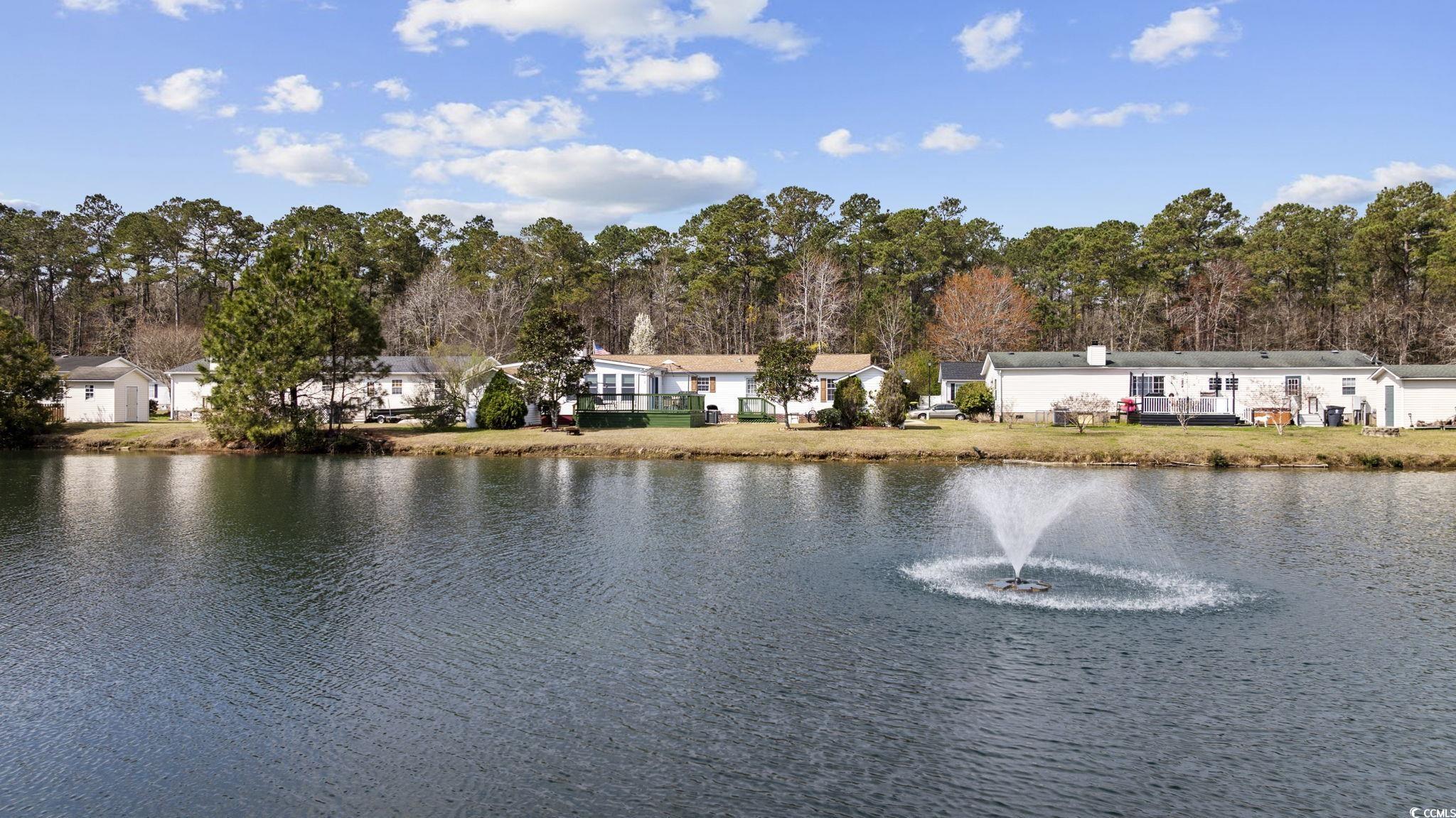 Enjoy peaceful living by the lake in this beautiful and spacious 4 bedroom, 2 bath double-wide manufactured home. The home welcomes you with a large handicap accessible ramp that can be removed if needed. Inside you will find a traditional layout including a formal dining room and den with plenty of room for entertaining guests. The gorgeous kitchen showcases granite counter tops, new appliances, and newly added additional cabinet space. There is new vinyl flooring throughout main part of house. The large master bedroom includes a walk-in closet and the master bath boasts both a shower and a relaxing garden tub. There is a spacious bonus room (27x14) near the back of the home which provides extra versatility, while the family room’s gas fireplace creates a cozy atmosphere. There is a laundry room for added convenience. Enjoy your nights sitting on the large deck (20x15) overlooking a beautiful lake. There are 2 detached storage buildings on concrete foundations with electricity in the backyard (each 10x9). The extended driveway accommodates parking for up to 6 cars and an RV, with 120-volt RV outlet in the extended driveway. Outdoor furniture, a dining room table in the sunroom, and built-in-style cabinets all convey. This home offers both privacy and a peaceful setting and is located in a community with a pool and playground. There is also free long-term parking near the pool for your RV or boat. This home is conveniently located by Interstate 31, giving easy access to all that Myrtle Beach has to offer. Don't miss this fantastic opportunity for comfortable country living with modern conveniences!