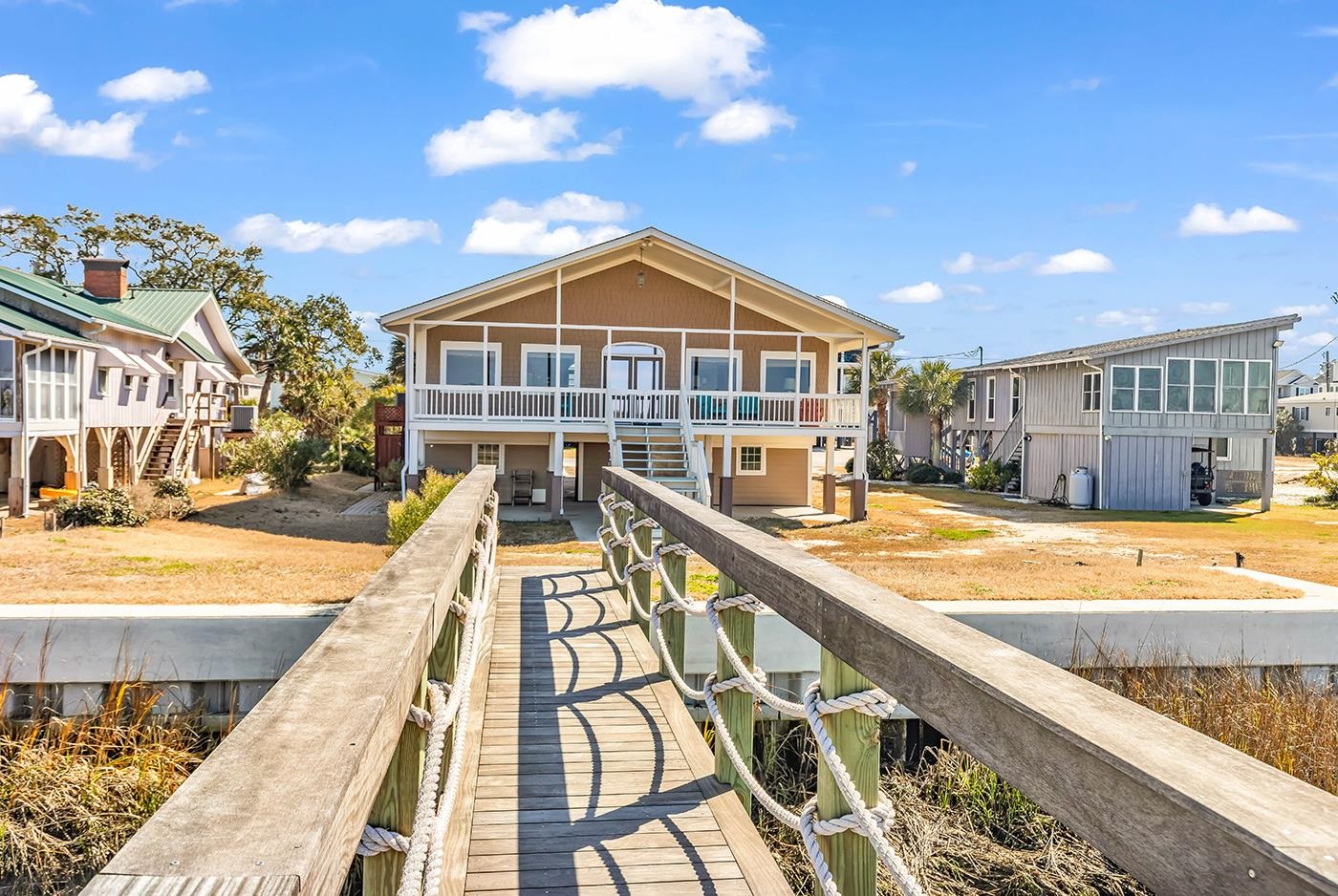 This waterfront home in Garden City Beach offers a rare combination of craftsmanship, durability, and true Lowcountry living. The primary living level features three bedrooms and three full bathrooms, highlighted by custom-designed baths, distinctive Mexican tile flooring, and a recently updated white kitchen that blends modern finishes with the home’s coastal character. Designed with boating in mind, the private dock is a standout feature and one of the most impressive in the area. Constructed with marine-grade treated yellow pine and finished with Cumaru (Brazilian Teak) decking, the dock delivers both strength and a high-end look. A 13,000 lb boat lift is already in place, capable of accommodating a 32-foot Yellowfin, while the dock and covered pavilion are secured using marine-grade 316 stainless steel hardware for long-term performance in a coastal environment. The bulkhead has been reinforced with commercial-grade vinyl sheet pilings and topped with a substantial 22-inch concrete cap, offering added stability and stormwater protection. Attention to detail continues throughout the exterior, where the front porch and entryway are finished with IPE (Brazilian Walnut) decking, known for its durability and rich appearance. The custom Sapele mahogany front door is equipped with hurricane-rated locks, combining craftsmanship with peace of mind. The lower level has been thoughtfully finished with resilient tile, treated plywood, and water-resistant drywall, enhancing the home’s ability to withstand coastal conditions. Set on the banks of Murrells Inlet, often referred to as the “Seafood Capital of South Carolina,” this property offers easy access to some of the best boating, fishing, and dining on the coast. Enjoy quiet mornings watching marsh wildlife from your deck, afternoons on the water, and evenings just a short walk from the beach. Whether you’re searching for a primary residence, second home, or investment opportunity, this property delivers both lifestyle and lasting value in Garden City Beach.