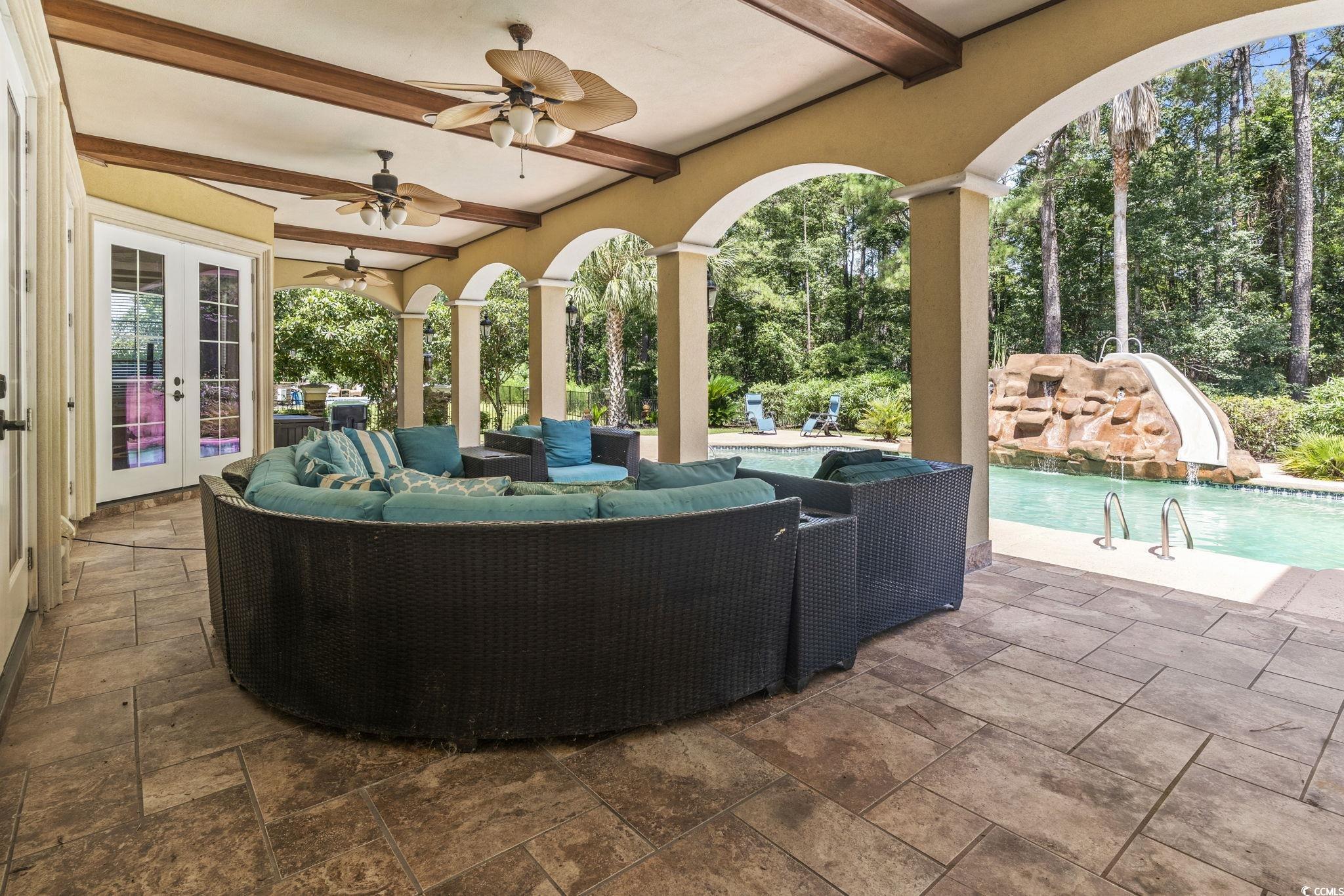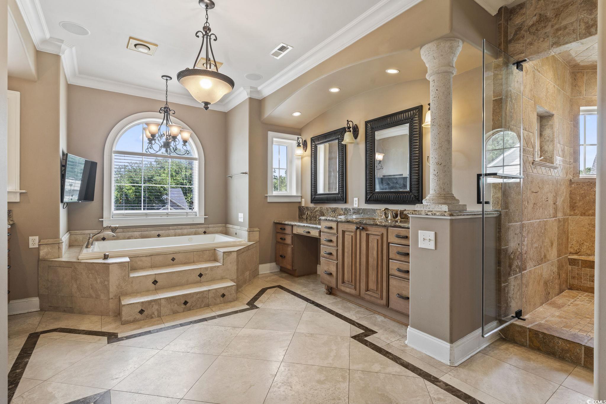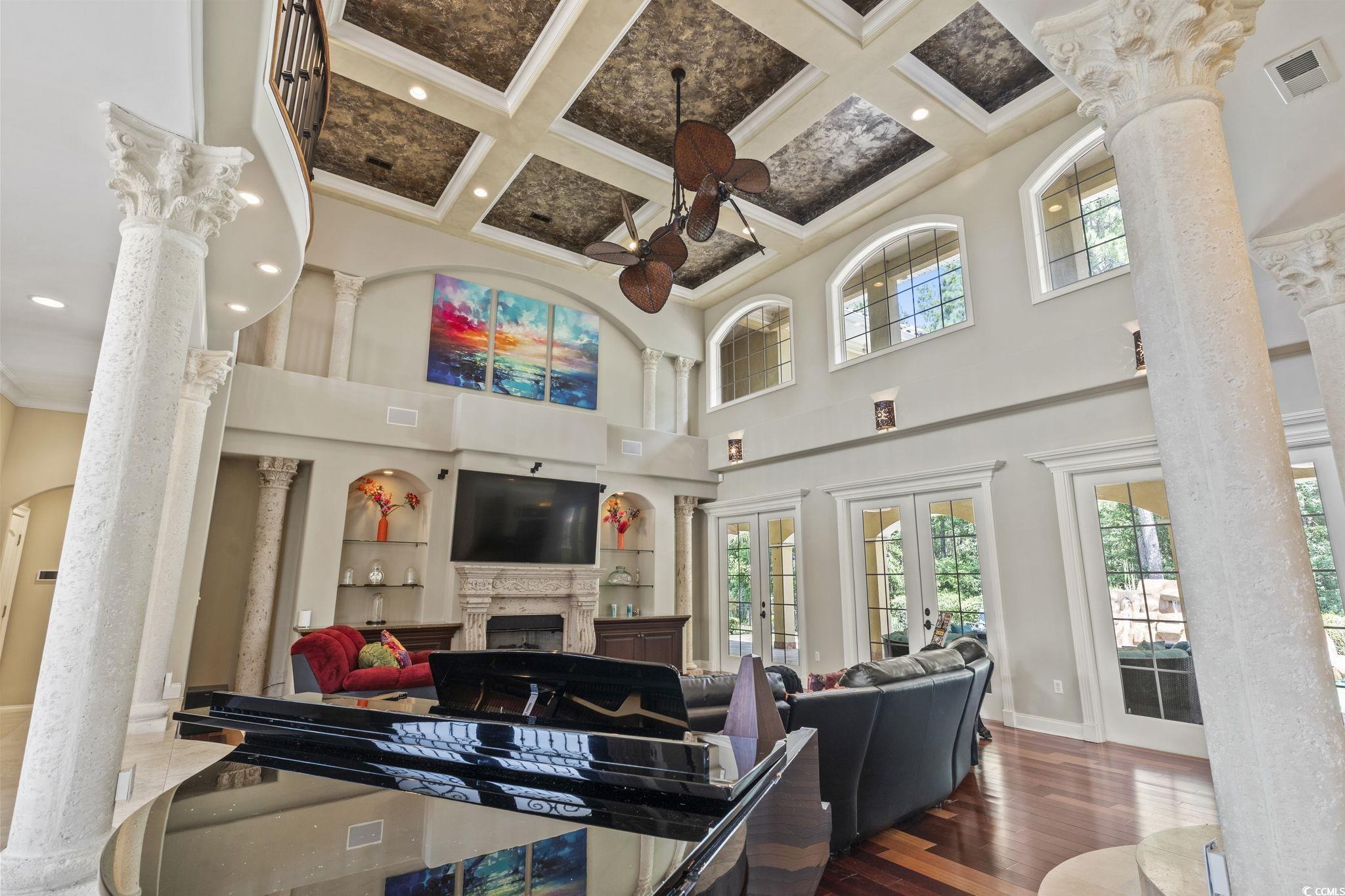 Stunning custom-built Mediterranean masterpiece with 5 bedrooms, 4 full baths, 2 half baths and your own private oasis with a pool and hottub. As you enter this custom-built grand home, you will be greeted with quality and premium upgrades, including Brazilian cherry flooring, stucco accents, and crown molding throughout the home. Huge Family room features a gorgeous coffered ceiling, fireplace and built-in shelving. Kitchen is enormous and boasts a large granite island, stainless steel appliances, and custom built cabinetry which offering tons of cabinet and counter space. Family room is adjacent to the kitchen, offers direct access to the pool and offers plenty of room for entertaining. Also on the first floor is a large guest bedroom with attached full bath which could function as a guest suite of In-Law suite and offers direct access outdoors as well. Upstairs you'll find the master suite, with it's trey ceilings, massive walk in his and her closest and door leading to huge outdoor balcony. Luxurious Master bath features double sinks with granite counters, vanity area, garden tub and spacious walk in shower. There are also 3 very spacious bedrooms upstairs, one with it's own private outdoor balcony. Upstairs area has a massive balcony overlooking the pool and the privacy of the woods behind. Your backyard oasis is very private with fully fenced yard a massive pool with a slide and hot tub. This is your chance to take advantage of all that Plantation Lakes has to offer, lake front living, and world class amenities which includes two large pools, clubhouse for its residents, tennis and basketball court, playground for the kids, and sidewalks throughout the neighborhood. You will be located within a very short drive to tons of shopping, restaurants, grocery stores, the Myrtle Beach International Airport, and best of all approximately 15-20 minutes to the best beaches that Myrtle Beach has to offer. All square footage is approximate and is not guaranteed. Buyer is responsible for verification.