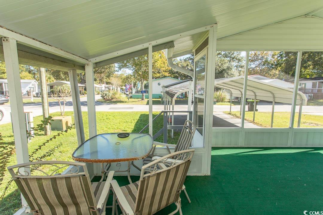 Affordable Coastal Living in a 55+ Community! Enjoy life at the beach in this spacious 2-bedroom, 2-bath home featuring a huge screened-in front and side porch totaling 455 sq. ft. of outdoor living space. Step inside to a flexible bonus room, a split floor plan, and a large kitchen that opens to the family room. Partially furnished with ample storage, including a 14' x 14' shed and plenty of cabinets and closets. Located in the desirable Oceanside Landing 55+ community, enjoy a clubhouse, pool, small dog park, pickleball court, and outdoor gathering areas. With planned social activities and proximity to the MarshWalk, beaches, dining, shopping, and Brookgreen Gardens, this home is perfect for full-time living or a vacation getaway. Priced to sell!