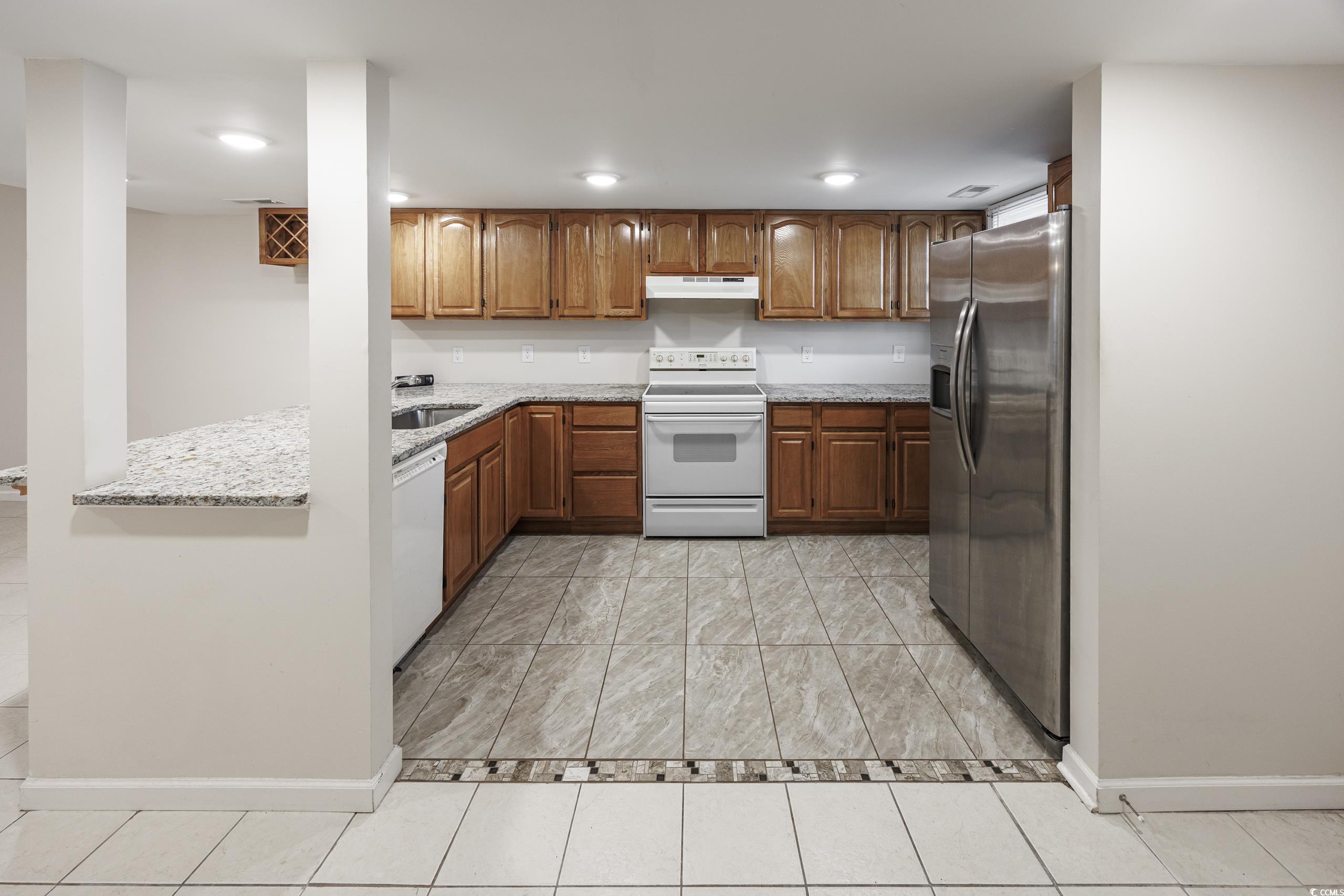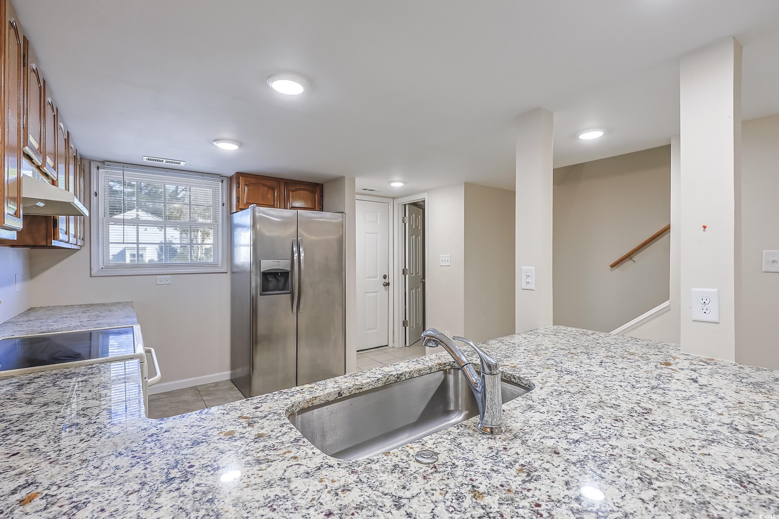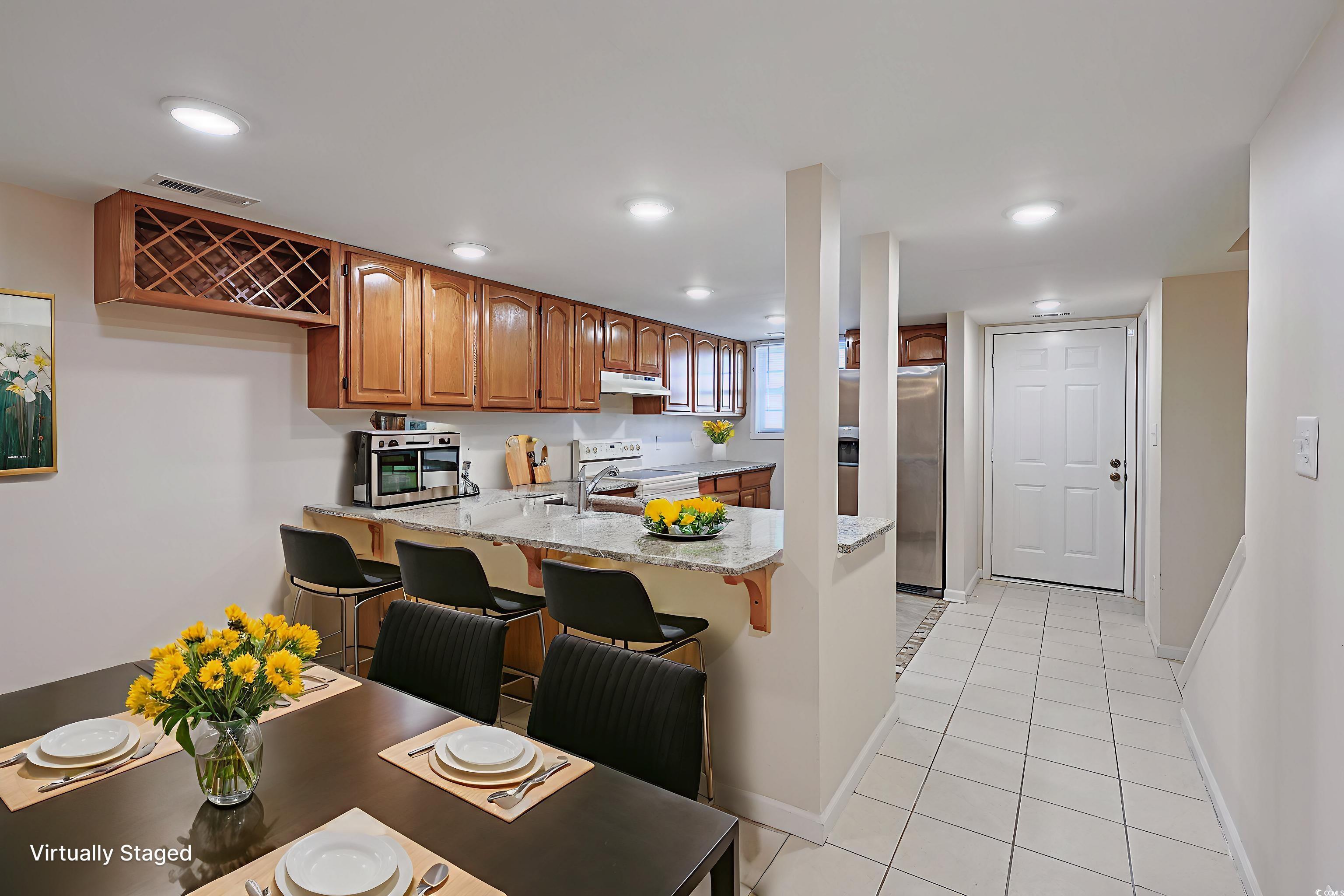 This beautifully updated 2-bedroom, 2.5-bath townhome offers a comfortable and stylish coastal lifestyle just under a mile from the beach. Remodeled in 2019, the unit features fresh paint and a range of modern upgrades. The kitchen boasts granite countertops, a single basin sink, flushmount LED lighting, a large breakfast bar, and custom tile flooring—perfect for both everyday living and entertaining. The open-concept living room includes a cozy woodburning fireplace and connects seamlessly to the kitchen, enhancing the home’s spacious feel. Both bedrooms are generously sized with large closets, ceiling fans, and wood-look laminate flooring. Each bedroom has its own private bathroom with custom tile floors and upgraded plumbing and lighting fixtures. Conveniently located near local schools, shopping, and popular attractions, this move-in-ready condo offers the best of beachside living with modern comfort and style. Do not pass up your chance to own this lovely home, call today to schedule your showing!“Some photos in this listing have been virtually staged.”
