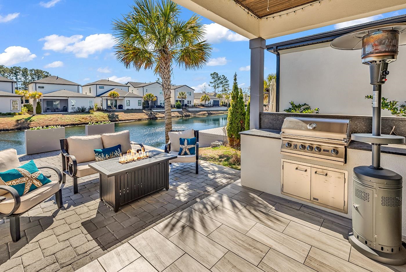 This contemporary home in Myrtle Beach offers clean design and relaxed coastal living in a gated natural gas community east of By-pass Highway 17. The open kitchen and living area provide an easy gathering space, featuring natural gas appliances, streamlined finishes, and a layout suited for both everyday living and entertaining. The primary suite includes a spacious walk-in shower and separation from the secondary bedrooms. A standout feature is the secondary full bath, which incorporates a soaking tub within the walk-in shower — a distinctive and flexible design not often found in comparable homes. A custom built-up rear patio expands the outdoor living space and overlooks the pond, creating a private setting for morning coffee or evening relaxation. This post-construction addition adds meaningful functionality and differentiation within the community. Located just minutes from Myrtle Beach beaches, dining, shopping, golf, and medical facilities, the home offers modern coastal living with practical comfort.