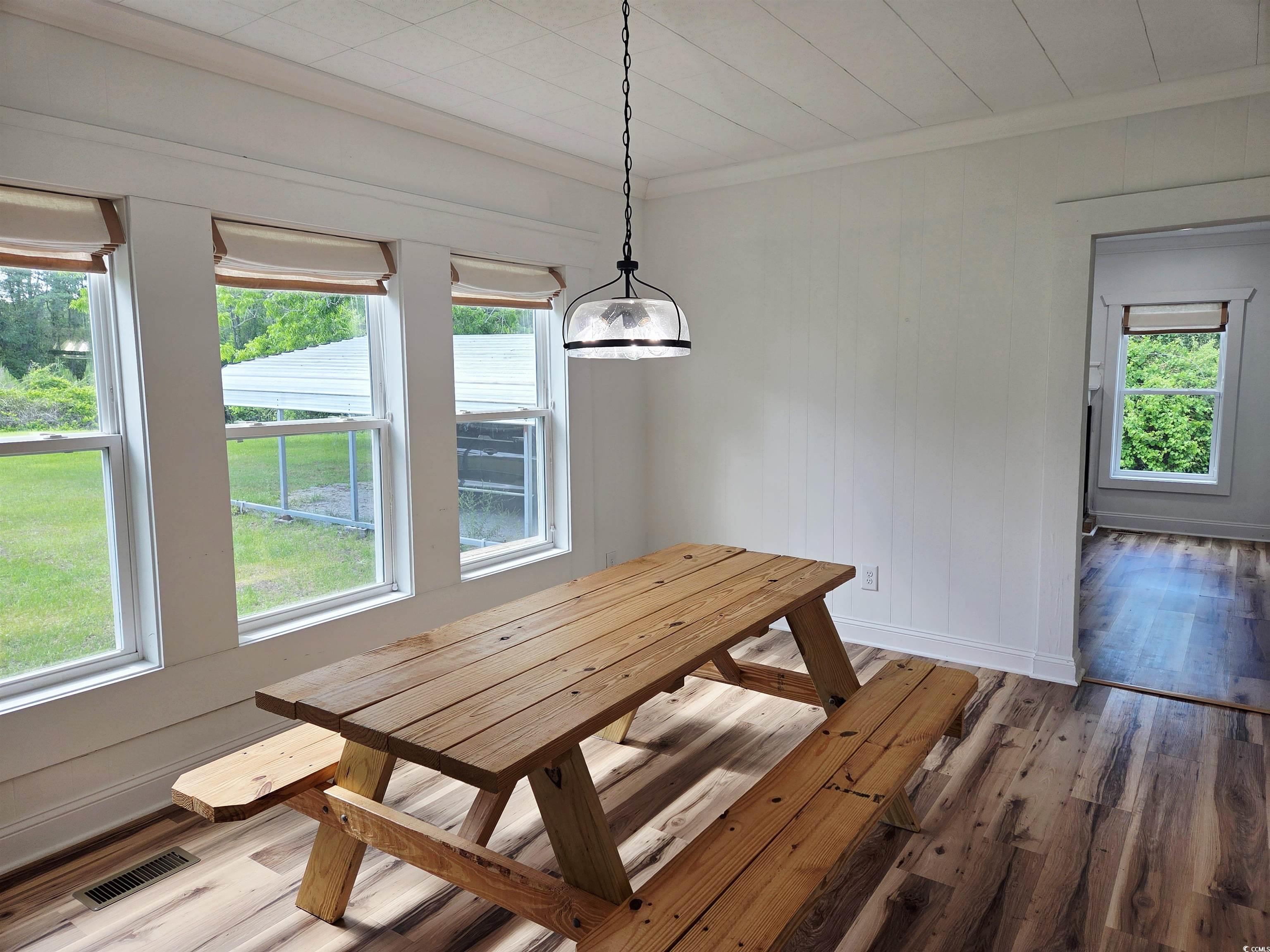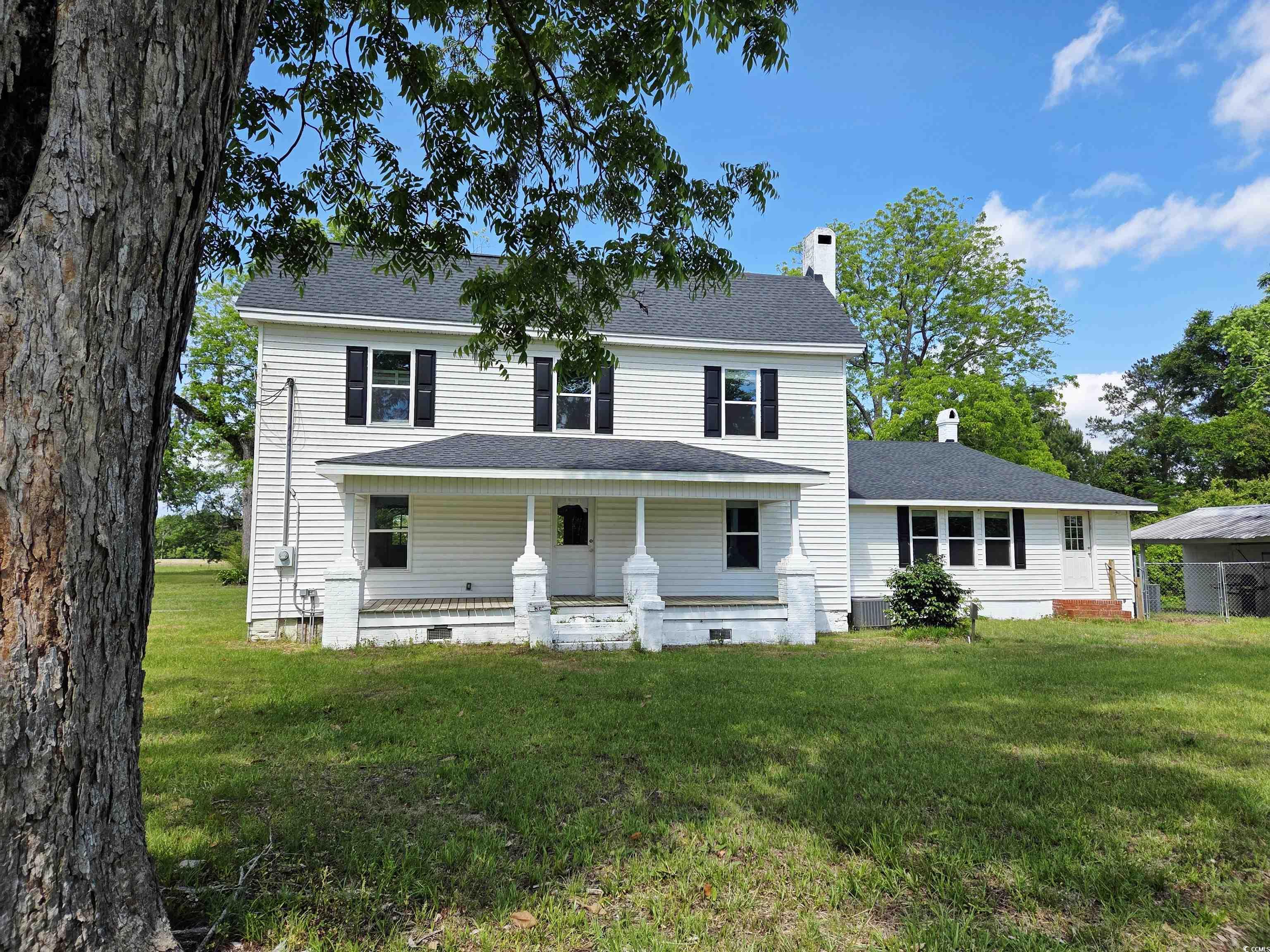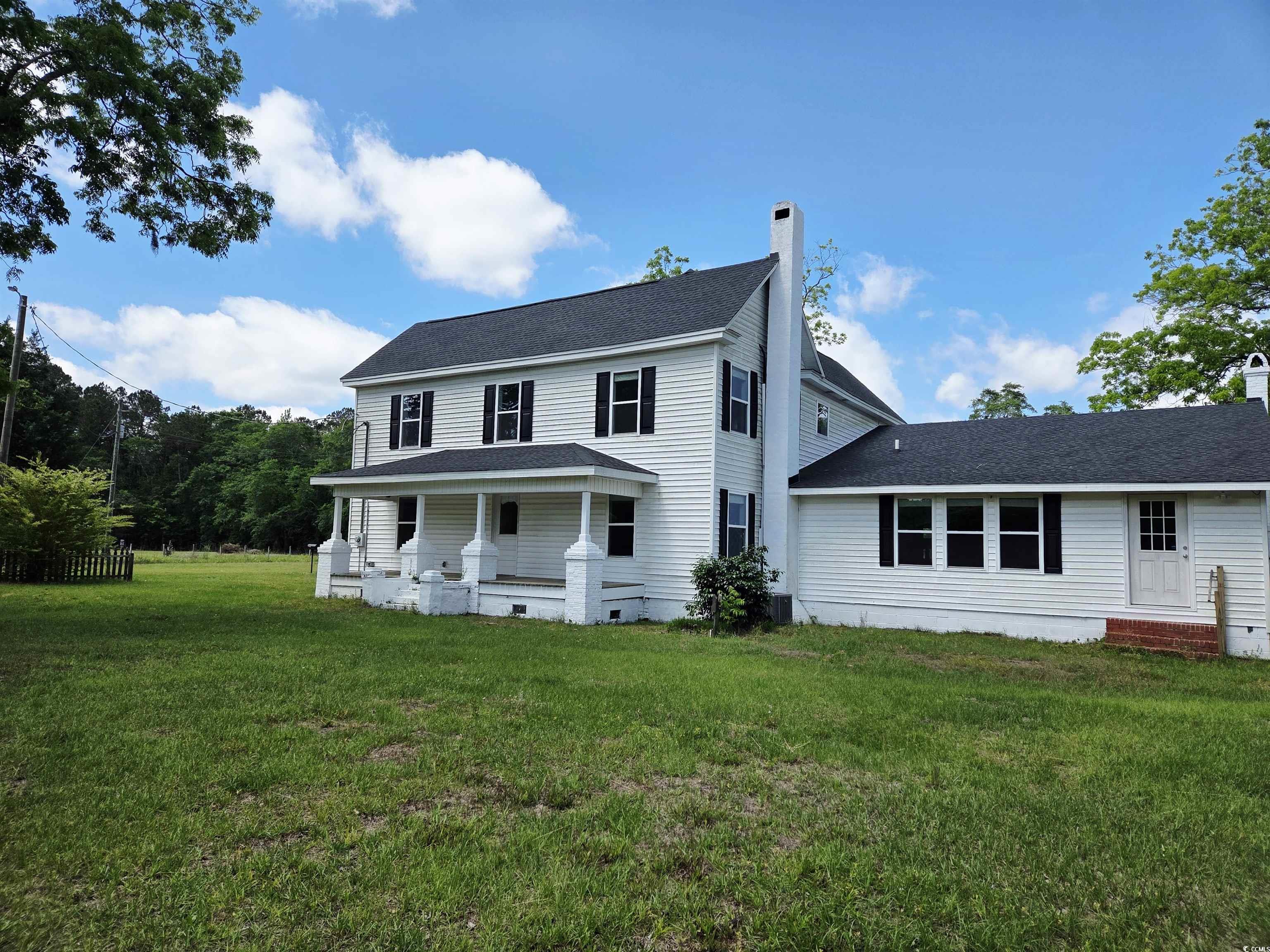 Originally built in 1910, this beautifully restored farmhouse blends timeless charm with modern updates. Set on approximately 2.5 acres, just minutes from downtown Loris and a short drive to Cherry Grove Beach, this historic home has been thoughtfully revitalized while preserving its authentic character. Within the last 4 years, the property has undergone an extensive renovation, including a restructured roof with new shingles, brand-new siding, and updated windows. To meet current codes, the home features all-new electrical wiring, outlets, and lighting, along with a full replacement of the plumbing systems. New insulation has been added throughout much of the home, and where original shiplap could not be saved, sheetrock was carefully installed to maintain the historic aesthetic. The kitchen has been completely redesigned with upgraded soft-close cabinetry, granite countertops, and brand-new appliances. Bathrooms were also fully remodeled, and much of the flooring was replaced to ensure lasting quality and beauty. For safety and compliance, the expansive double-level front porch was fully rebuilt, and several aging barns and trees were removed. The land itself is rich with mature pecan and walnut trees, and the property boasts an open field at the back offering excellent potential for a small hobby farm or private retreat. This special property is a rare find — offering the best of classic farmhouse living with modern conveniences. A true must-see!