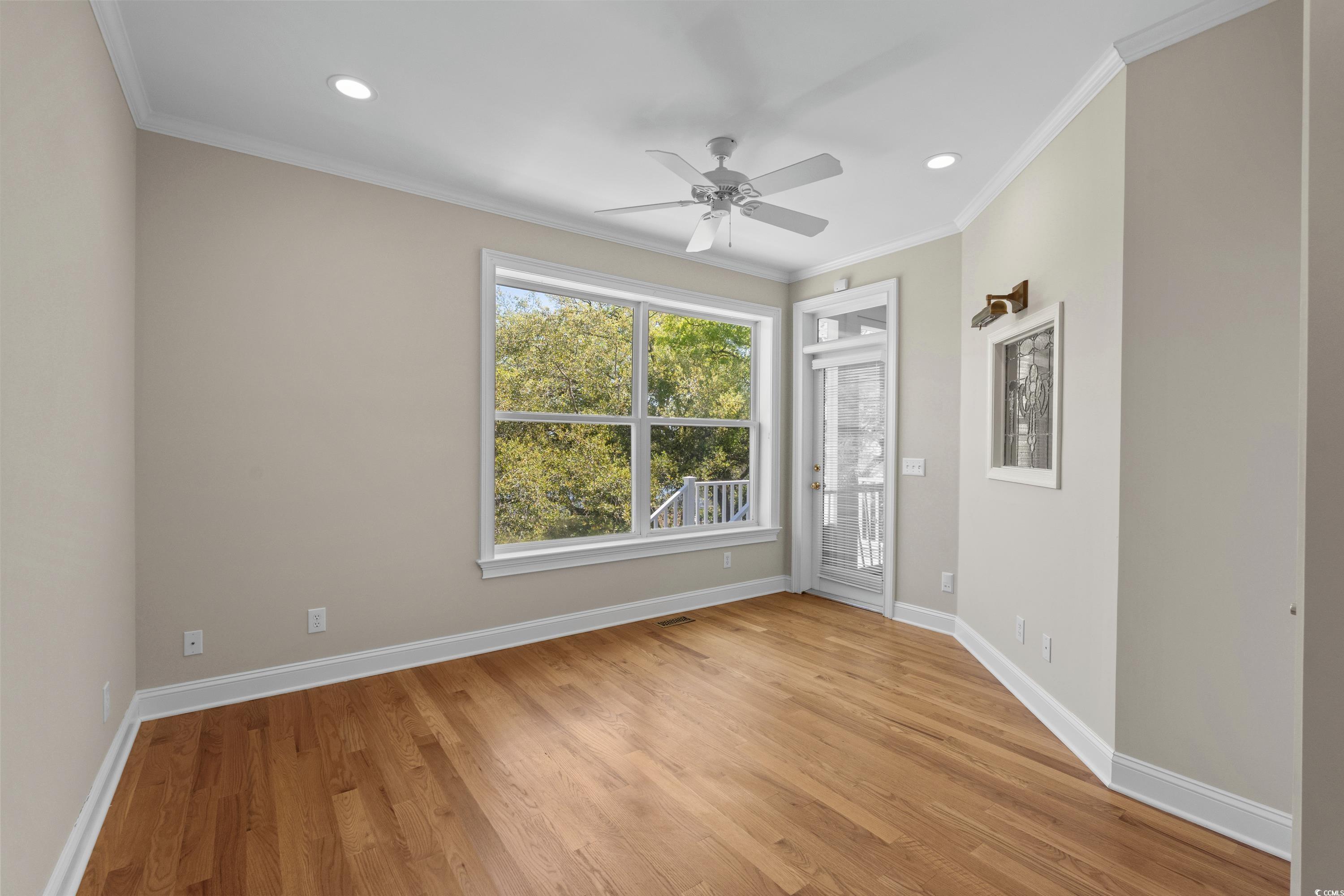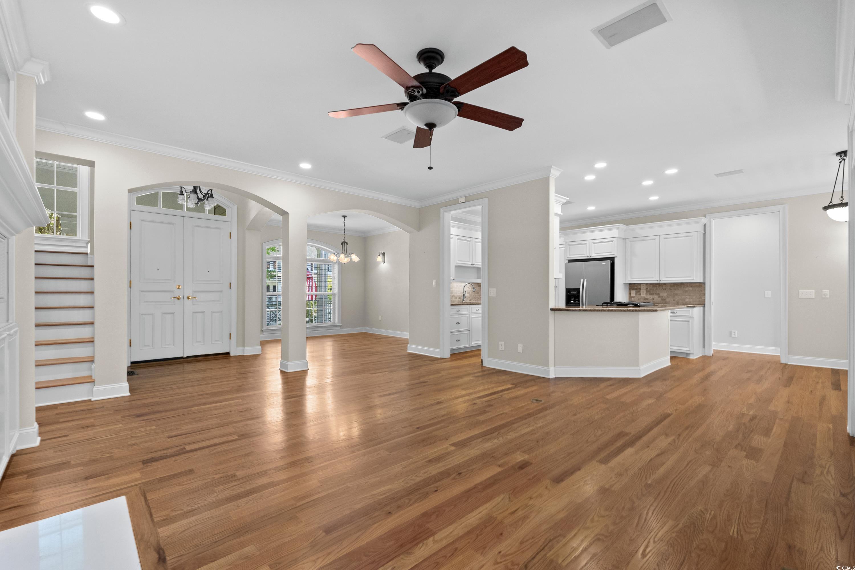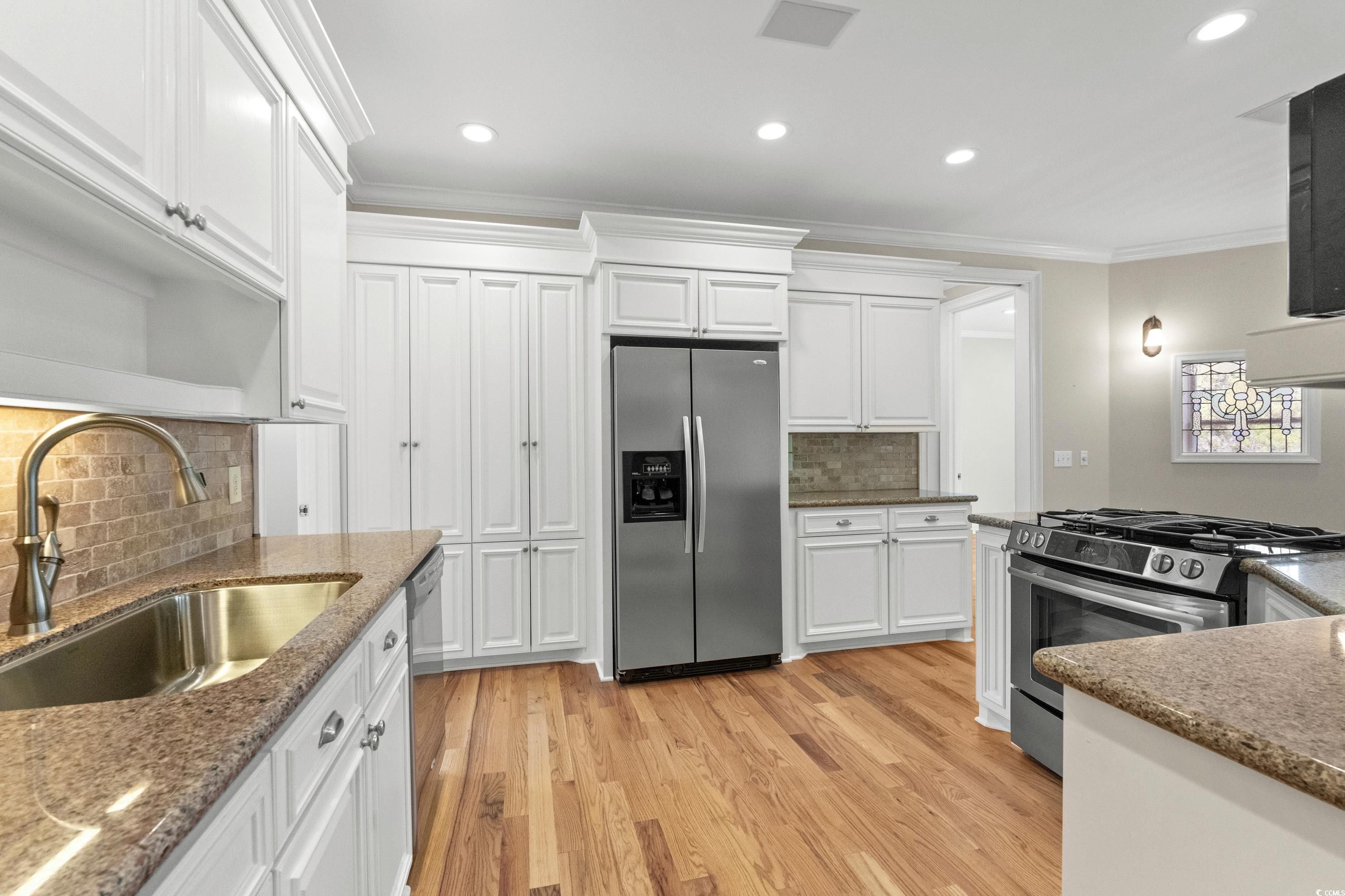 Nestled in the picturesque Mt. Gilead neighborhood of Murrells Inlet, SC, this exquisite Lowcountry-style home offers a harmonious blend of Southern charm and timeless elegance. Boasting five spacious bedrooms and three and a half bathrooms, the residence is perfectly positioned on a direct marshfront lot, providing serene water views and unparalleled access to nature. A private pier and boat dock invite endless opportunities for boating, fishing, kayaking, and enjoying the tranquil marsh setting. You're welcomed by a beautiful covered front porch and foyer entry. Gorgeous Mature Oak Trees envelope the property. The open floor plan is accentuated by Oak hardwood floors, 9 ft ceilings, custom built-ins, and a cozy wood-burning fireplace in the living room. Double French doors open to a screened veranda, offering panoramic marsh views and a perfect space for relaxation. The formal dining area, highlighted by elegant arched doorways, seamlessly connects to a gourmet kitchen equipped with stainless steel appliances, a gas (propane) range, Silestone countertops, a breakfast bar, tile backsplash, and a charming breakfast nook. The master suite is a private retreat featuring direct access to the veranda, a walk-in closet, an additional double-door closet, and a master bathroom with a whirlpool tub and walk-in shower. The main level also includes a guest bedroom with a full bath, an office/flex room, and a laundry room with upper and lower cabinetry and a full sink. Ascending the staircase, you'll find a landing adorned with built-in bookshelves and a dedicated storage/wrapping area. Three additional guest bedrooms reside on this level, two of which have access to the rear balcony, along with one full and one half bathroom. The ground level features an attached two-car garage, a workshop/studio, a spacious flex area with walk-out access to a covered rear porch and yard. Plenty of room for a Pool... Located near renowned attractions such as Huntington Beach State Park, Brookgreen Gardens, the Murrells Inlet MarshWalk, and an array of restaurants, shopping destinations, golf courses, and entertainment venues, this home offers the quintessential coastal lifestyle. Experience the perfect blend of elegance, comfort, and natural beauty in this exceptional marshfront residence.