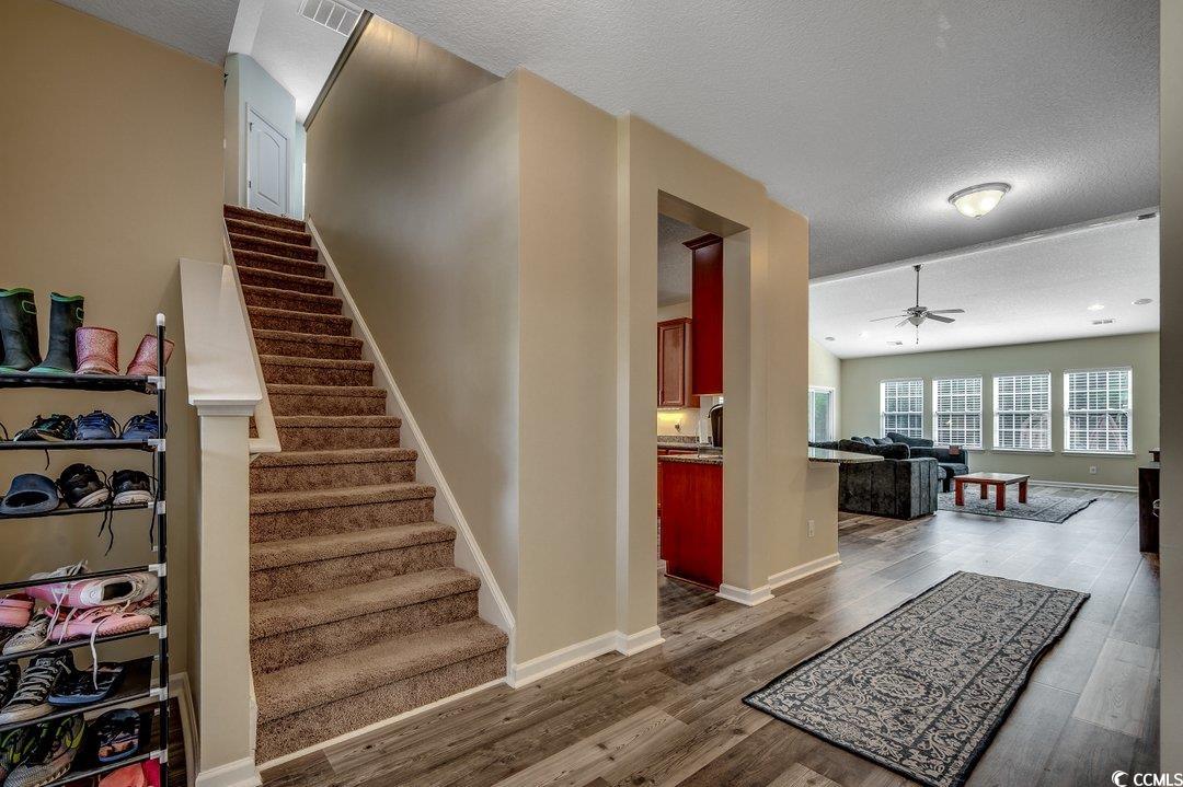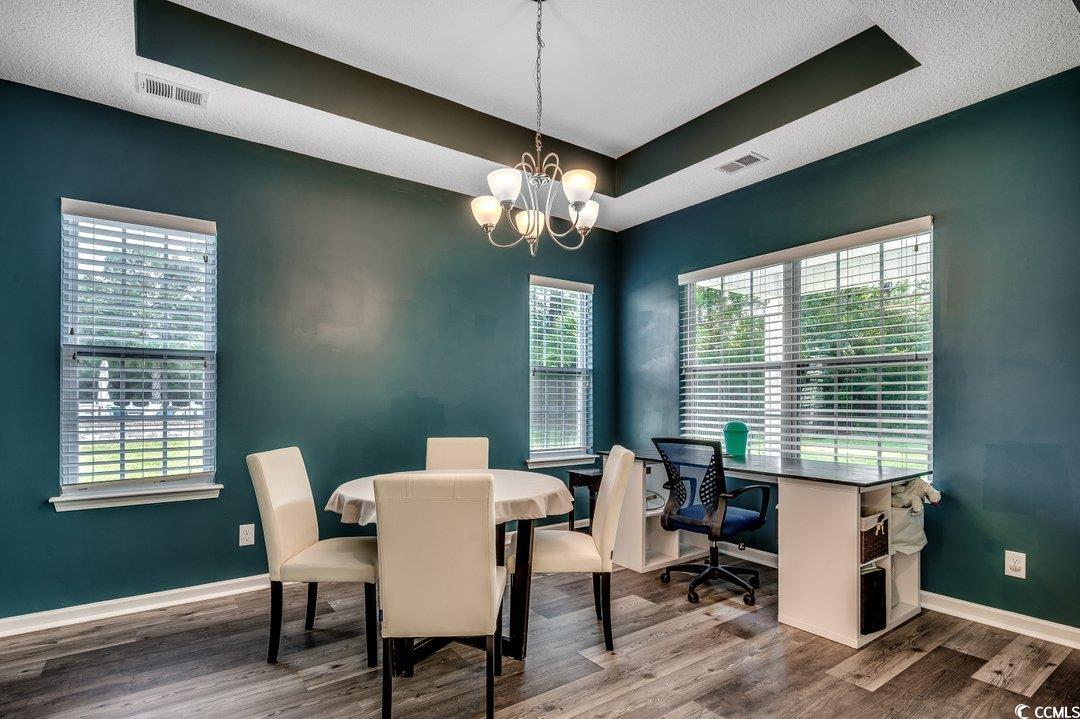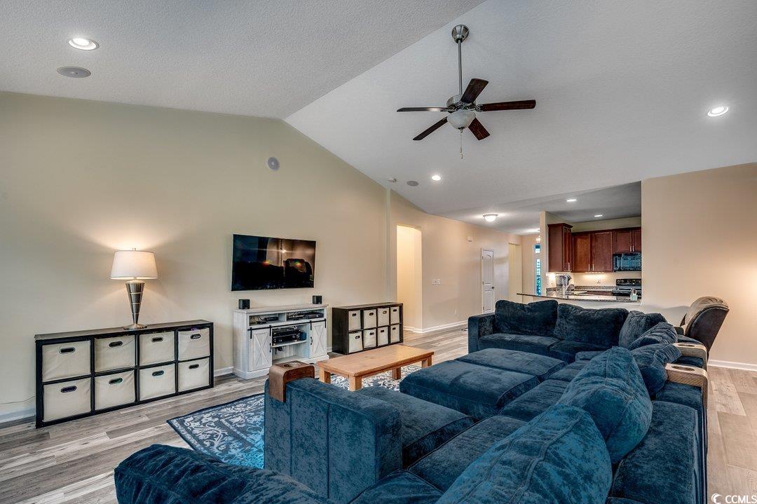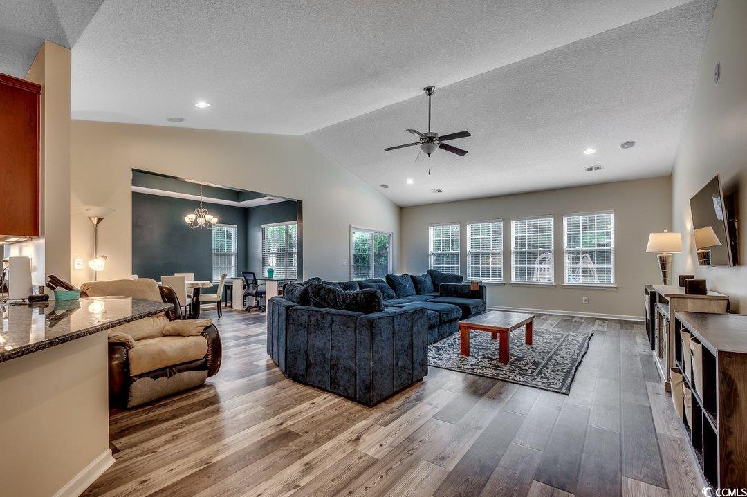 This gorgeous 3 bedroom 2.5 bath home with a spacious open floorplan on a large lot is located within the peaceful Glenmoor community. Once you step inside to nearly 2700 sq ft, you'll find beautiful custom floors running throughout the main living areas. The naturally lit oversized living room is a comfortable gathering area for memory making. It features vaulted ceilings, wire hiding in-wall chute, and built-in speakers for endless entertainment. The sophisticated kitchen boasts beautiful granite countertops, 42" cabinets with under cabinet lighting, working island, breakfast bar, and recessed overhead lights. Nestled beside the kitchen, you'll find the formal dining room conveniently located with an elegant tray ceiling. All 3 bedrooms are comfortably located on the first floor, including the spacious master with en-suite bath and walk in closet. The master bathroom contains dual sinks, soaking tub, and shower all finished with cultured marble, as well as a large walk-in closet. The huge bonus room upstairs allows even more space to spread out, that could be the perfect flex space, office area, craft/ hobby space tucked away from the traffic of downstairs. For added convenience, each room was upgraded with ethernet ports for high speed internet access. Stream away without worry of a slow connection. Outside, enjoy your own private oasis. The fenced-in back yard is bordered by mature trees for added privacy. An extended covered patio is the perfect retreat for morning coffee, weekend barbeques, or just relaxing in the shade. The entire property is complete with an irrigation system to keep the yard lush year-round. Beat the heat and take a dip in the community pool while keeping updated with the active community social scene. Located only a mile from International Drive you have close proximity to the restaurants, attractions, and sandy beaches Myrtle Beach is known for. Head Continue North on Highway 90 to the Shag dancing capital of North Myrtle Beach or West towards the charming historic downtown Conway. This home offers convenience, comfort, style, and unbeatable location perfect for your new forever home!