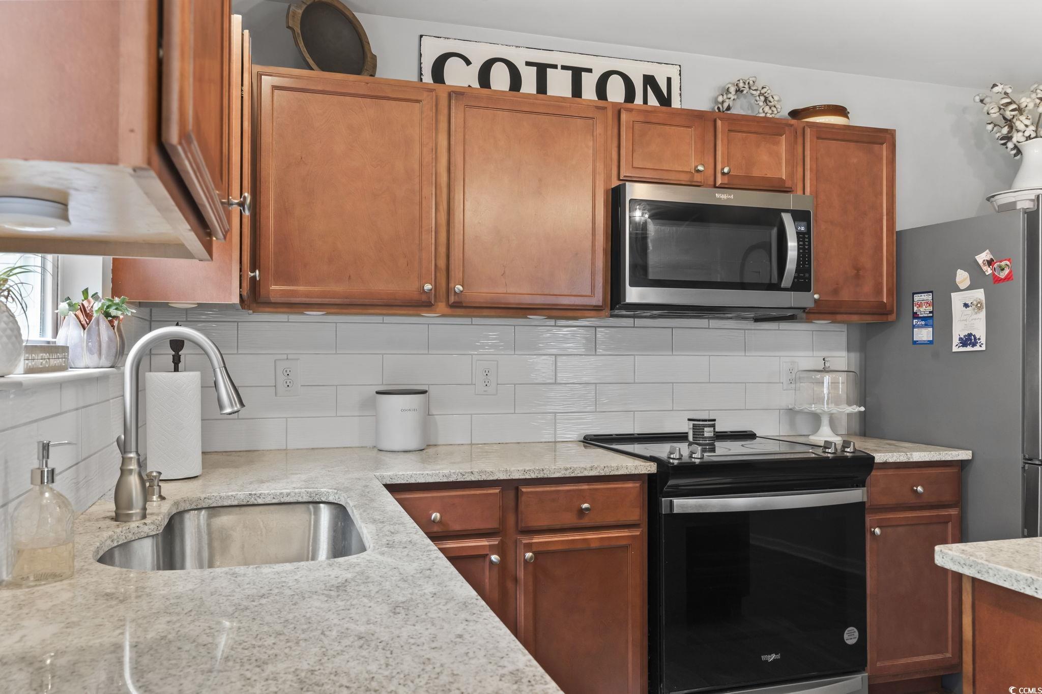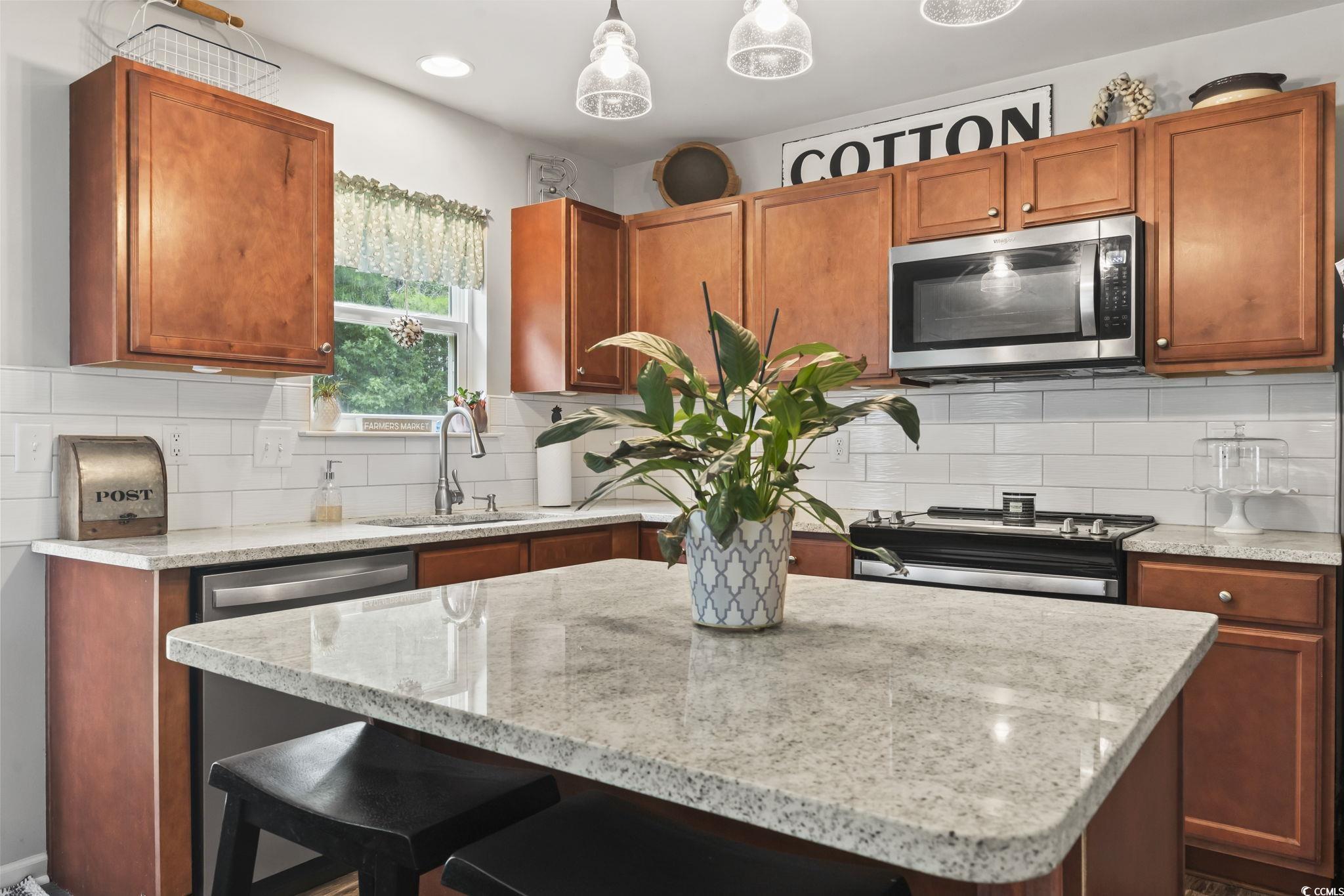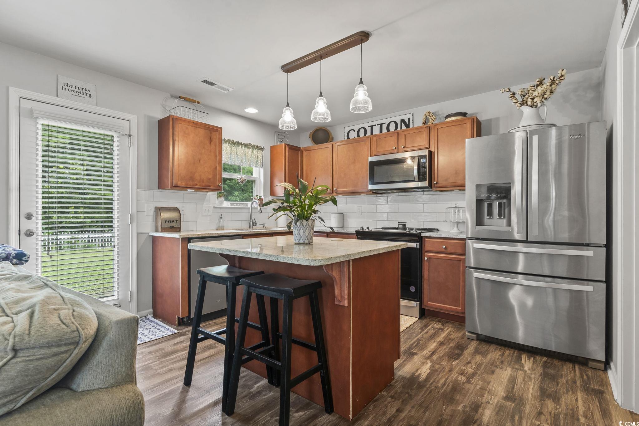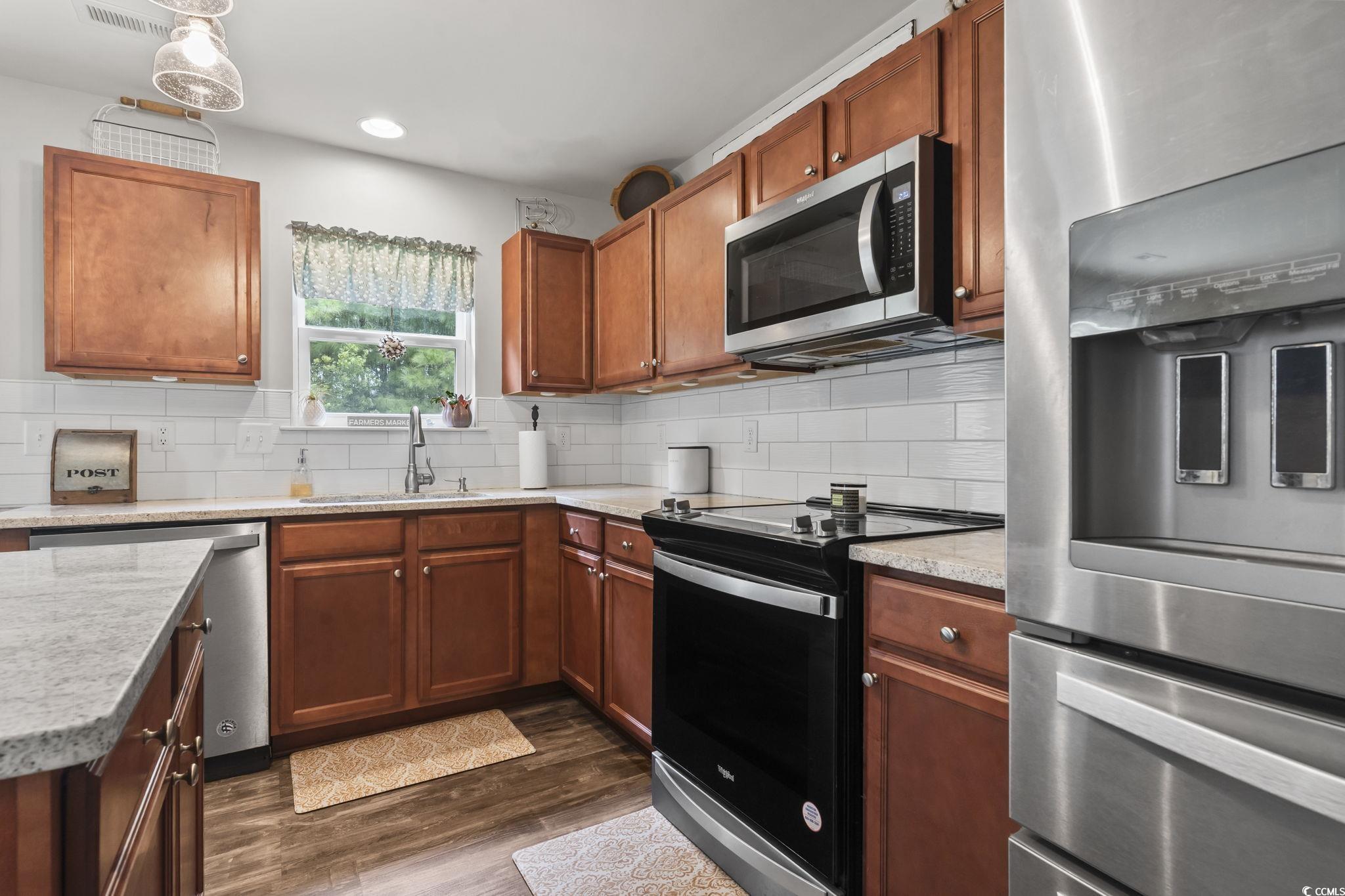 Turn key home on a spacious lot in a quiet neieghborhood, just 30 minutes from the gorgeous Atlantic Ocean! Step inside this beautiful 3 bedroom, 2 and a half bathroom home, with an open floorplan and a loft upstairs! The first floor flaunts a beautiful kitchen with granite countertops, upgraded light fixtures, stainless steel appliances, and an island, making it perfect for cooking and entertaining! This opens up to the living room and dining area for an easy and convenient flow. Additionally, enjoy a laundry room with upgraded shelving and a wallpaper accent wall, half bathroom, and a 1 car garage! You'll enjoy new flooring thhroughout the main living areas on the first floor as well. Upstairs, you'll find a spacious loft, and the primary suite with vaulted ceilings. You'll be wowed with upgraded shelving units in the closet, and its own private bathroom with a double sink vanity and ungraded lighting and mirror! The other two bedrooms are spacious and provide ample living space as well. There is another full bathroom upstairs for convenience. The fenced-in backyard flaunts privacy, with trees lining the back of the property, in addition to new mulch. This home has incredible charm and is only a 30 minute drive to the beach! Schedule your showing today!
