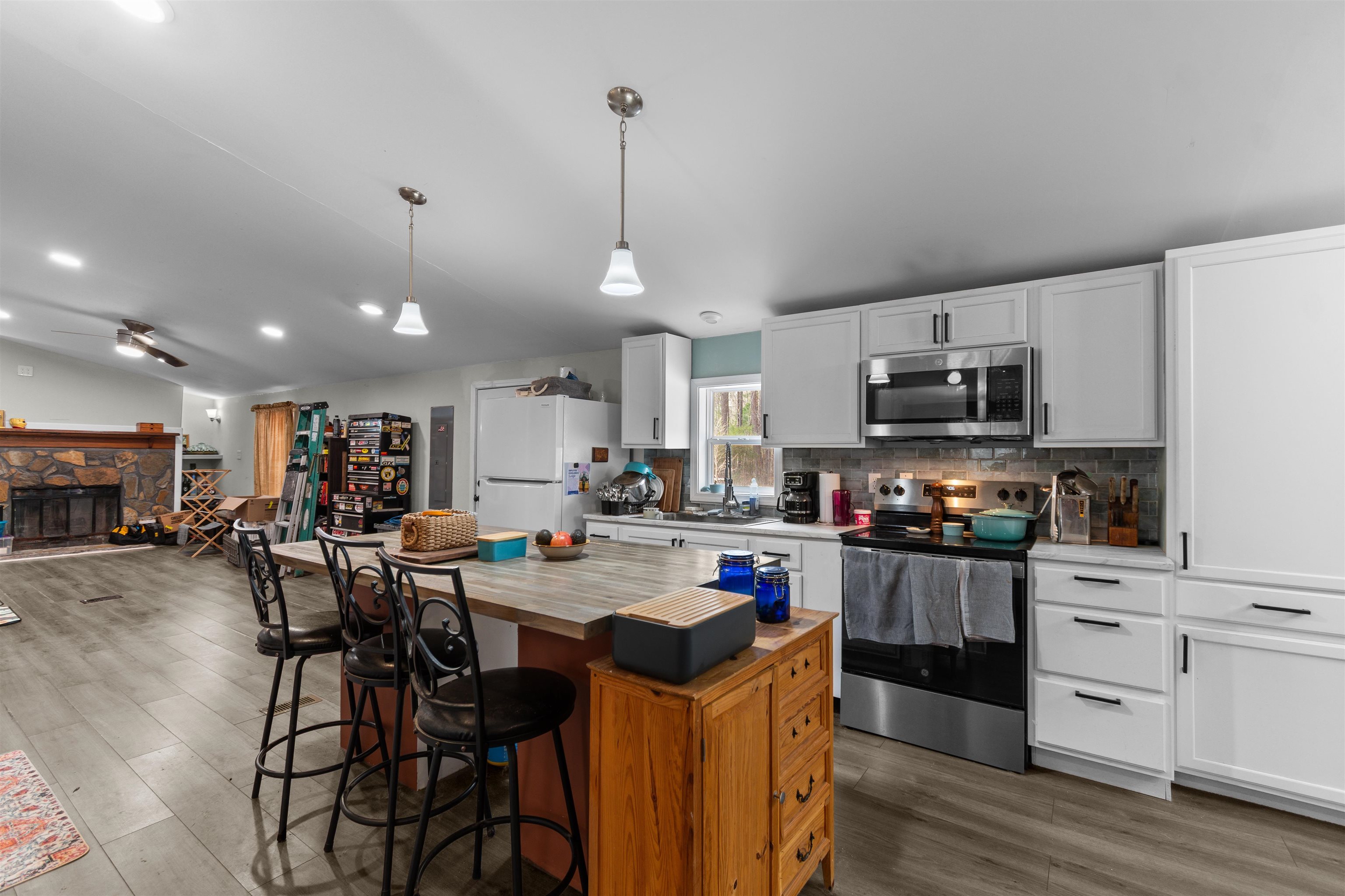 This beautifully maintained 3-bedroom, 2-bath manufactured home situated on a full 1-acre lot in a peaceful country setting. This spacious 1,600 sq ft home offers an open-concept layout perfect for everyday living and entertaining.The large owner’s suite features a generous walk-in closet,while the updated bathrooms showcase modern finishes and newer flooring. The kitchen is equipped with an updated microwave and range, plenty of counter space, and a functional island ideal for meal prep. Luxury vinyl plank flooring flows throughout much of the home, complementing the bright and airy interior. Enjoy quiet mornings on thecovered porch or relax outdoors overlooking your privateyard. With public water, septic, central HVAC, and a metal roof, this property blends comfort with low-maintenance living. If you're looking for a move-in ready home surrounded by nature, this one checks all the boxes!