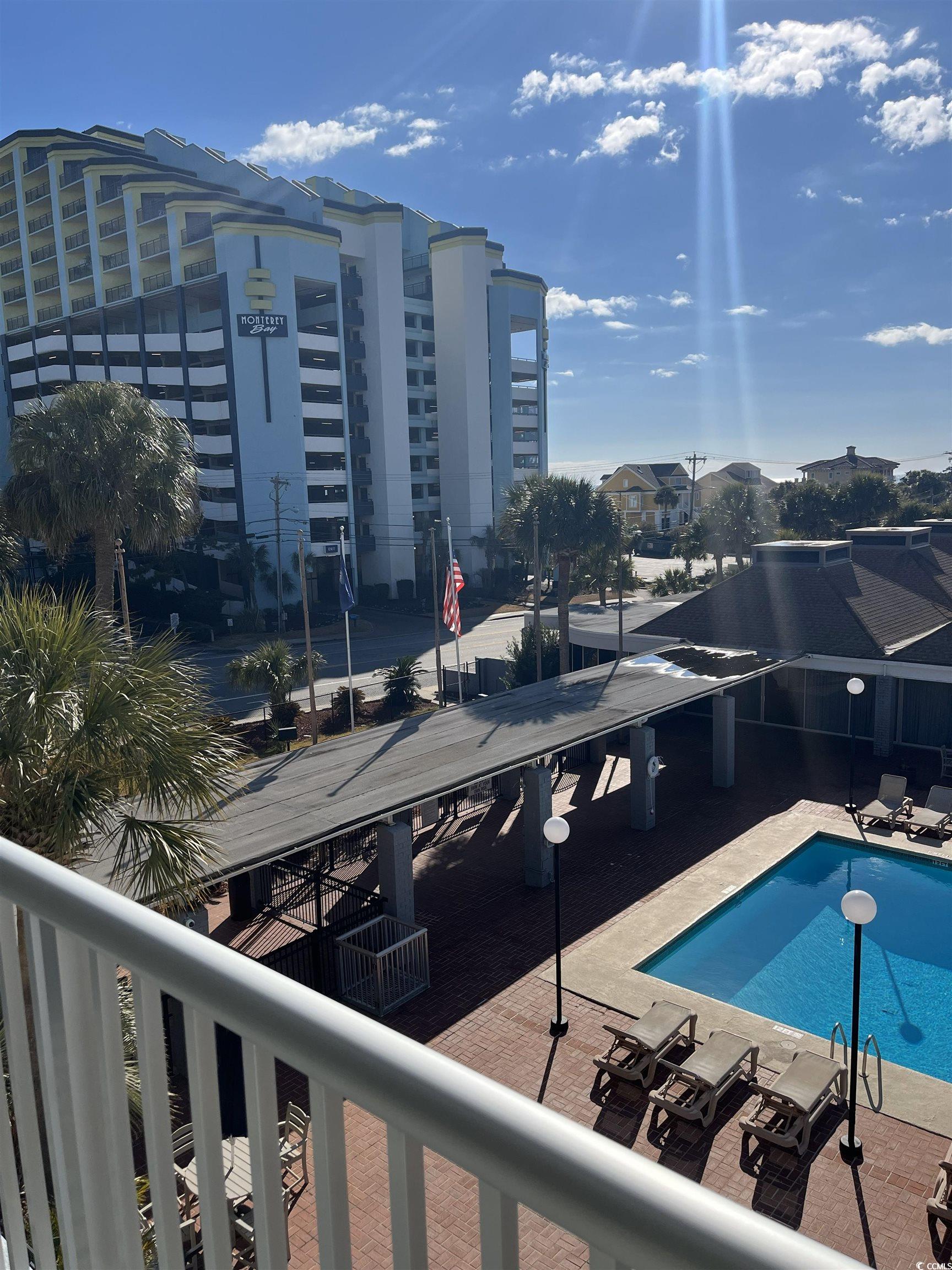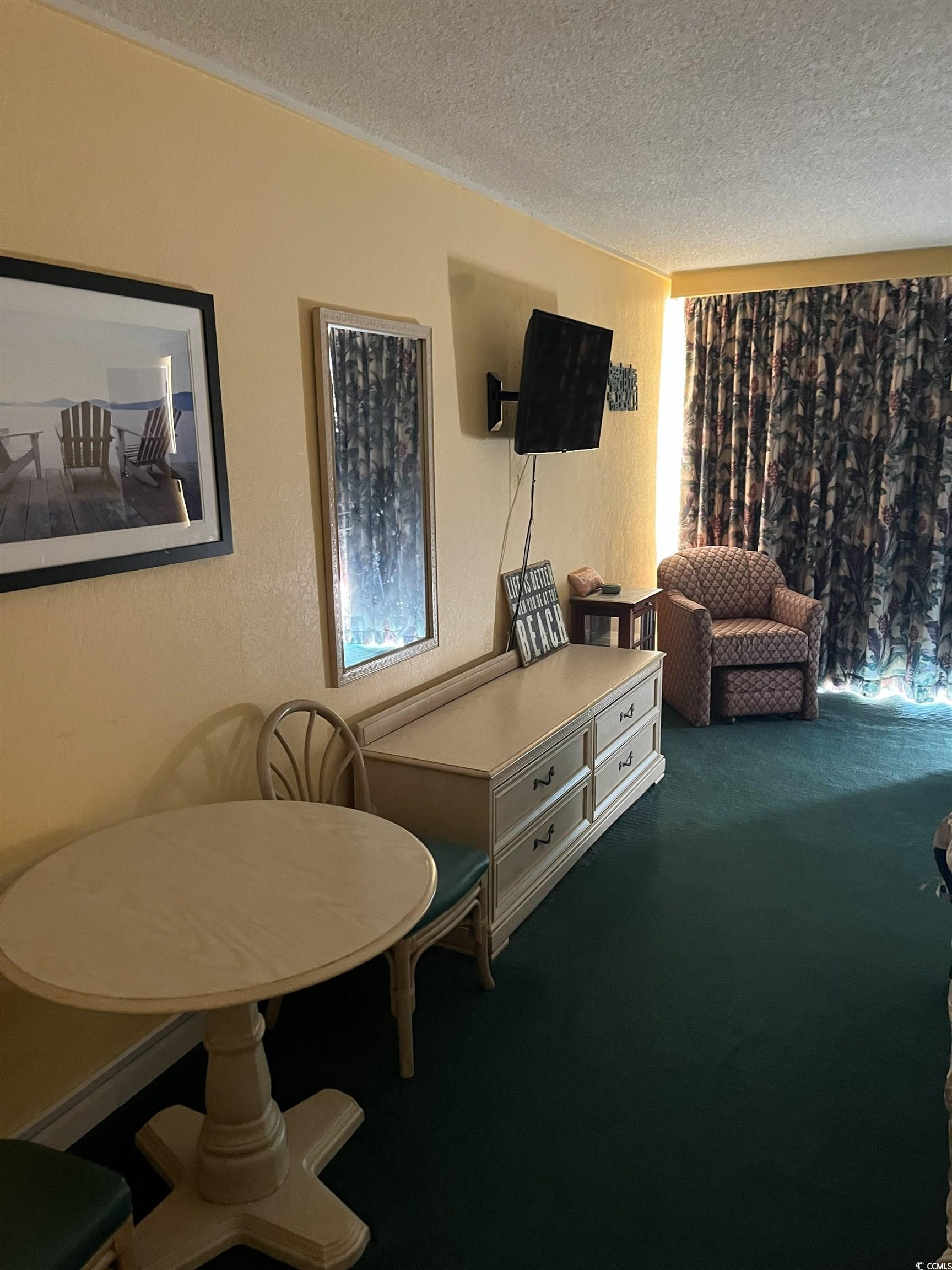 PRICED TO SELL !!! With St. John’s Inn having just undergone a total renovation, this charming coastal hideaway is ready for you to move in, unwind, and make memories by the sea! Excellent location at the north end of Myrtle Beach conveniently located near all Myrtle Beach and North Myrtle Beach area attractions!!! This 3rd floor efficiency condo is just steps from the elevator and offers exceptional southern beach views and perfect views of the beautiful large pool, hot tub, and deck. St. John’s Inn is located on Ocean Boulevard just a short walk to the beach and beachfront restaurants and hosts a Polynesian fire show. Inside are carpet and tile floors , mini fridge and coffee maker, queen bed, two chairs with table, sofa bed, wall mounted tv with cable and internet, nicely equipped bathroom with shower/tub combo, and large balcony. A small upgrade investment would make this a perfect getaway and can be rented either short term or long term. Plus, with a convenient on-site laundry room, extended stays are a breeze!
