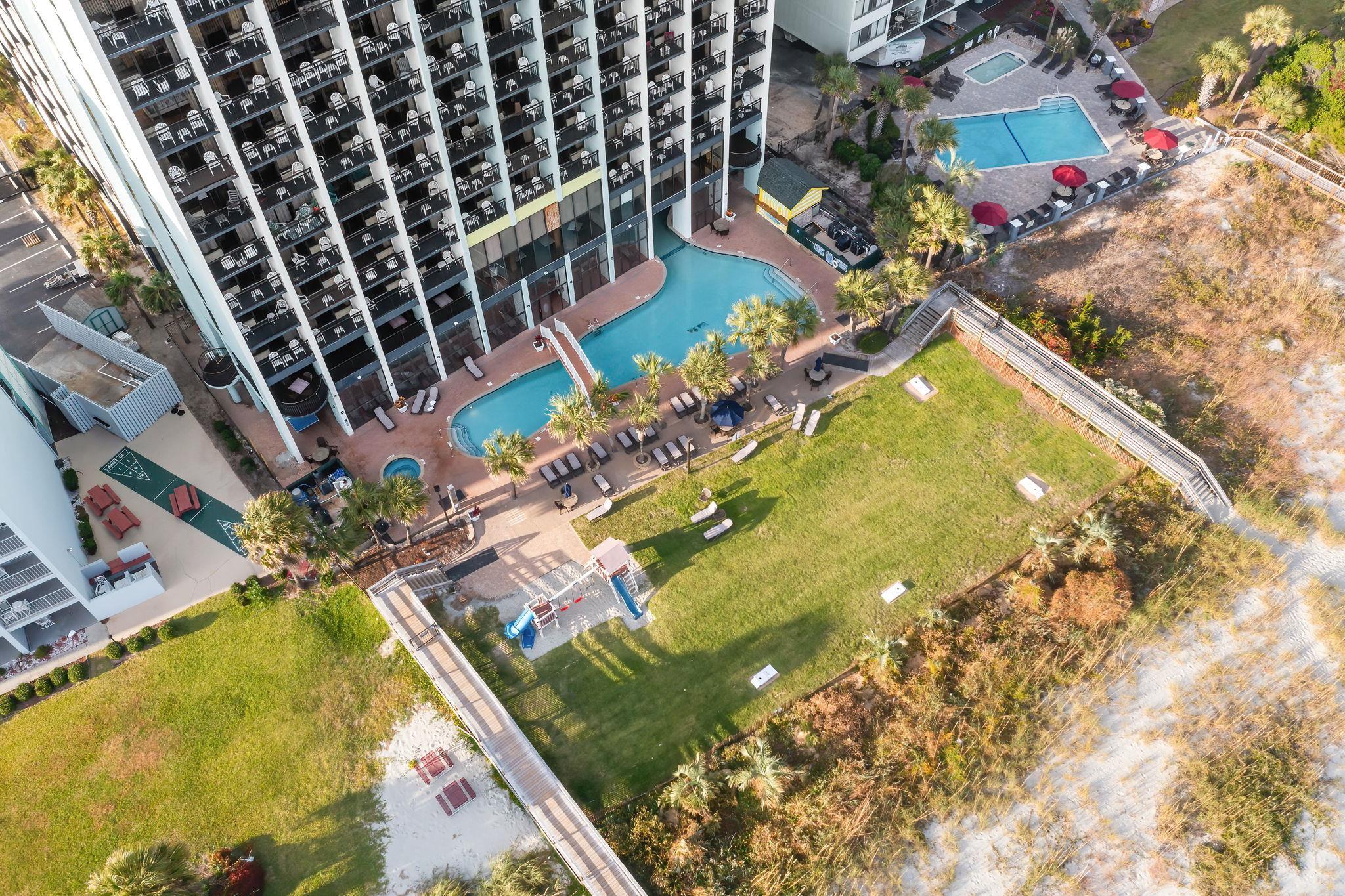 Welcome to paradise, your beach retreat along Myrtle Beach's prestigious Golden Mile. This beautifully maintained, turn-key condo with a private balcony showcasing breathtaking Atlantic Ocean views offers the coastal lifestyle today's buyers are searching for. Ideal as a primary residence, retirement haven, or income-producing getaway. Designed for effortless living, the unit features tile flooring throughout and a full kitchen with stainless appliances. Comfortably sleeping six, the layout includes a queen bed in the primary bedroom, along with a Murphy bed and pull-out sleeper sofa in the living area. Newly painted, the space feels bright, fresh, and move-in ready. Resort-style amenities truly set this property apart, all heated for year-round enjoyment, including three pools, three hot tubs, a lazy river, and a dedicated children's swimming area. Ground level amenities also feature indoor and outdoor pools, an expansive sun deck, and a children's playground. The 10th floor offers an additional pool, hot tub, and sun deck. An oceanfront fitness center is conveniently located on the lobby level. Ideally situated near dining, shopping, golf, and family attractions. One of the few properties along the Golden Mile that allows owners to have one pet without restriction. Stress free ownership with the HOA fee including all utilities, building insurance, and H06 insurance.